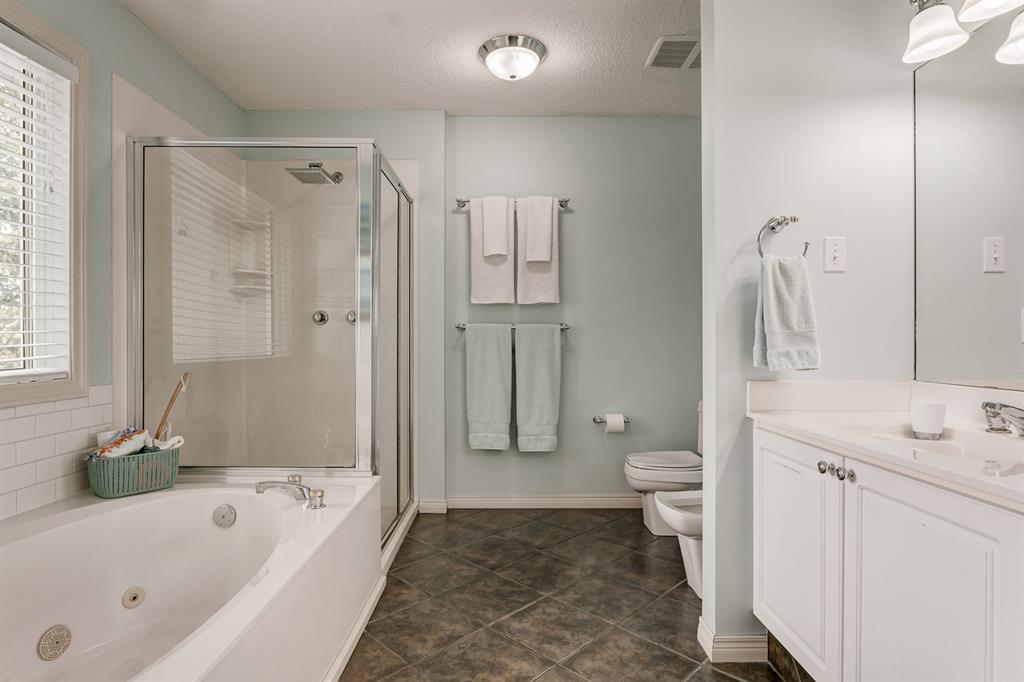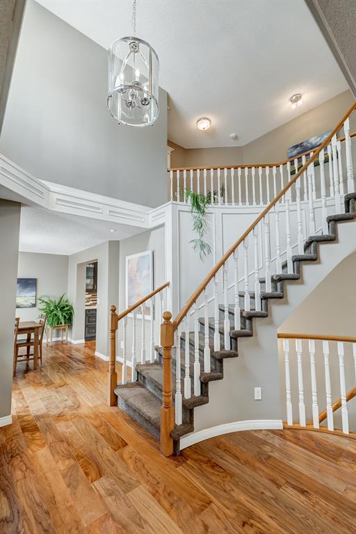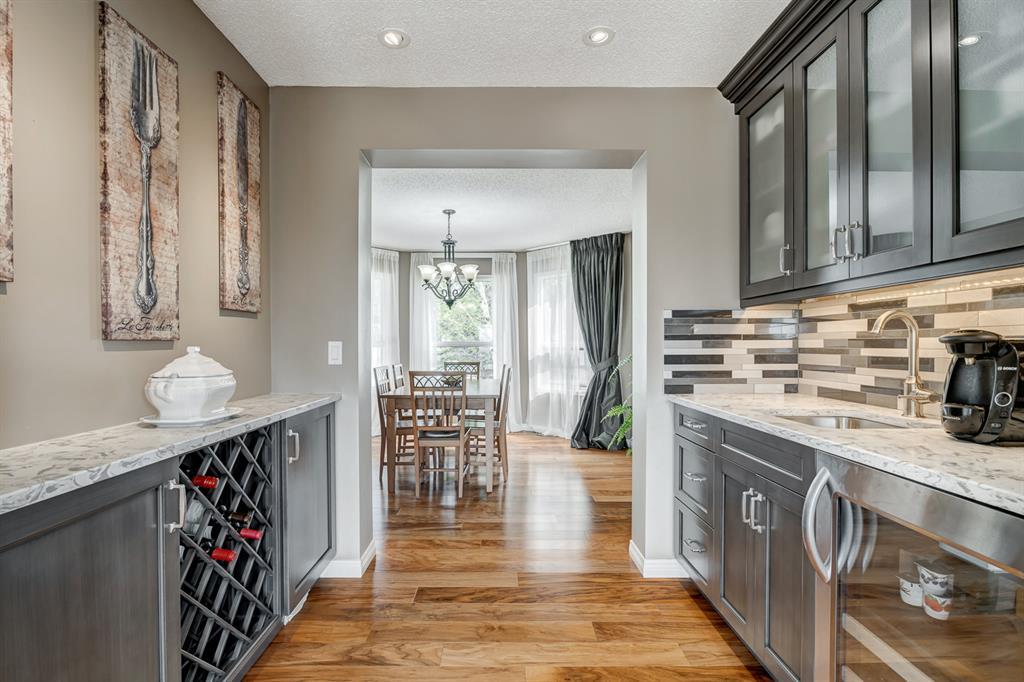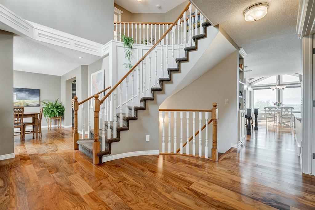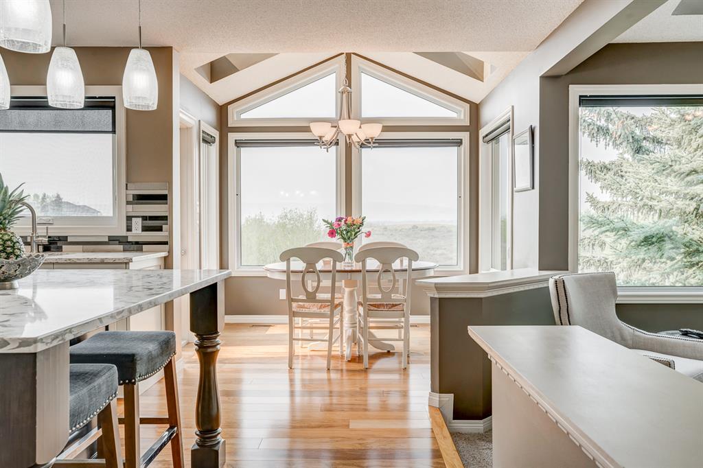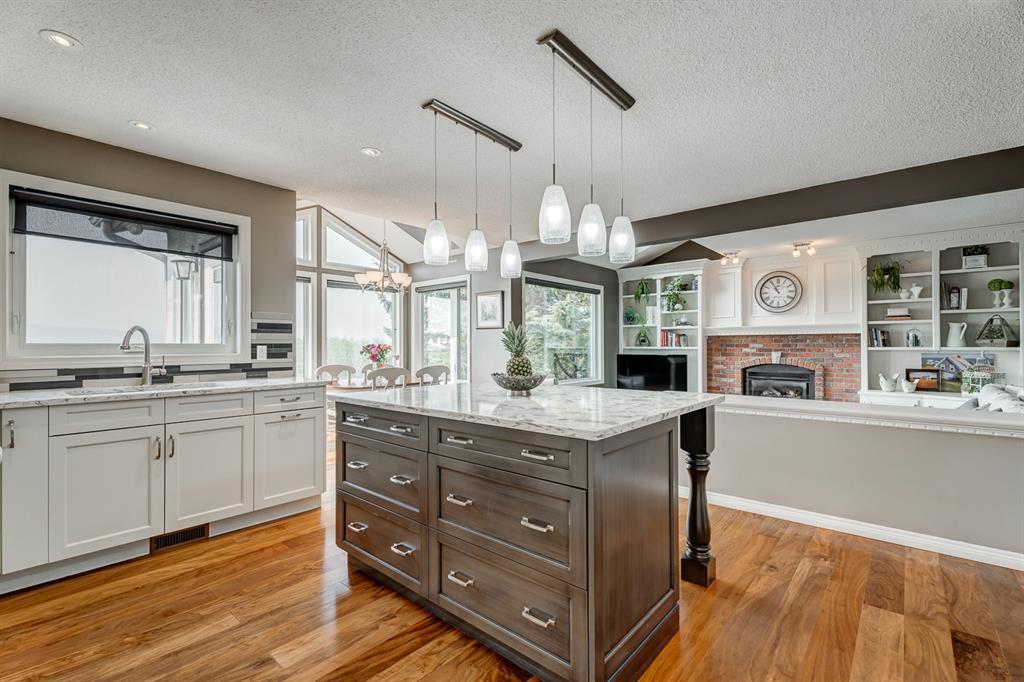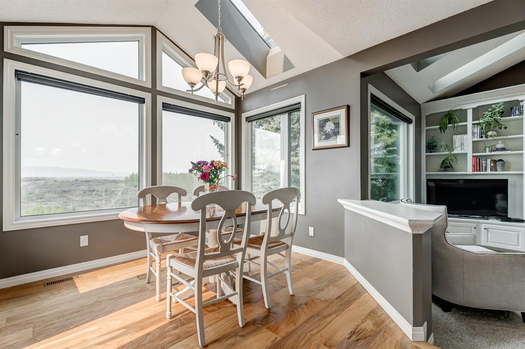 Take in the MAJESTIC MOUNTAIN AND RAVINE VIEWS while relaxing in your private picturesque estate. Stylish & functional, our 5 bedroom home offers almost 4000 ft² of developed living space with newer hardwood and a spacious renovated kitchen with high-end appliances. There is no shortage of counter space with the island and butler’s prep area complete with sink and wine rack. Upon entering you'll notice the curved staircase in the open foyer, office, laundry/mudroom with lockers, and a peek into the dining room large enough for everyone! The sunken living room has a brick gas fireplace with built-ins and is an extension of the kitchen for relaxing evenings. Head upstairs to the 2nd level where you’ll find 4 bedrooms, including the primary which features a 6 piece ensuite with jet tub and HUGE walk-in closet! Our sunny walkout basement is ready for your enjoyment, complete with a stone fireplace in the family room/games area, theatre room with wet bar, 5th bedroom, and a 3 piece bath with heated floor. Step outside onto either deck for sun, shade, or to simply enjoy the comforts of the calming hot tub. Too many extras to mention in this non-smoking, no pet home, but here are a few teasers… Updated electrical panel (2016) furnaces, hot water tanks, and A/C units,(2017) B/I speakers, pool table, radiant heat in the triple attached garage, c/vac, numerous skylights, 2 fireplaces, southwest facing triple pane windows, ample storage, and irrigation in the low maintenance yard! (id:22211)