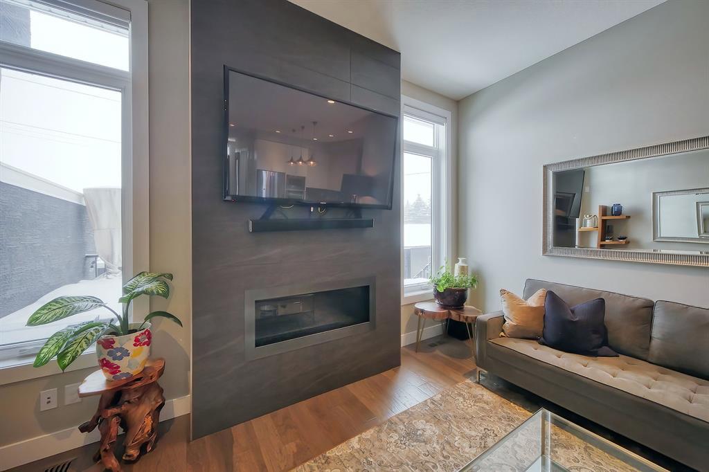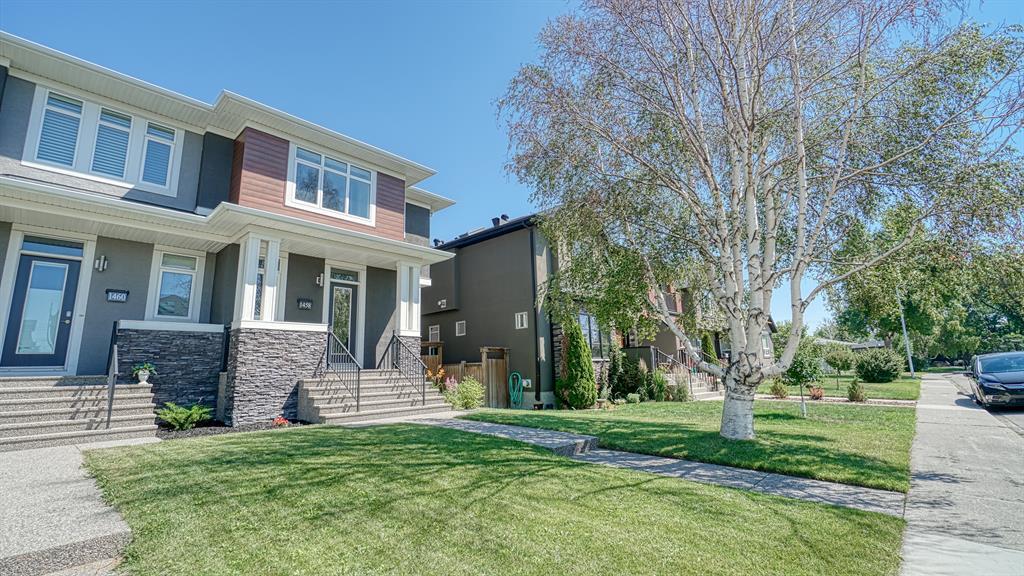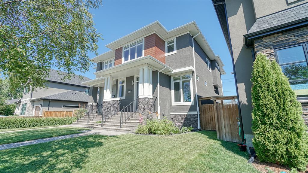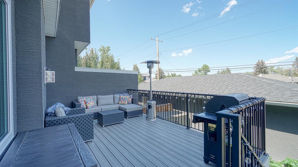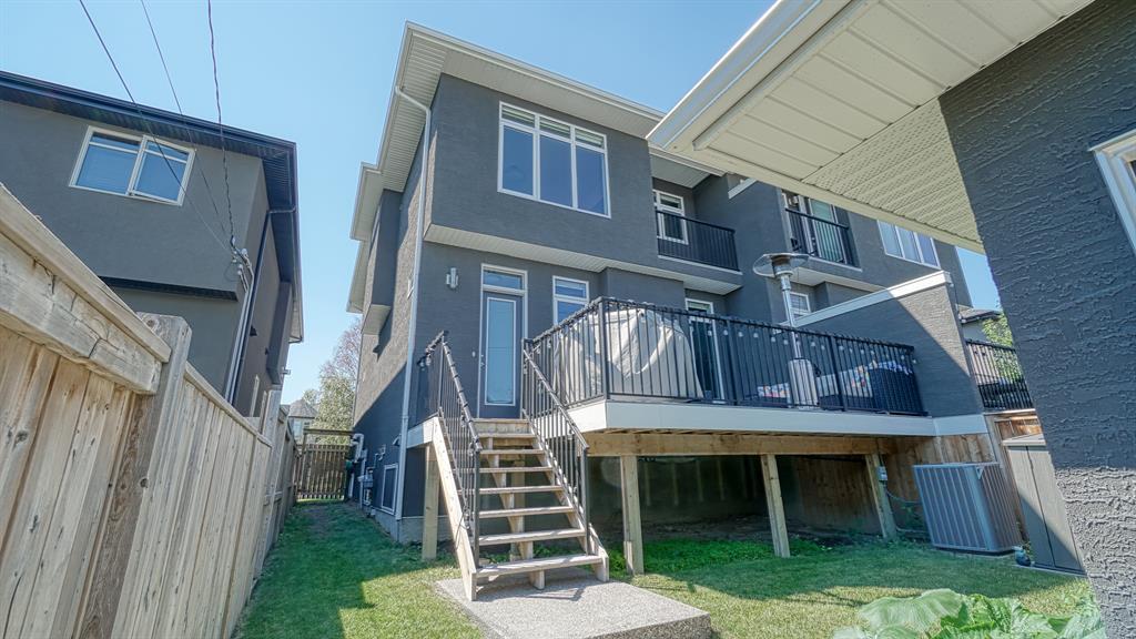 Welcome to the charming neighborhood of Renfrew! This older district has been given a modern touch, and we are proud to present this stunning semi-detached home. The interior is chic and sophisticated, featuring the latest finishes that are sure to impress you. The main level boasts wide plank hardwood flooring and high ceilings that flood the space with natural light. At the front of the house is a den/office. The chef's kitchen is equipped with KitchenAid Gallery appliances, including a GAS STOVE COOKTOP & GRILL, with cabinets in abundance! You can enjoy casual meals at the island or enjoy sharing a meal with your family in the dining area. The living room is cozy and comfortable, complete with a gas fireplace. A half bath complete this level. Take a walk up the stunning GLASS RAIL STAIRCASE to the upper floor, and you'll find an opulent master suite complete with a 5-piece ensuite, large walk-in closet and a private balcony. There are also 2 ADDITIONAL BEDROOMS WITH THEIR OWN ENSUITE!! You'll love the convenience of the UPPER LEVEL LAUNDRY. The lower level is fully developed with a bedroom and another bath. In warmer months, you can entertain guests on the large deck. The neighborhood and neighbors are friendly and this is a perfect spot to call home. Make a call to your favorite realtor now before this is gone!The exterior of the home is just as impressive as the interior, with a detached double garage, aggregate walkways, that add a touch of elegance to the property. To top everything off there is CENTRAL AIR to keep you cool on those hot summer days. This home is situated within walking distance to schools, parks, and public transportation. You are just minutes away from Deerfoot Trail, which makes it easy to get anywhere in the city. Don't miss your chance to see this beautiful home! Contact your favorite realtor today to book a showing. This home won't last long! (id:22211)