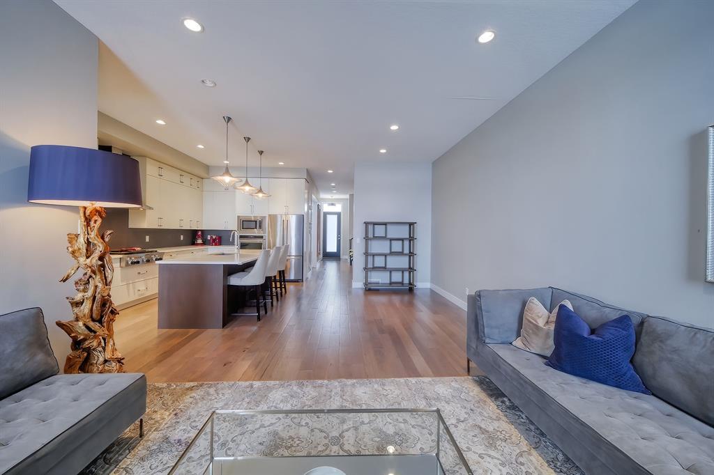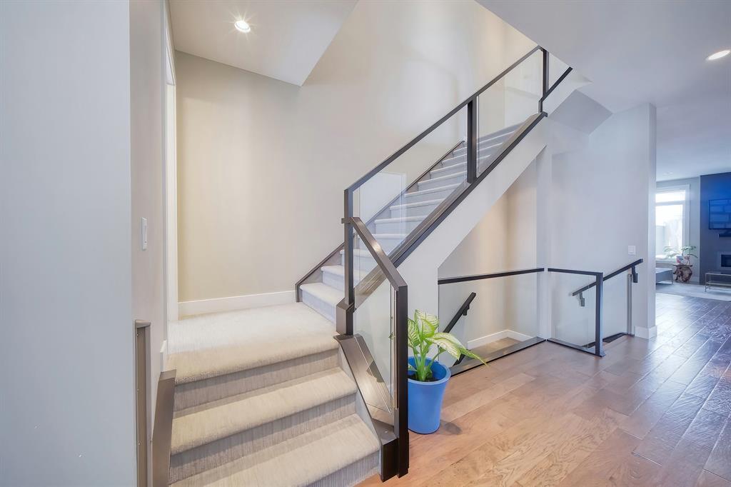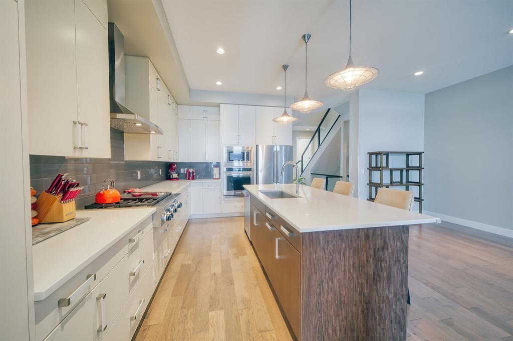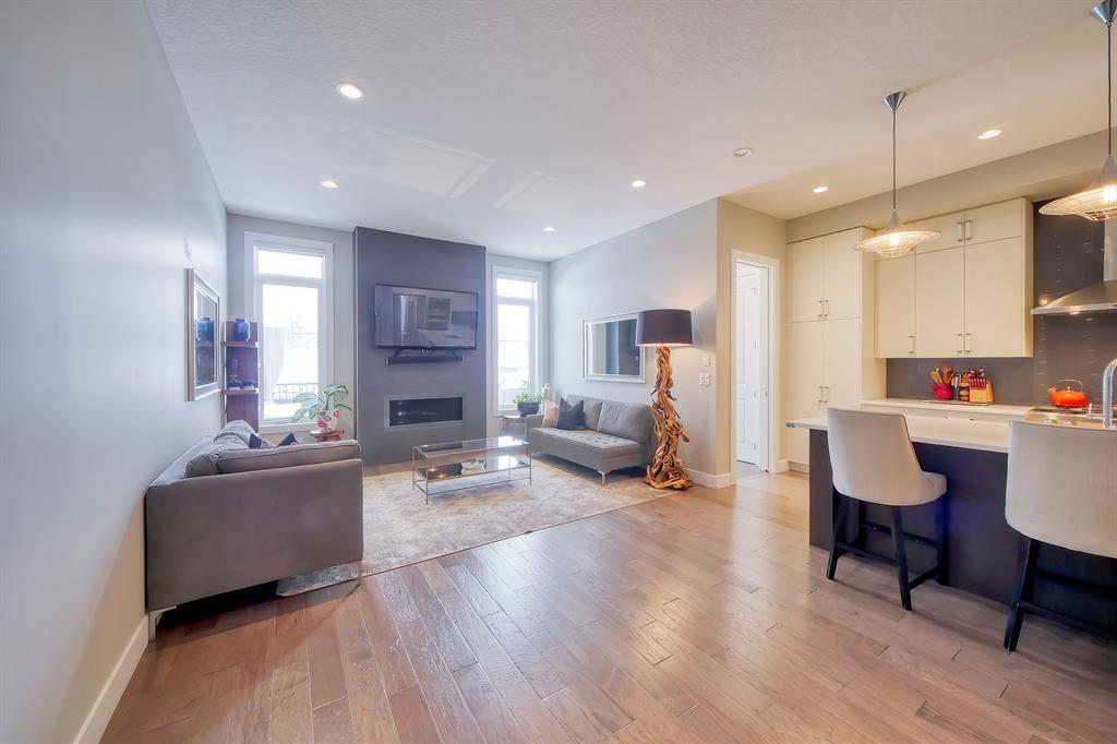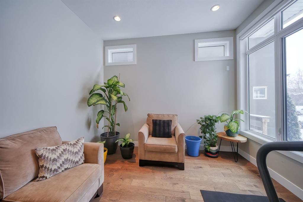 Welcome to the charming neighborhood of Renfrew! This older district has been given a modern touch, and we are proud to present this stunning semi-detached home. The interior is chic and sophisticated, featuring the latest finishes that are sure to impress you. The main level boasts wide plank hardwood flooring and high ceilings that flood the space with natural light. At the front of the house is a den/office. The chef's kitchen is equipped with KitchenAid Gallery appliances, including a GAS STOVE COOKTOP & GRILL, with cabinets in abundance! You can enjoy casual meals at the island or enjoy sharing a meal with your family in the dining area. The living room is cozy and comfortable, complete with a gas fireplace. A half bath complete this level. Take a walk up the stunning GLASS RAIL STAIRCASE to the upper floor, and you'll find an opulent master suite complete with a 5-piece ensuite, large walk-in closet and a private balcony. There are also 2 ADDITIONAL BEDROOMS WITH THEIR OWN ENSUITE!! You'll love the convenience of the UPPER LEVEL LAUNDRY. The lower level is fully developed with a bedroom and another bath. In warmer months, you can entertain guests on the large deck. The neighborhood and neighbors are friendly and this is a perfect spot to call home. Make a call to your favorite realtor now before this is gone!The exterior of the home is just as impressive as the interior, with a detached double garage, aggregate walkways, that add a touch of elegance to the property. To top everything off there is CENTRAL AIR to keep you cool on those hot summer days. This home is situated within walking distance to schools, parks, and public transportation. You are just minutes away from Deerfoot Trail, which makes it easy to get anywhere in the city. Don't miss your chance to see this beautiful home! Contact your favorite realtor today to book a showing. This home won't last long! (id:22211)