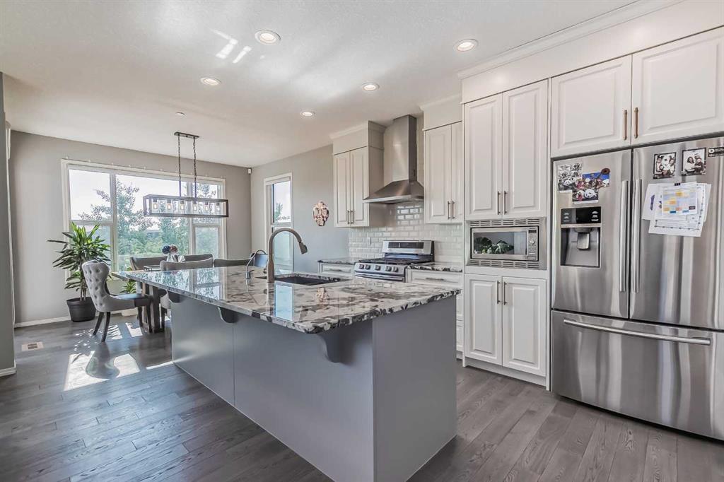 Location , location ,location! The Hidden Gem. An inspiring 5 bedroom Cedarglen-built home boasts over 2323 SQFT. of living space and backs onto a picturesque pond and green space. Feature 9 ft celling in main floor and basement, has an Open Layout main floor featuring with engineer hardwood Flooring, flex room use as home office, Oversized Kitchen Island, , Stainless Steel Appliances, The kitchen is a chef’s dream with plenty of cabinets and counter space, customized specifically for this house. The dining area receives plenty of natural sunlight from the additional oversized window . The living room features with a pre installed TV Mount and a modern electric fireplace. The second floor is composed of 1 Oversized Master Bedroom with a beautiful fully upgraded Ensuite, large walk-in closet, 2 large bedroom and 1 full guest bathroom. A spacious bonus room is a perfect place for the family to enjoy reading or watching a favorite movie. And plus the big laundry room easy to access. The fully development basement feature 2 large bedroom with lots of rough in for future stove , range hood, washer & dryer. Quiet location, excellent family home. Please come to visit us and enjoy the air conditon in the house for the hot summer with the pond view plus the green space on the back yard. walking distance to the community club , great place to play with your family . Do not miss your dream home~~~! (id:22211)