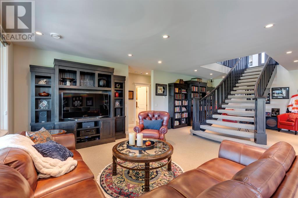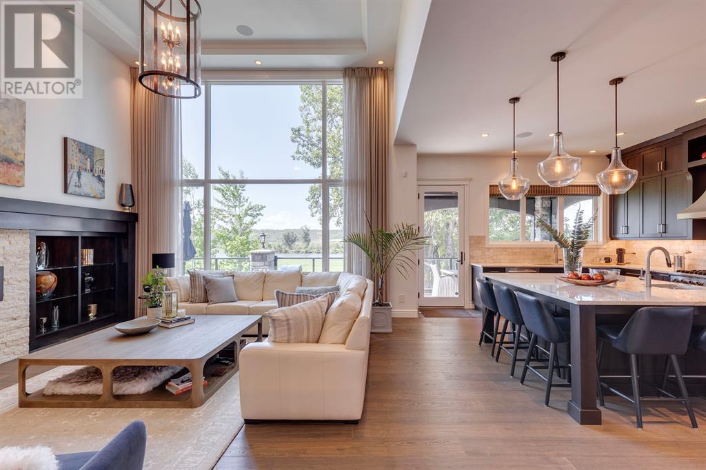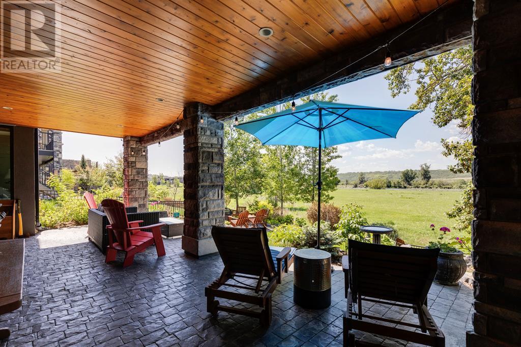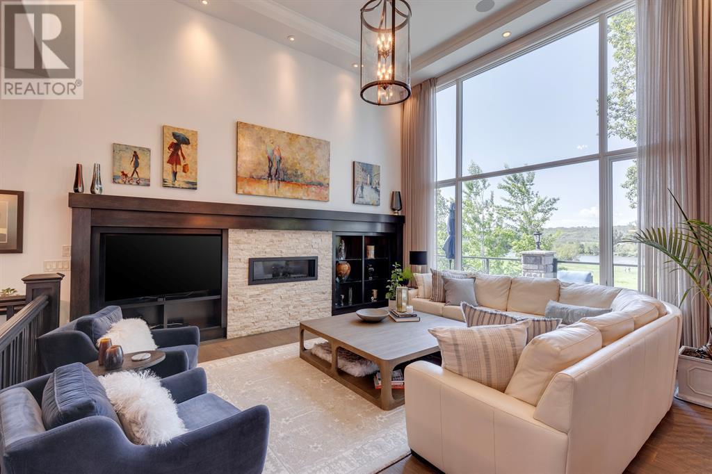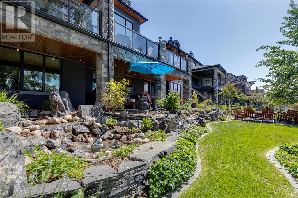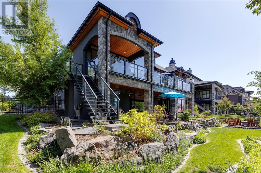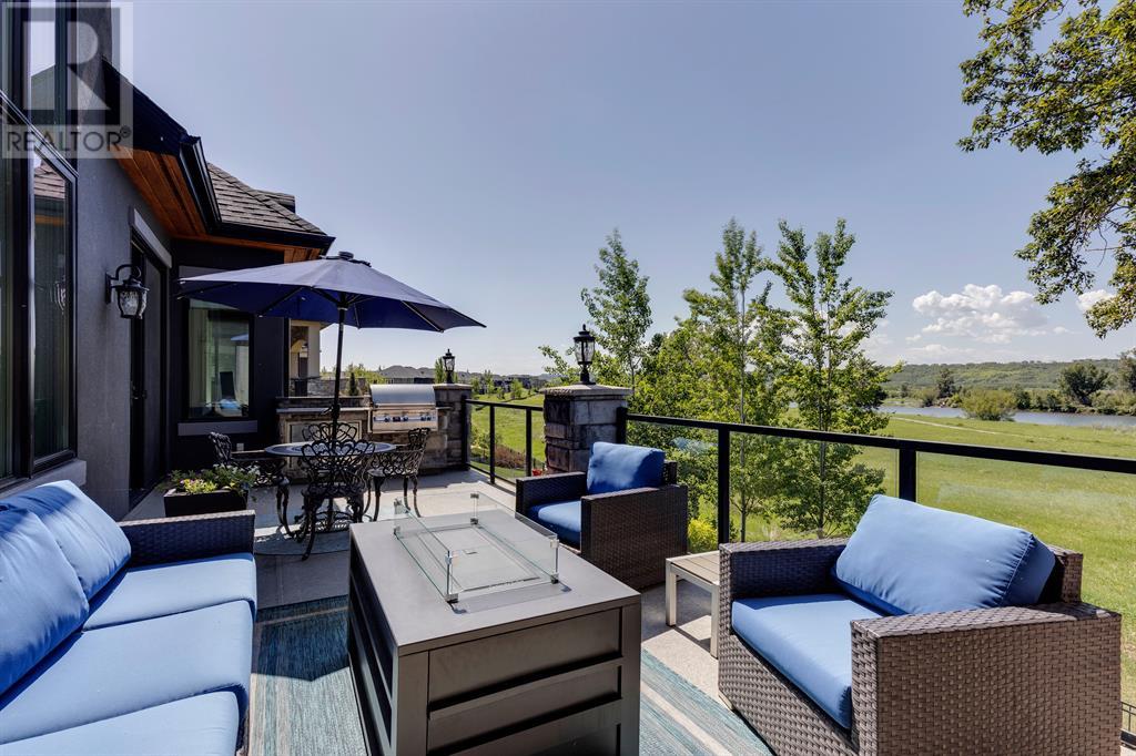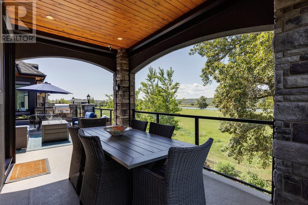 This opulent Albi estate home, nestled against the picturesque backdrop of the Bow River, exudes luxury and elegance from every angle. As you approach the property, you will be immediately struck by its breathtaking curb appeal, accentuated by its stone front exterior, exposed aggregate driveway and a private spa-inspired courtyard with a relaxing hot tub, cozy gas fireplace, and lovely pergola.Upon entering the home, your eyes will be drawn to the grand central custom staircase, soaring 10-foot ceilings, and a spacious great room that boasts dramatic 15-foot ceilings and floor-to-ceiling windows that fill the space with natural light. The elegant dining room and gourmet kitchen are perfect for entertaining, and will delight even the most discerning of tastes. The chef-inspired kitchen features a Viking 6 burner gas cooktop with pot filler, Kitchenaid built-in fridge, built-in wall oven, warming drawer, convection microwave, dishwasher, a second prep sink, solid maple wood cabinetry with soft-close hinges, and an oversized center island.The master suite is a true sanctuary, with sophisticated and truly customized features that are straight out of a magazine. The luxury continues in the walkout basement, which features in-floor heat, an open-rise staircase with a library alcove, a large and open family and games room complete with a wet bar and wine cellar, plus two additional bedrooms, a full bath, and a huge storage room.The south-facing deck, partially covered with motor-mounted retractable screens powered by remote, is the perfect spot to take in the tranquil views of the Bow River and valley while enjoying a meal cooked on the built-in BBQ. Other notable features include central A/C, an extensive landscaping package with a waterfall and pond, over 155 trees, shrubs & perennials and 115 tons of boulders creating a 3 tiered backyard, in-ground sprinkler system, an oversized triple heated garage with a dog wash, built-in speakers throughout the home, Kineti co water filtration system & water softener, upgraded wool carpeting, and custom millwork throughout. This is truly an exquisite and private oasis that offers endless luxury and upgrades. As a member of Riverstone, you will enjoy access to the Century Hall which includes a 7-acre private park, splash park, hockey rink with chiller and Zamboni, tennis courts, a pleasure rink, toboggan chute, basketball courts, banquet facilities, a gymnasium and a daycare! (id:22211)
