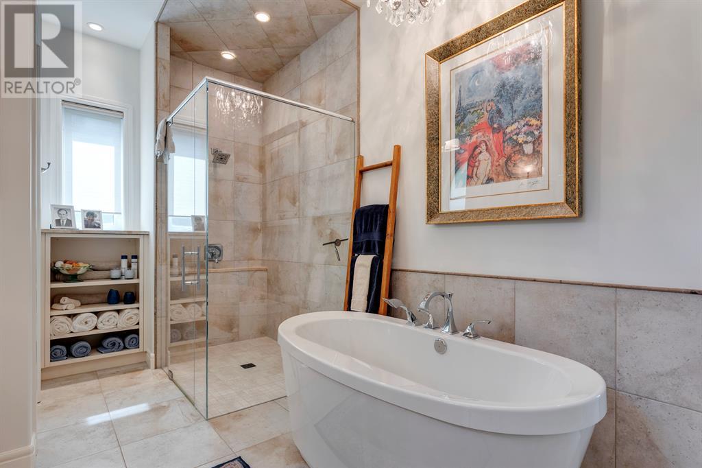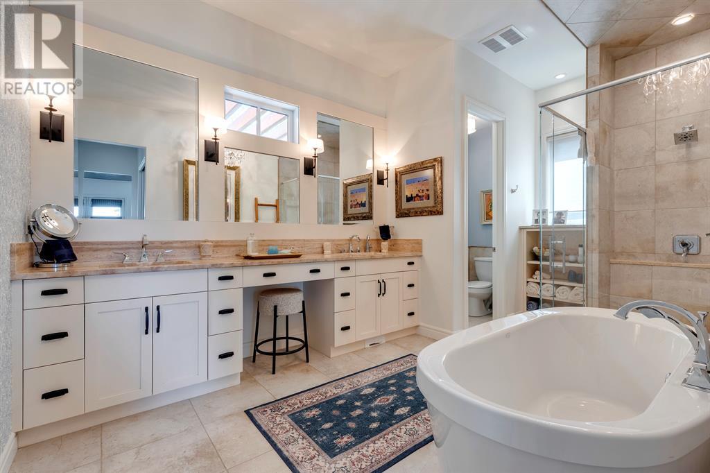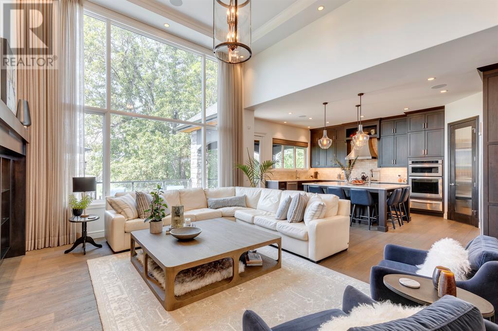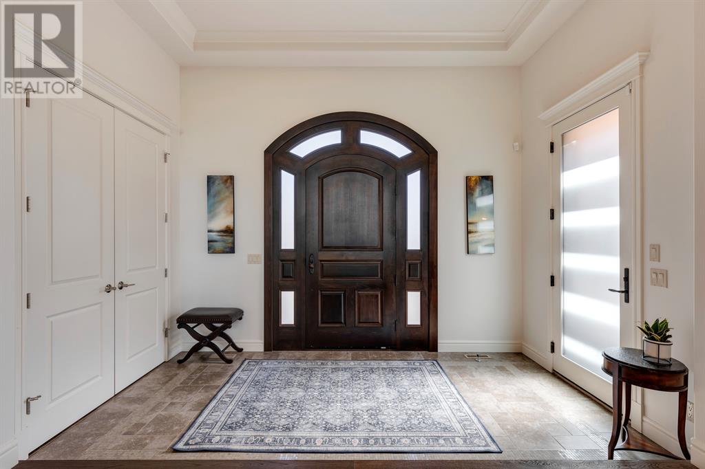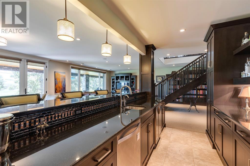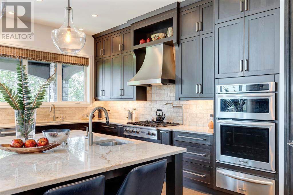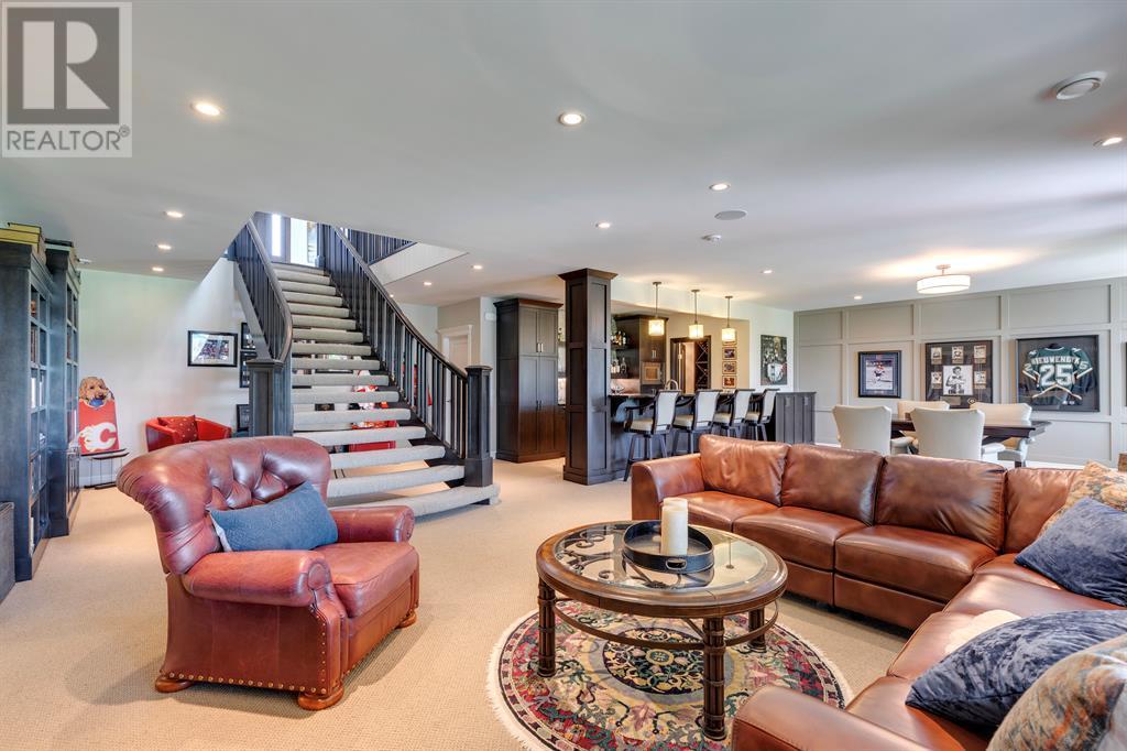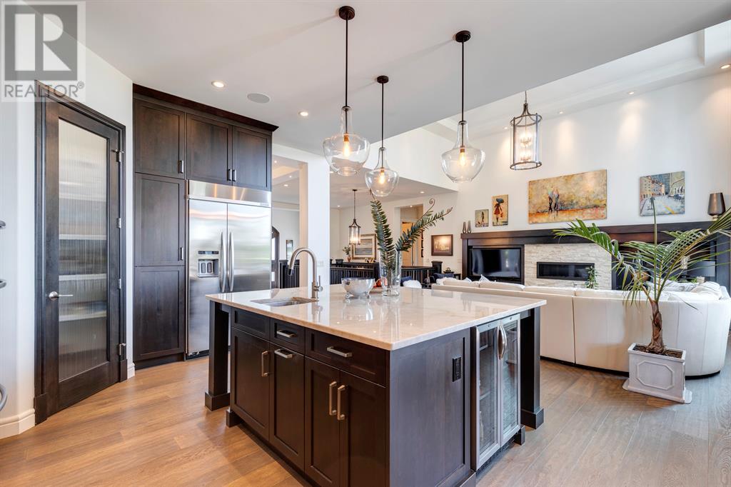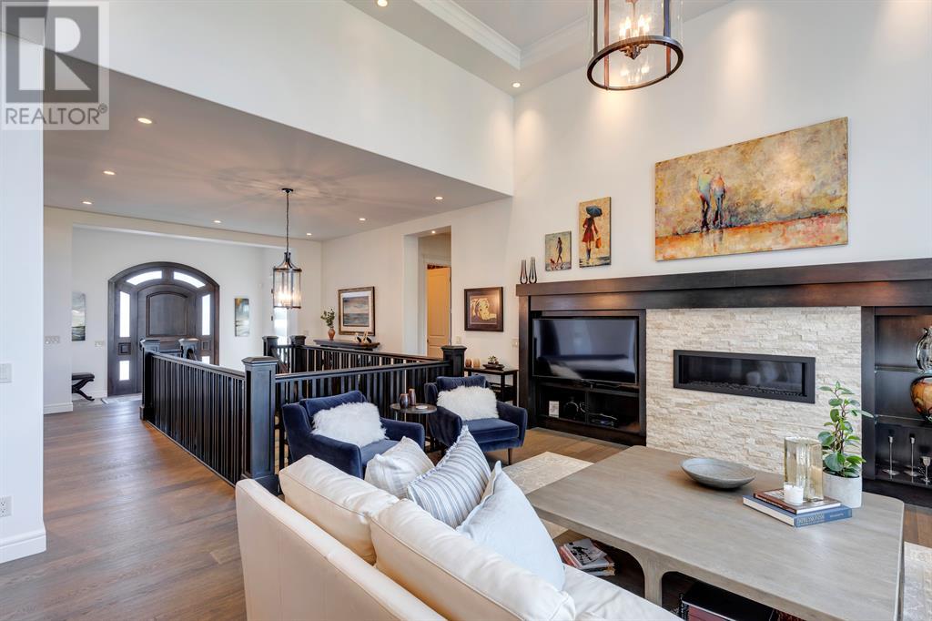 This opulent Albi estate home, nestled against the picturesque backdrop of the Bow River, exudes luxury and elegance from every angle. As you approach the property, you will be immediately struck by its breathtaking curb appeal, accentuated by its stone front exterior, exposed aggregate driveway and a private spa-inspired courtyard with a relaxing hot tub, cozy gas fireplace, and lovely pergola.Upon entering the home, your eyes will be drawn to the grand central custom staircase, soaring 10-foot ceilings, and a spacious great room that boasts dramatic 15-foot ceilings and floor-to-ceiling windows that fill the space with natural light. The elegant dining room and gourmet kitchen are perfect for entertaining, and will delight even the most discerning of tastes. The chef-inspired kitchen features a Viking 6 burner gas cooktop with pot filler, Kitchenaid built-in fridge, built-in wall oven, warming drawer, convection microwave, dishwasher, a second prep sink, solid maple wood cabinetry with soft-close hinges, and an oversized center island.The master suite is a true sanctuary, with sophisticated and truly customized features that are straight out of a magazine. The luxury continues in the walkout basement, which features in-floor heat, an open-rise staircase with a library alcove, a large and open family and games room complete with a wet bar and wine cellar, plus two additional bedrooms, a full bath, and a huge storage room.The south-facing deck, partially covered with motor-mounted retractable screens powered by remote, is the perfect spot to take in the tranquil views of the Bow River and valley while enjoying a meal cooked on the built-in BBQ. Other notable features include central A/C, an extensive landscaping package with a waterfall and pond, over 155 trees, shrubs & perennials and 115 tons of boulders creating a 3 tiered backyard, in-ground sprinkler system, an oversized triple heated garage with a dog wash, built-in speakers throughout the home, Kineti co water filtration system & water softener, upgraded wool carpeting, and custom millwork throughout. This is truly an exquisite and private oasis that offers endless luxury and upgrades. As a member of Riverstone, you will enjoy access to the Century Hall which includes a 7-acre private park, splash park, hockey rink with chiller and Zamboni, tennis courts, a pleasure rink, toboggan chute, basketball courts, banquet facilities, a gymnasium and a daycare! (id:22211)