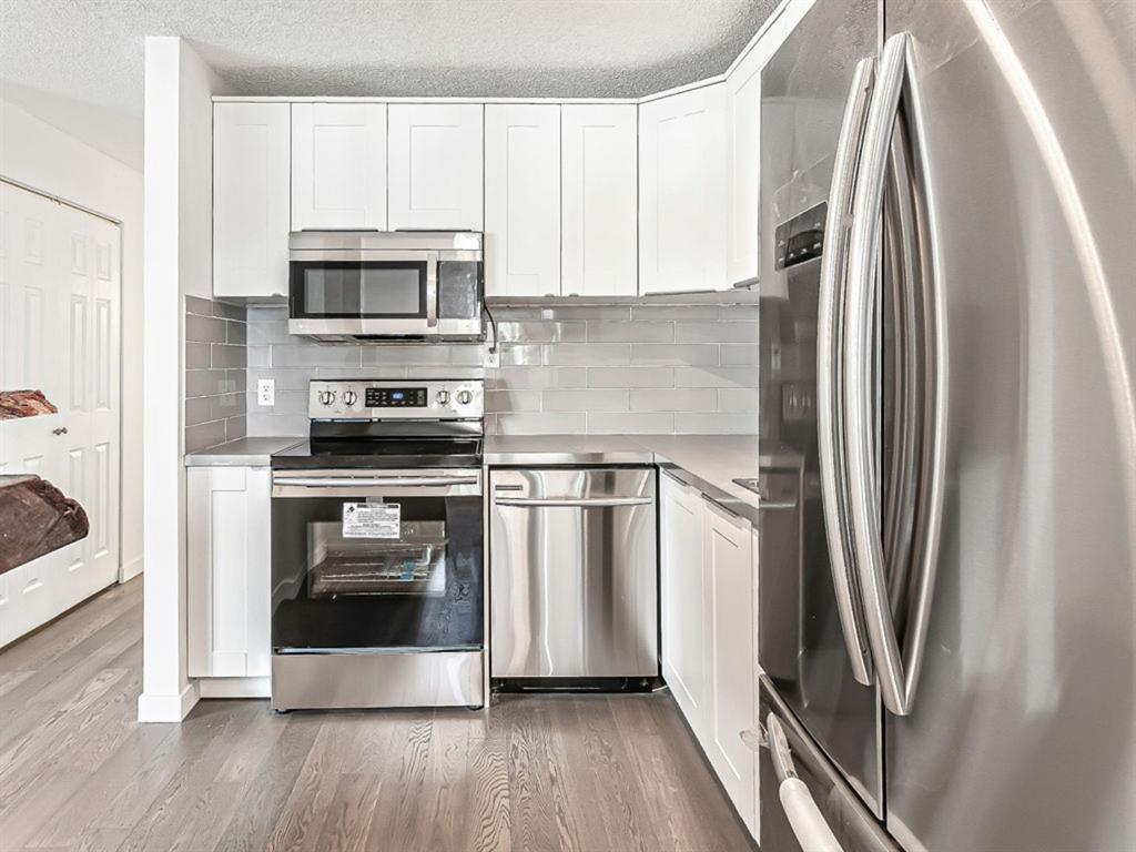 Brand newly Updated 2 bedroom end unit! This home features an open concept floorplan with new Lifetime warranty hardwood flooring, new bathrooms, all new appliances, Cabnets come with 25 years warranty ect.. The spacious master bedroom has a walk through closet and 2 piece ensuite. Second bedroom is a generous size. This home also offers an updated kitchen, great dining space, and living room with a wood burning fireplace. There is a heated underground parking stall. This location close to all amenities, public transportation, and the future SW leg of Stoney Trail. Dont miss out. (id:22211)