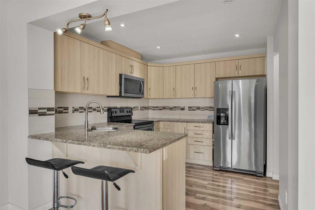 NO CONDO FEES* *DOUBLE ATTACHED GARAGE* *FULLY FINISHED BASEMENT* This townhouse built by multi award-winning Mattamy Homes is sure to impress! Pristine 3-bed, 3.5-bath, 1570+ SqFt of developed living space on the main, upper level and basement! The BASEMENT is also fully finished. The main level open concept floor plan is welcoming and full of natural light filling through the South facing windows. The primary bedroom has a walk-in closet and 4pc bathroom. The 2 remaining bedrooms share a 4pc bathroom. Basement has a massive family room, 4pc bathroom and utility/laundry room with added storage. The kitchen finished with quartz countertops, ample cabinet storage, trendy backsplash. Adding more, unit is finished with tile, and carpet, pot lighting, stainless steel appliances, railing and more! A rear attached double garage (fully finished) with lane access and street parking out front! Only few minutes walk for your favourite stores: Starbucks, Mary Brown's, Domino's, Subway, Grocery Store, 7Eleven, Gas station, car wash etc..View this incredible home today. Call your favourite realtor to book a showing today! (id:22211)