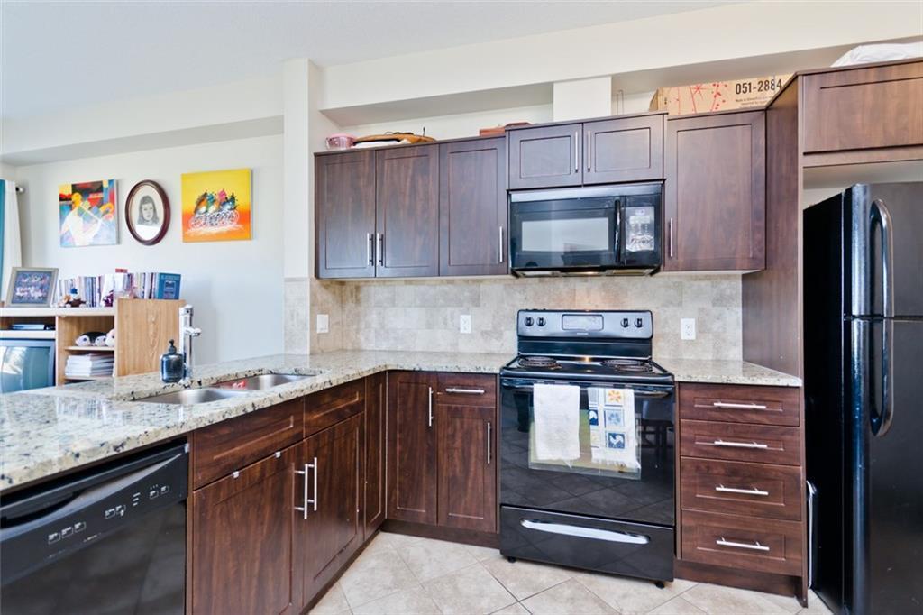 Welcome to this immaculate condo in Treo @ Beacon Hill in desirable community of Sherwood in NW Calgary. Enjoy the convenience of a maintenance free lifestyle in Sherwood. open concept condo features a stunning living room that receives tons of natural light from your private balcony with view of mature trees! The gourmet kitchen is showcased by, granite counter tops, tones of quality dark maple cabinets, modern appliances, modern back splash & functional dining area, perfect for the home chef! The spacious master bedroom comes complete with lots of closet space with tons of natural light, good sized 4 pc bath is right beside the Master for ease of getting ready but can be used for guests as well.t. Other features include 9 foot ceilings, good size in-suite laundry with storage, private balcony with view of nice mature trees. Titled underground heated parking, convenient visitor parking . Convenient elevator access.This property is ideally located close to all amenities of Beacon Hill, , major stores such as Costco, super store and other shopping, miles of pathways right out your door to enjoy a stroll or bike ride true nature. public transit , designated for good schools. Close to major roadways ( Stoney Trail & Deerfoot)! Book your viewing now! (id:22211)