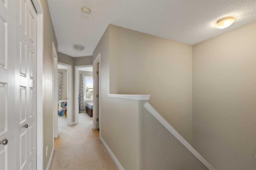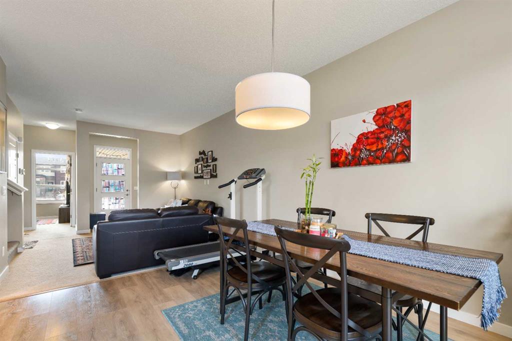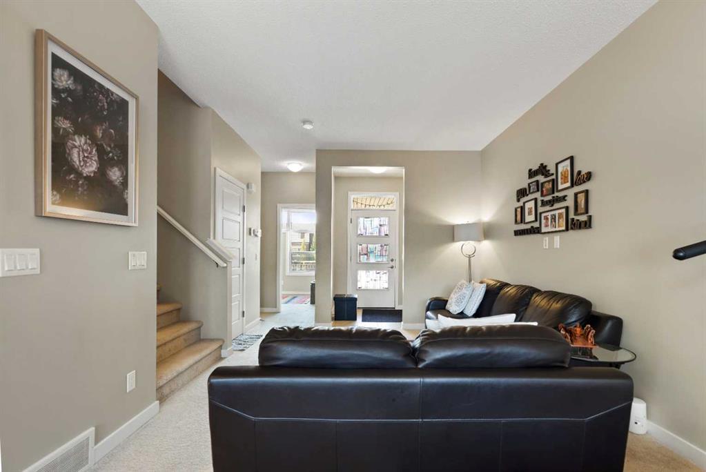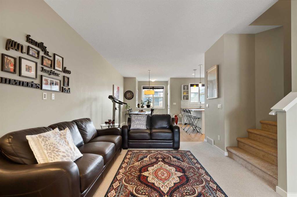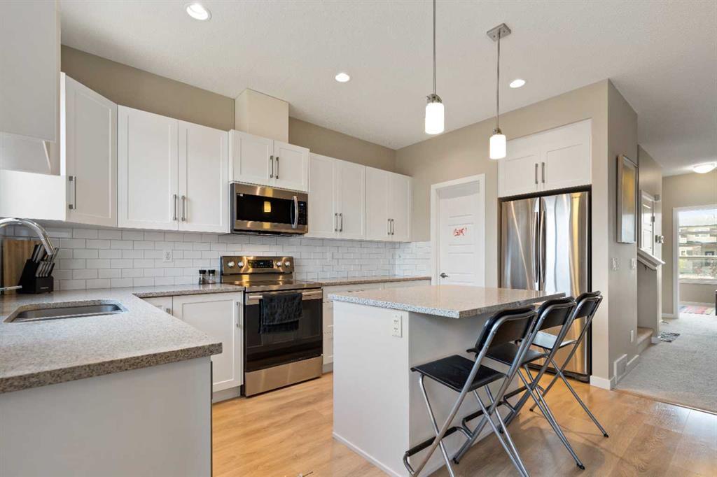 **BEAUTIFUL JAYMAN BUILT HOME**NO CONDO FEES**PARKING FOR 2 CARS** This lovely 1415sqft 2 storey townhouse with an unfinished basement features a nice open floor plan that flows smoothly into the functional kitchen with a centralized flush eating bar and corner pantry featuring Stainless Steel SAMSUNG appliances that includes a 3 door FrenchDoor Refrigerator w/ ice maker; as well as a convenient half bath for family and guests. An additional enclosed living space on the main floor that can be used as a guest bedroom, office or kid's playroom. The 2nd level offers a Master Suite with a private 5 piece en suite and walk-in closet along with 2 additional spacious bedrooms and a full 4 piece main bath. The unfinished basement provides roughed in plumbing and an opportunity for you to create and finish your ideal additional living space. Other upgrades include a Glass Top Convection Range, MOEN Faucets, Canarm Designer Lighting,USB Charging Outlet & Touchscreen thermostat. Enjoy the up & coming new community spanning over 1,000 acres in Calgary’s northeast; it’s a place for families at all stages of life to plant their roots. Welcome to Cornerstone! (id:22211)