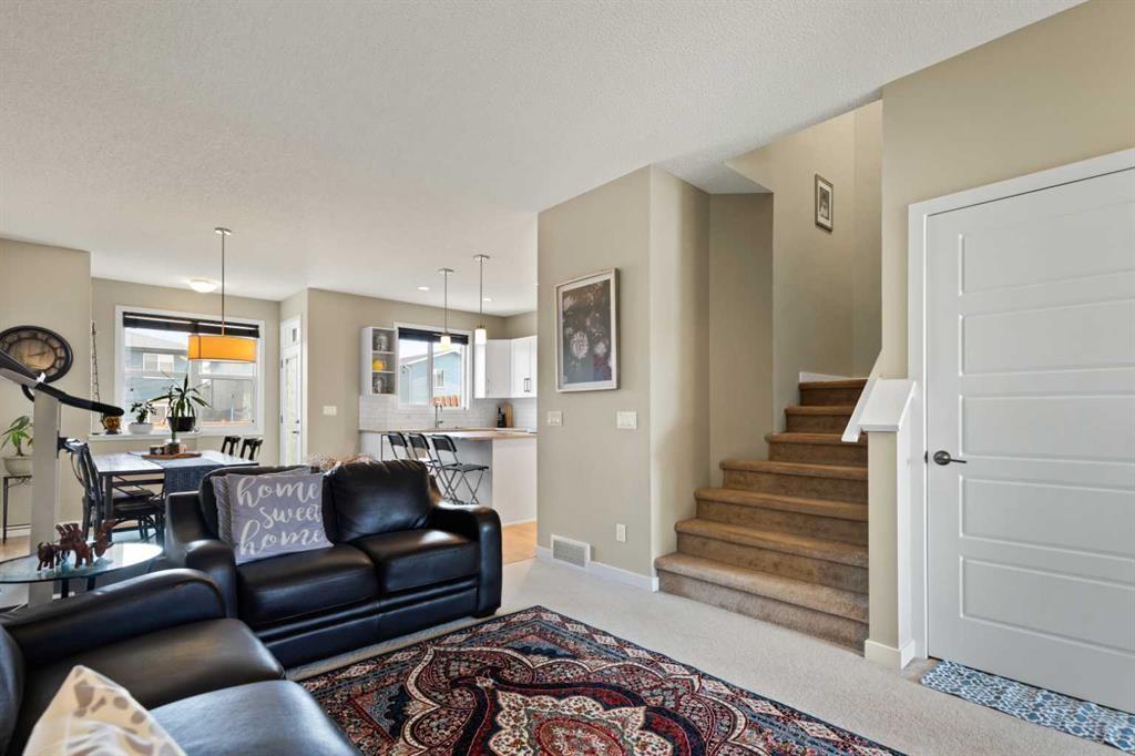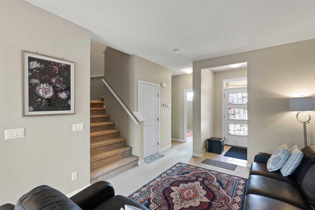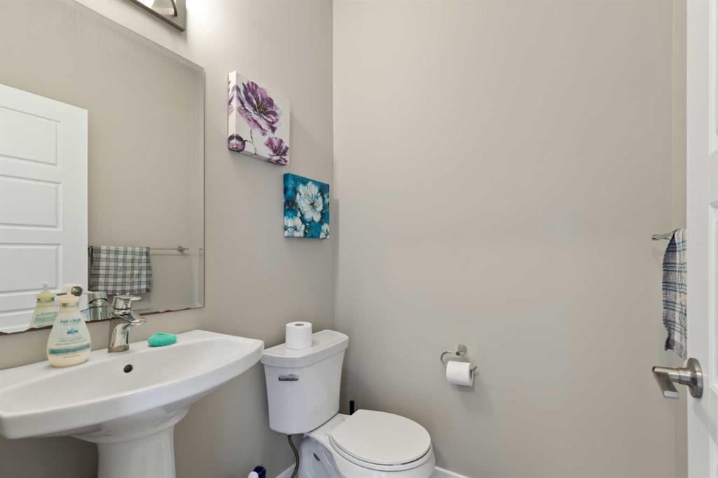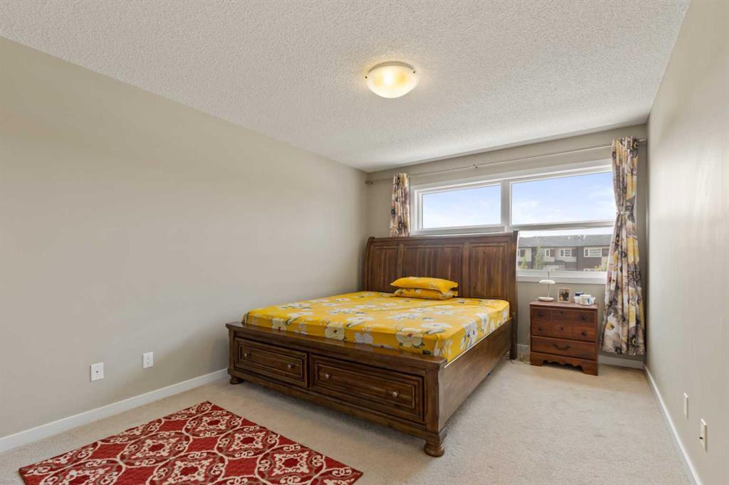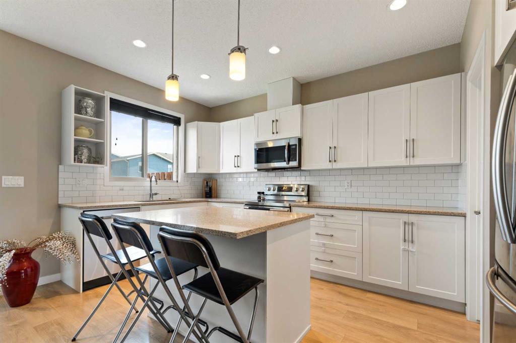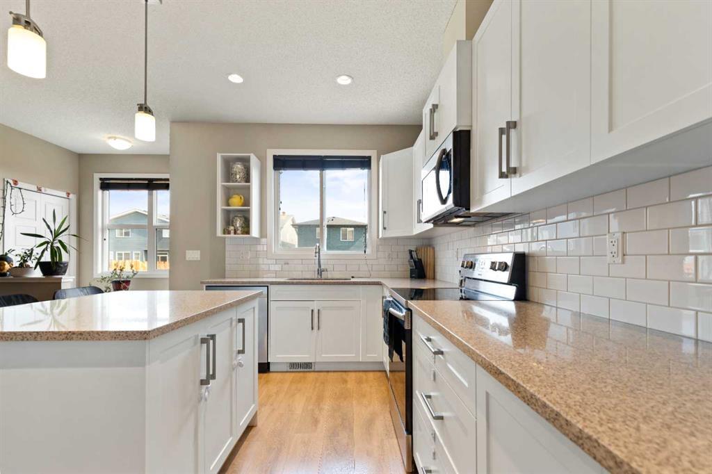 **BEAUTIFUL JAYMAN BUILT HOME**NO CONDO FEES**PARKING FOR 2 CARS** This lovely 1415sqft 2 storey townhouse with an unfinished basement features a nice open floor plan that flows smoothly into the functional kitchen with a centralized flush eating bar and corner pantry featuring Stainless Steel SAMSUNG appliances that includes a 3 door FrenchDoor Refrigerator w/ ice maker; as well as a convenient half bath for family and guests. An additional enclosed living space on the main floor that can be used as a guest bedroom, office or kid's playroom. The 2nd level offers a Master Suite with a private 5 piece en suite and walk-in closet along with 2 additional spacious bedrooms and a full 4 piece main bath. The unfinished basement provides roughed in plumbing and an opportunity for you to create and finish your ideal additional living space. Other upgrades include a Glass Top Convection Range, MOEN Faucets, Canarm Designer Lighting,USB Charging Outlet & Touchscreen thermostat. Enjoy the up & coming new community spanning over 1,000 acres in Calgary’s northeast; it’s a place for families at all stages of life to plant their roots. Welcome to Cornerstone! (id:22211)