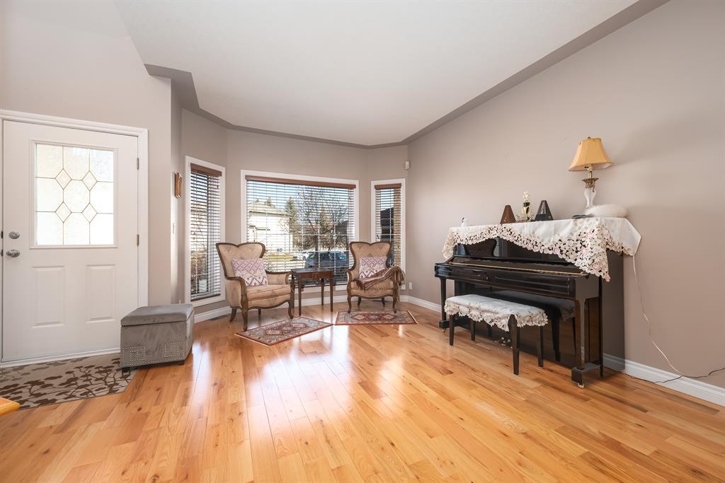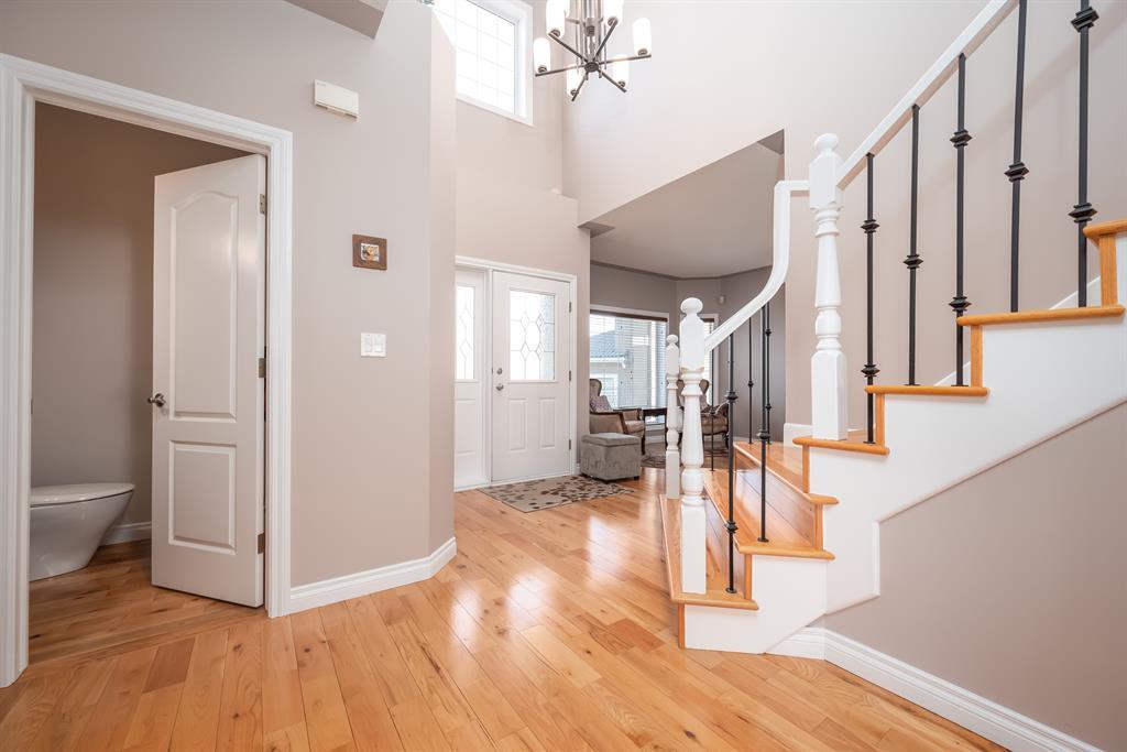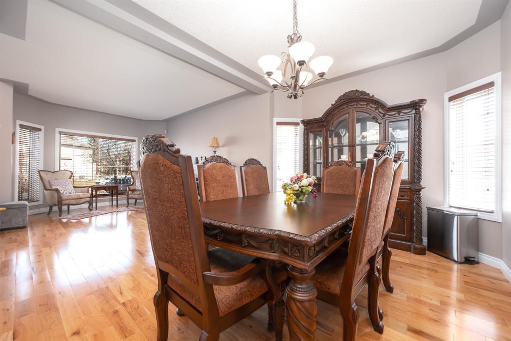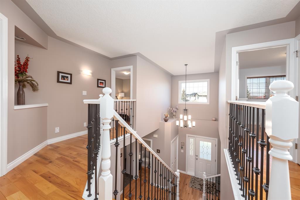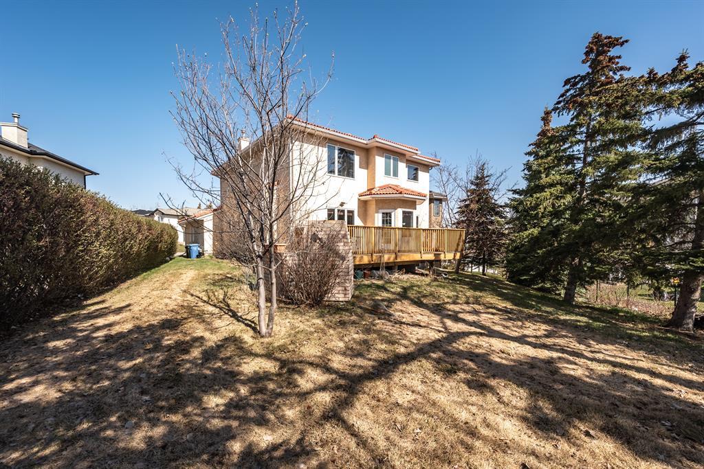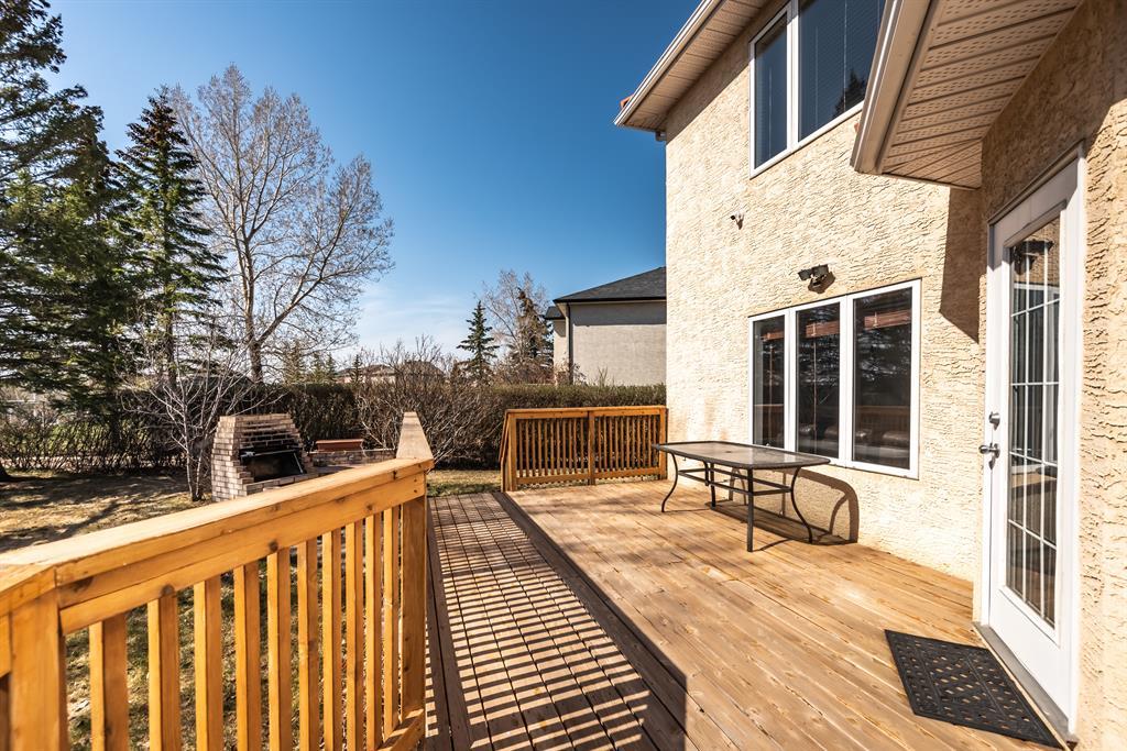 OPEN HOUSE: May 6th, Saturday Afternoon 1:00pm-3:00pm. Welcome to this renovated and well-maintained estate home in the popular northwest community of the Hamptons located on a huge pie lot with a custom-built outdoor barbecue, irrigation system and mature trees. Open the front door and your eyes are immediately drawn to the cathedral vaulted foyer, 9’ knockdown ceilings, a spectacular grand staircase that leads to the upper floor, solid oak hardwood flows throughout the main floor and the upper floor, a front living room enhanced by a bay window allowing for tons of natural light in, an adjacent formal dining room with two side windows. Southeast facing kitchen features granite counters, tiled backsplash, corner pantry, stainless steel appliances and over and under cabinet lighting. Breakfast nook has patio door leading out onto the huge cedar deck overlooking the enormous rear yard and the ultimate private oasis. The family room is accented by a wall of built-ins and a gas fireplace. Main floor also includes a laundry room and a spacious main floor den allowing you to skip the commute to work and embrace the home office lifestyle. Modern decora colors throughout with white paint trimmed boarders. Upstairs provides a primary bedroom with a walk in closet and executive Ensuite with oversized jetted tub and separate shower, three more oversize bedrooms and a 4-pc family bathroom with skylight. Renovations also included windows, plumbing, a hot water tank, Radon device in the basement, and a clay tile roof. The big basement (1161 SF) waits for your personal touch with the potential for another bedroom or two, a bathroom (there’s rough-in plumbing) and a rec room. This stunning home is just a short walk to Hamptons School and community park with playing fields, outdoor skating rink and tennis courts. Close to all the amenities including shopping centers, groceries (Superstore & Costco), restaurants and cafes are nearby and there’s quick access to Stoney Trail and Sh aganappi Trail for a quick commute out or into the city. Seller can consider to sell furniture. Please check the 3D virtual tour first and then book your showing! (id:22211)