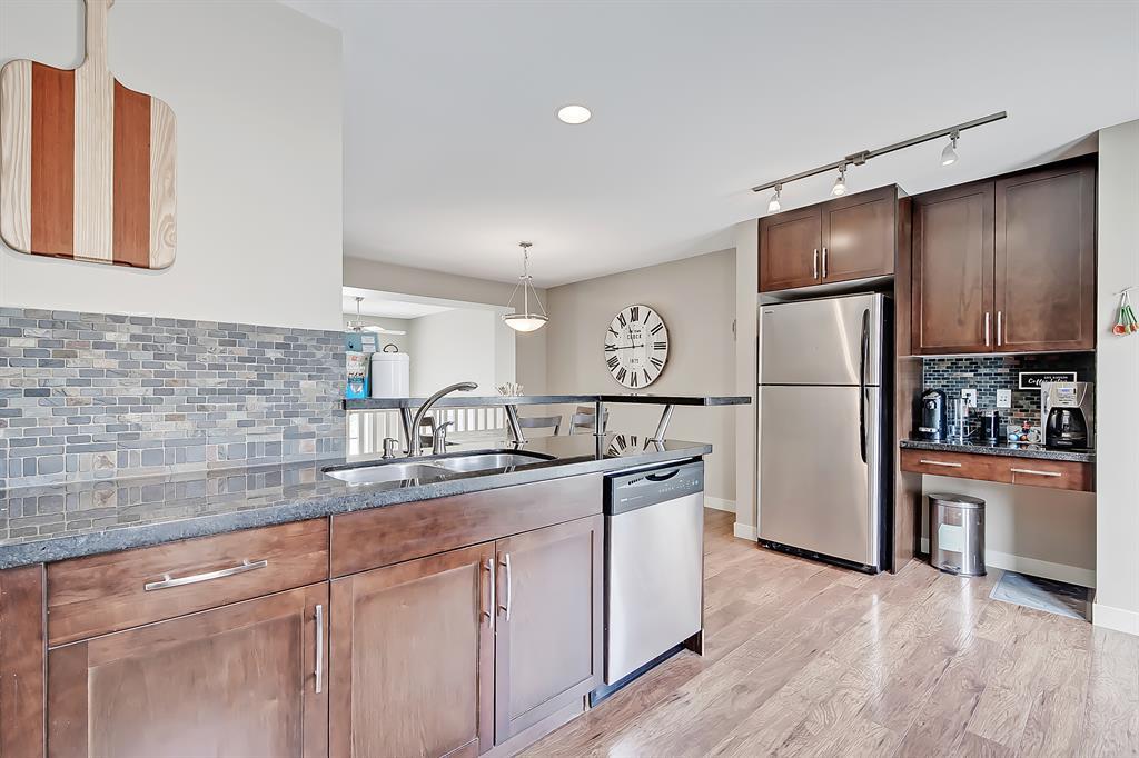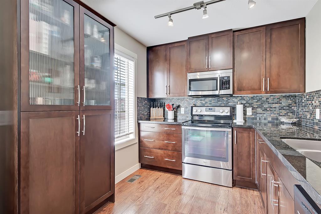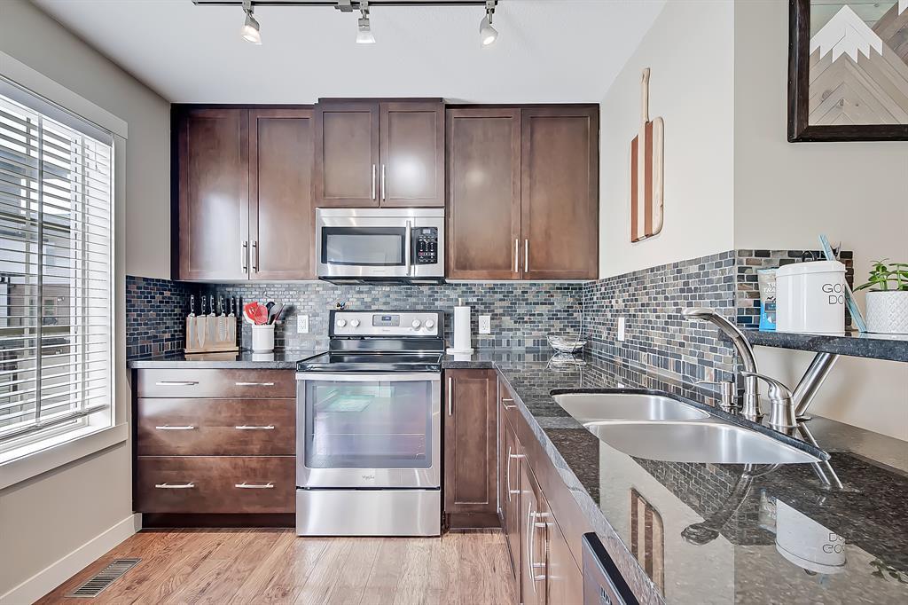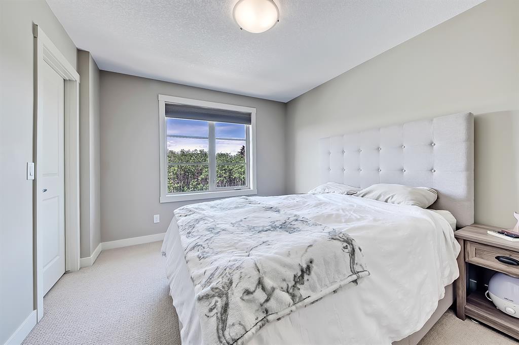 *Tuesday, May 30th Showings are Go & Show between 8am-4pm. Call for CBS code. *Visit Multimedia Link for 360º VT & Floorplans!* Across the street from an untouched forest! This spacious yet charming pet-friendly townhome features a West-facing front patio with forest views, perfect for walks with your furry friends! With LOW CONDO FEES UNDER $300 and an ATTACHED DOUBLE GARAGE, this is a rare find and an affordable option for 2 bedrooms and 2.5 bathrooms, featuring a DOUBLE MASTER LAYOUT. Extra tall 13ft ceilings in the living room are open to the kitchen above, creating a grand entrance with open, airy gathering spaces. High-quality plank floors reside on both levels, offering easy maintenance and long-term durability. The open-concept dining and kitchen area is filled with natural light from oversized windows throughout the unit and glass patio doors accessing the East-facing balcony. Modern shaker cabinets and granite counters reside in the kitchen, featuring ample storage, a mosaic tile backsplash, pots and pans drawers, an eating bar, and stainless steel appliances. The balcony of the kitchen is ideal for BBQing and creating an indoor/outdoor space. An elegant 2pc powder room on the kitchen level rounds out the main levels. Upstairs, a double master layout offers a great solution for roommates, with each room fully equipped with an ensuite and a sizeable walk-in closet. Plus, the bedrooms don’t share walls for extra privacy. The ensuites have tile floors and granite vanities with undermount sinks, with one featuring a walk-in shower and the other a tub/shower combo. The hallway also has a great space for a desk/office for those who work remotely, plus upgraded upstairs laundry, so no need to bring laundry all the way to the basement. The basement offers extra storage and a cool space for workout equipment. The double attached garage provides even more storage and room for both of your vehicles. There’s also ample and convenient street parking right outside the f ront door which is great for larger-sized trucks and work vehicles! This is a low-traffic area with no exit to major roadways, so it’s a quiet location with direct access to an untouched forest across the street. This clean and quiet unit is currently rented, but the tenant would love to continue a new 1yr lease. Aspen Woods is a quiet community on the West edge of the city with easy access to the foothills and mountains! Three schools are within walking distance, green space and pathways are abundant, and nearby amenities are less than a 5min drive! Book your showing today! (id:22211)