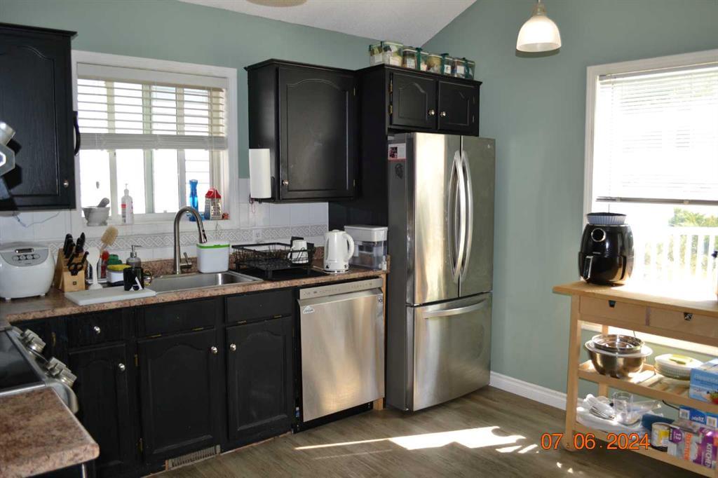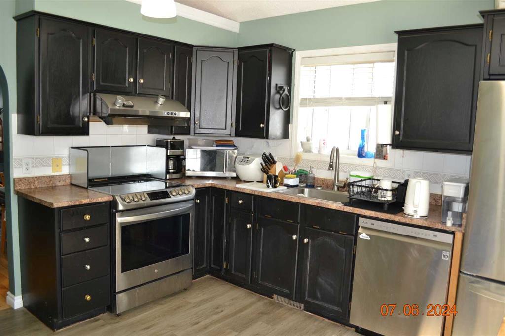 This Three bedroom, four-level split located in Hawkwood is awaiting a new family to call it home. Includes an attached double-car garage in the front. The entryway of the house contains ceramic tiling. You will notice the immense amount of natural lighting throughout the entire main floor of the house with central air conditioning, The living room has large BAY windows and is very open with maple flooring and vaulted ceilings. Moving into the kitchen you will notice the great amount of cupboard space, as well as another very large window that pulls in a lot of natural light. Access to the back deck is through the kitchen. The master bedroom is very bright with sufficient closet space and also contains a pocket door that gives access to the Five piece bathroom, which can convert to two bathrooms The main bathroom includes his and her sinks, as well as ceramic tiling and ample storage space. There is plenty of storage space throughout the home. The backyard is well kept with a large deck. Walking distance to 3 schools in the area, close to many amenities and services. (id:22211)