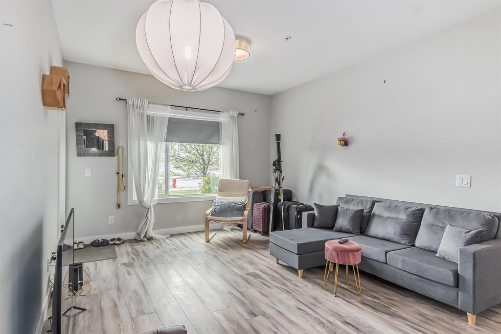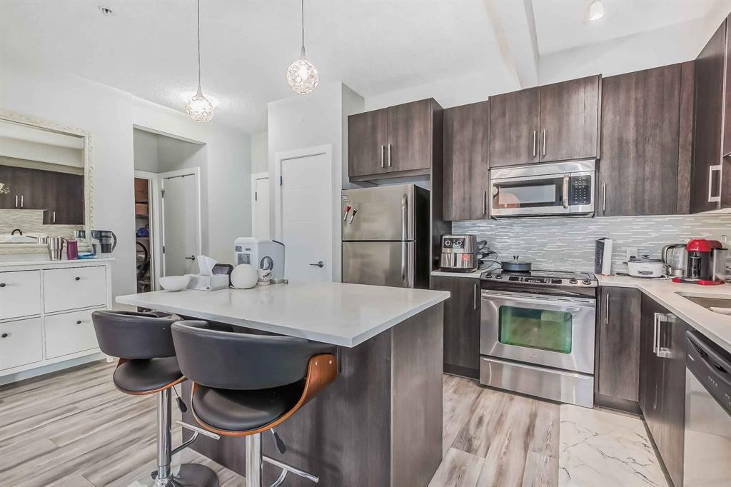 Please read carefully. This unit is rented at $1800/mth until February 28, 2024. The tenant must be assumed; or take possession next year. Beautiful two-bedroom, two-bath main floor unit with sunny south exposure in Sage Valley. Enjoy quartz countertops throughout, a designer kitchen with quality appliances, rich hardwood laminate floors, titled underground parking, excellent condition, and more. Access directly from the street or through the main doors. Walkable to shopping, ravine trails, and pathways. Public transportation right out front. (id:22211)