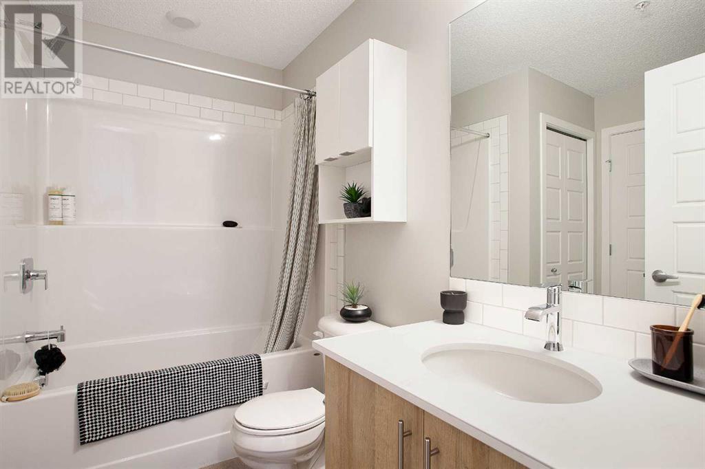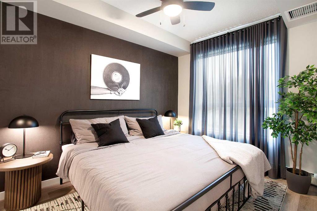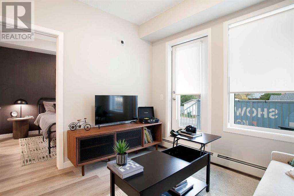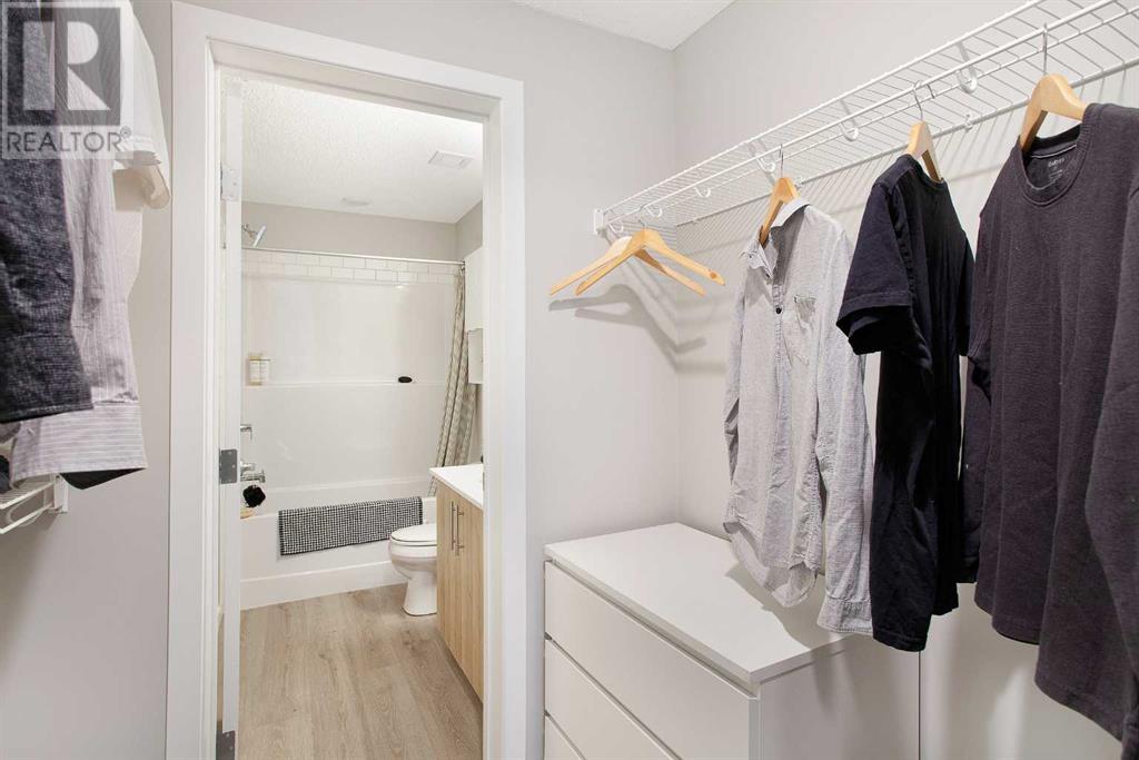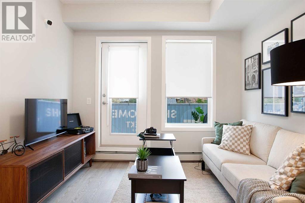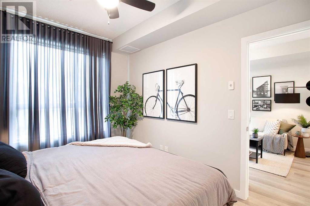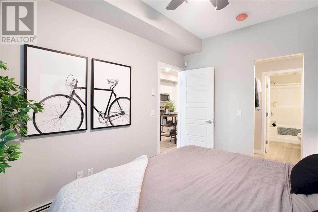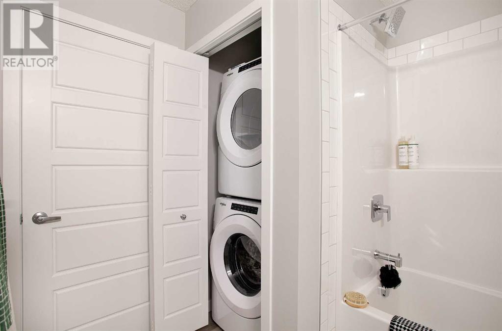Looking for a luxurious living space in Calgary? Look no further than 103 1605 - 17th Street SE! This beautiful A1 home features a spacious 489 square feet of living space, one bedroom, and one bathroom, perfect for singles or couples.With possession available in Fall 2023, you can move in and start enjoying the luxury lifestyle. This north-facing home is located in a great location, close to all the amenities, including parks, shopping, downtown, and major roadways.As soon as you walk into the home, you will be greeted by 9-foot ceilings and large windows in both the living room and bedroom. The open concept design features a separate dining area and eating bar in the kitchen, with a large walk-in pantry for added convenience. The kitchen features dual-tone white and cassis slab cabinets, complemented by a stunning white Macchiato quartz countertop, and upgraded Whirlpool stainless appliances, including an OTR microwave, electric range, dishwasher, and fridge with French doors and a freezer bottom.The main living area boasts contemporary LVP flooring, and the backsplash in the kitchen is an upgraded white hexagon design. The master bedroom has a large walk-in closet and an ensuite, and also features a standard tub/shower unit in the main bathroom.This home also comes with upgraded lighting, including a ceiling fan in the master, and an upgraded white Whirlpool front-loader stackable washer and dryer.Assigned parking is available, and a storage locker is available for purchase. With condo fees of $241.55, this home is the perfect balance of comfort, convenience, and luxury. Don't miss out on this amazing opportunity, book your viewing today! READ SHOWINGTIME INSTRUCTIONS CAREFULLY AFTER BOOKING. (id:22211)