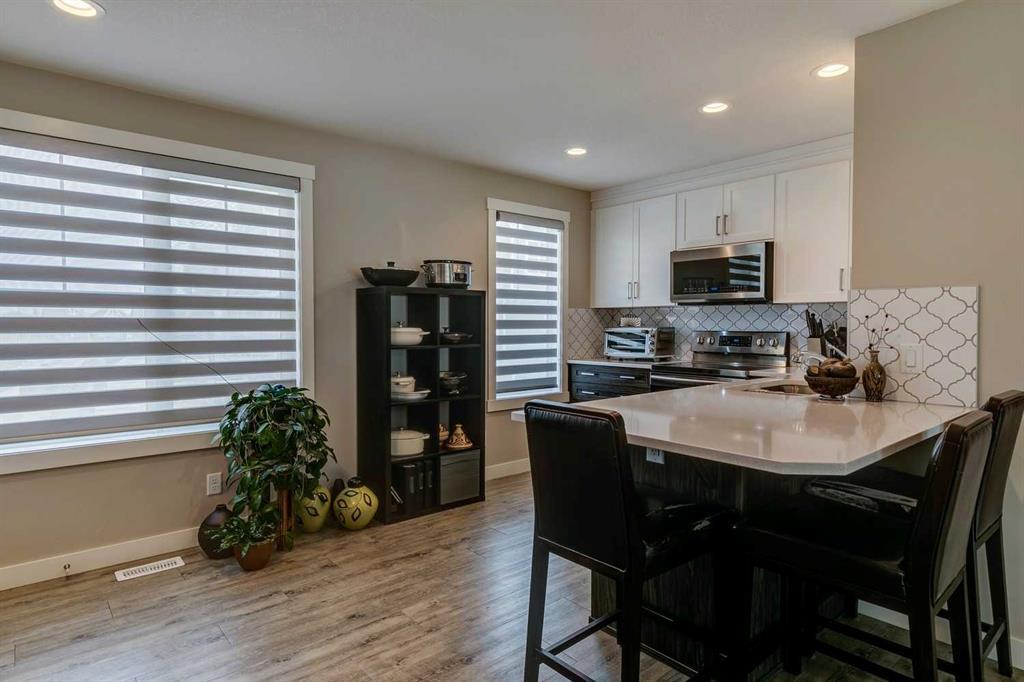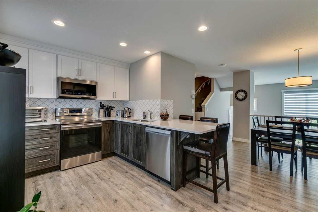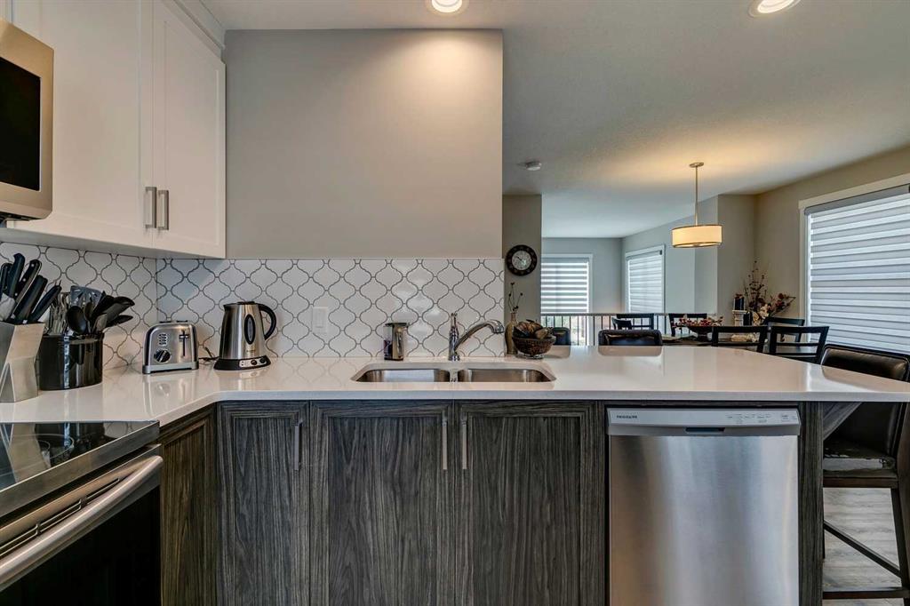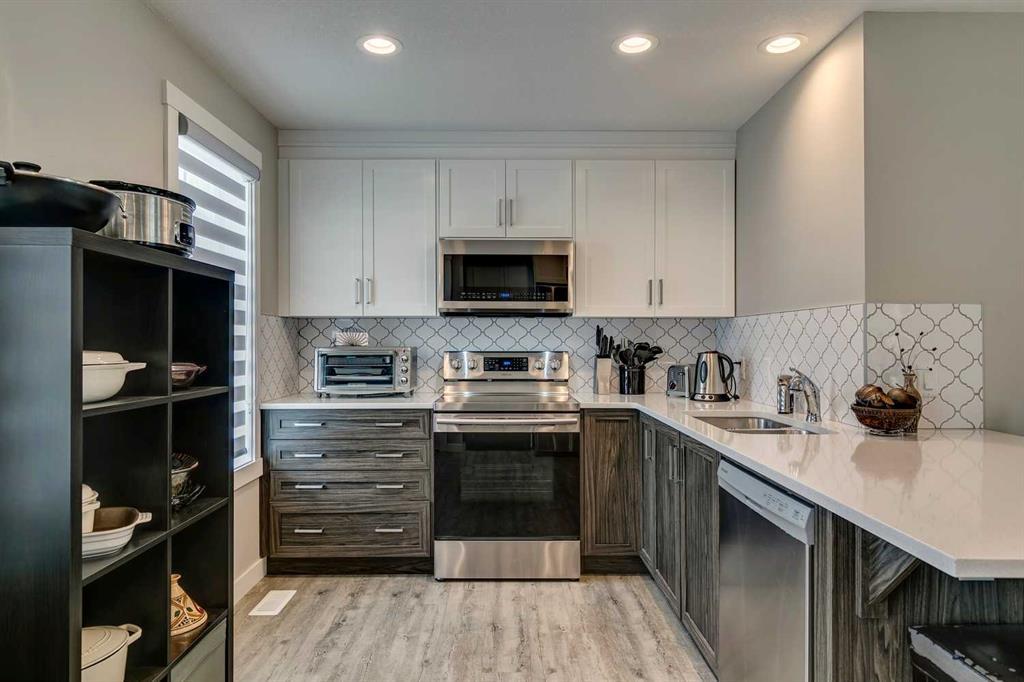 As you enter the townhome, you are greeted by a spacious and inviting atmosphere. The kitchen is a focal point of the home, featuring stainless steel appliances that add a sleek and contemporary touch. The upgraded finishes, including pot lights, enhance the overall ambiance and create a welcoming environment. The quiartz countertops provide both style and durability, and the vinyl plank flooring adds a modern and elegant look to the living spaces. High-end carpeting adds a cozy and luxurious feel to the bedrooms and other areas. Large windows, particularly the Piqurestit windows on the end unit, allow plenty of natural light to flood the interior, creating a bright and airy atmosphere. This makes the living spaces feel even more spacious and inviting. The large primary bedroom is a standout feature, offering ample space for relaxation and comfort. It includes an ensuite bathroom, providing privacy and convenience. Additionally, the second bedroom also has its own ensuite bathroom, making it perfect for guests or family members. The townhome's location is another major advantage. It is conveniently situated near various amenities, ensuring easy access to shopping centers, restaurants, and other services. Additionally, being close to Fish Creek Park and the Bow River allows residents to enjoy outdoor activities and explore nature. Overall, this immaculate townhome end unit offers a contemporary and upscale living experience. With its spacious bedrooms, upgraded features, natural light, and proximity to amenities and natural attractions, it provides the perfect combination of comfort, convenience, and modern style. (id:22211)