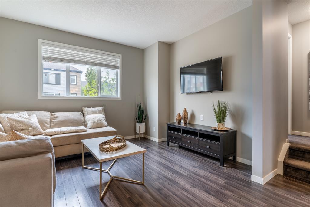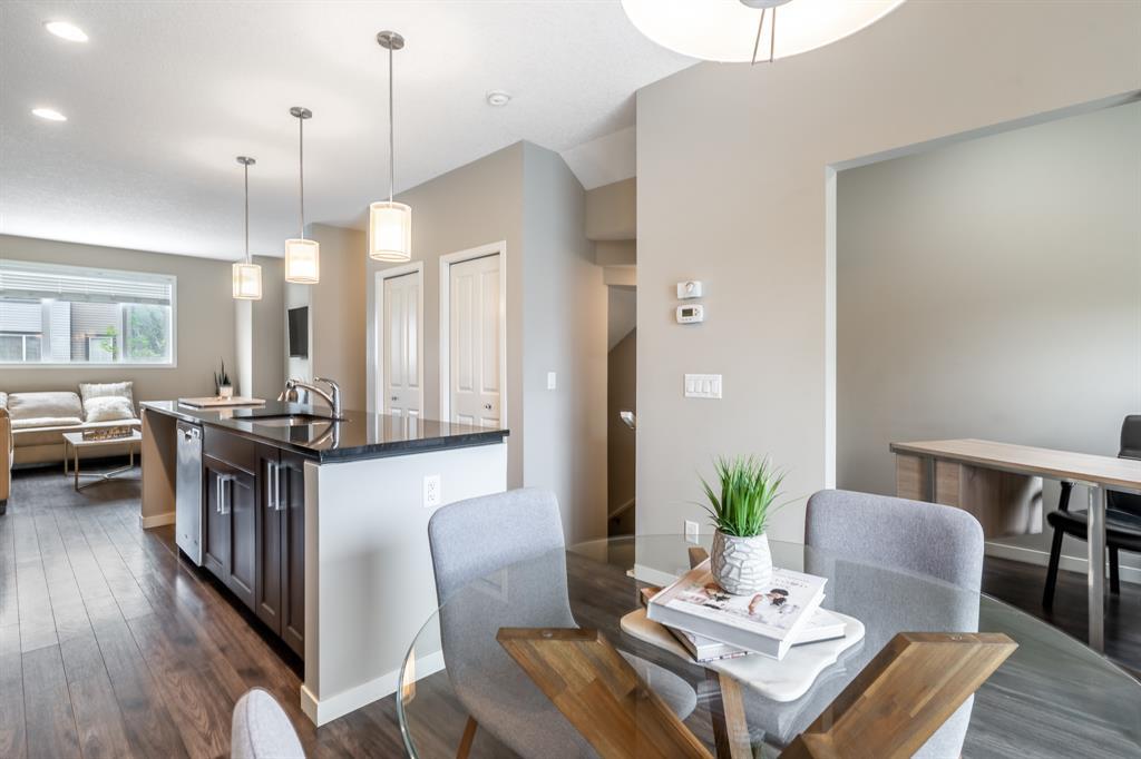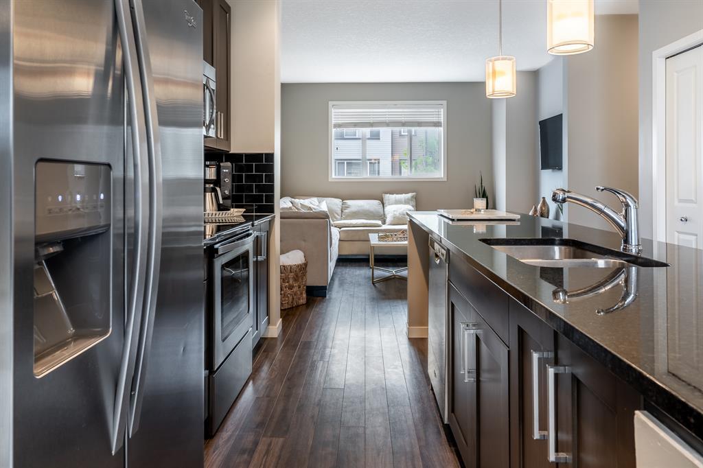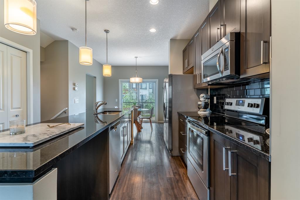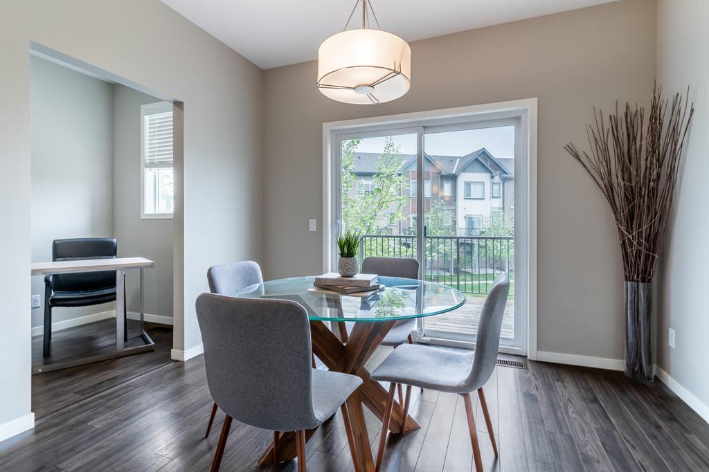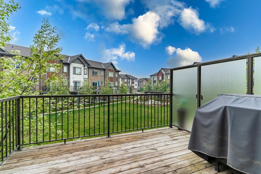 Welcome to this stunning three-floor condo, offering a perfect blend of comfort, style, and convenience. Located in the desirable neighborhood of Copperfield this meticulously designed residence boasts two bedrooms, including a primary suite with a walk-in closet and ensuite, providing ample space for all your lifestyle needs. Enter and head upstairs to your main level which showcases an open layout, creating a seamless flow between the living, dining, and kitchen areas. The abundance of natural light contributes to a bright and airy atmosphere, making it an inviting space for both relaxation and entertaining. The kitchen is a great set up, featuring modern appliances, sleek countertops, and ample cabinetry, offering both functionality and style. Whether you're hosting a dinner party or preparing a casual meal, this well-appointed kitchen is equipped to meet your needs. A separate den just off your dining area is the perfect place to work from home. Also off your dining area is your patio overlooking the beautiful green space. Then off your living room area on your way upstairs is the main floor 2 pce bathroom. Head to the upper level, where you'll find the bedrooms plus a 4 pce bathroom. The primary bedroom is a private oasis, complete with a generous walk-in closet and a 4 pce ensuite. The additional bedroom also with a walk in closet and upstairs laundry complete this level. All this plus your own attached single car garage on the entrance level plus an undeveloped walk out space to a second patio waiting for your finishing touches. Enjoy all the benefits of low-maintenance living while still having access to a private outdoor space. Within close proximity, you'll find a variety of amenities, including shopping centers, restaurants, parks, and excellent schools. The convenient location also provides easy access to major transportation routes, making commuting a breeze. Don't miss your chance to see this one today. It won't last long. (id:22211)