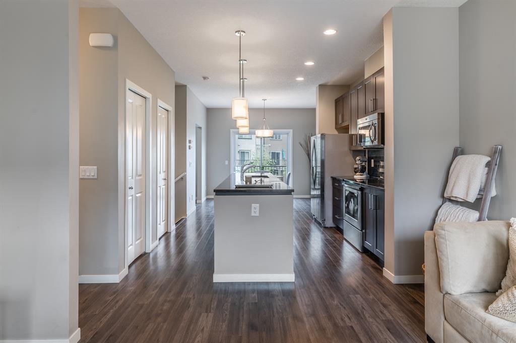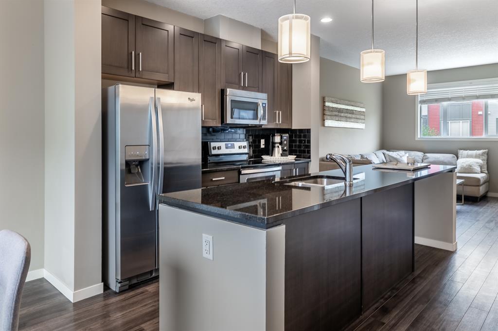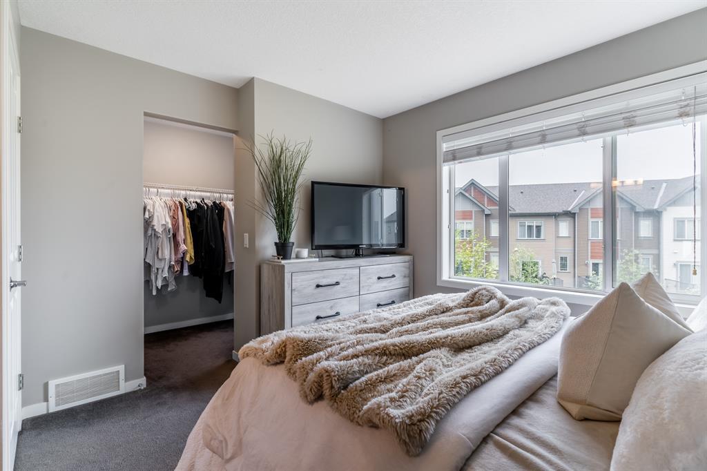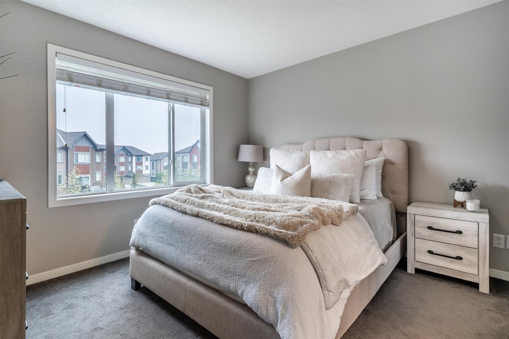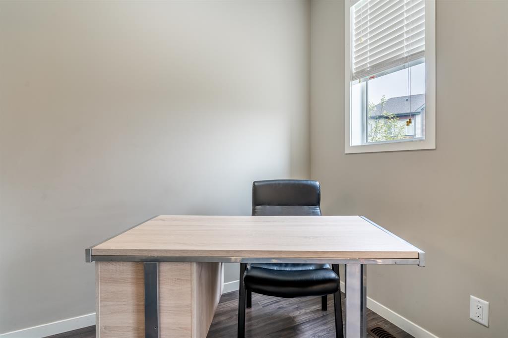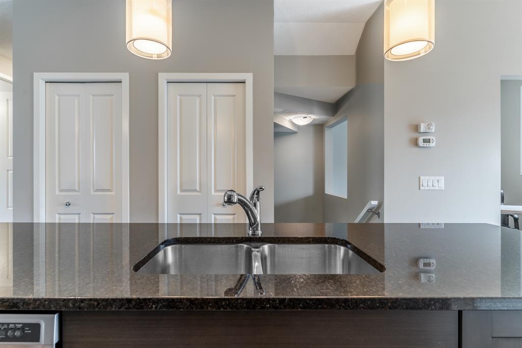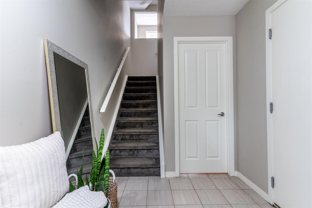 Welcome to this stunning three-floor condo, offering a perfect blend of comfort, style, and convenience. Located in the desirable neighborhood of Copperfield this meticulously designed residence boasts two bedrooms, including a primary suite with a walk-in closet and ensuite, providing ample space for all your lifestyle needs. Enter and head upstairs to your main level which showcases an open layout, creating a seamless flow between the living, dining, and kitchen areas. The abundance of natural light contributes to a bright and airy atmosphere, making it an inviting space for both relaxation and entertaining. The kitchen is a great set up, featuring modern appliances, sleek countertops, and ample cabinetry, offering both functionality and style. Whether you're hosting a dinner party or preparing a casual meal, this well-appointed kitchen is equipped to meet your needs. A separate den just off your dining area is the perfect place to work from home. Also off your dining area is your patio overlooking the beautiful green space. Then off your living room area on your way upstairs is the main floor 2 pce bathroom. Head to the upper level, where you'll find the bedrooms plus a 4 pce bathroom. The primary bedroom is a private oasis, complete with a generous walk-in closet and a 4 pce ensuite. The additional bedroom also with a walk in closet and upstairs laundry complete this level. All this plus your own attached single car garage on the entrance level plus an undeveloped walk out space to a second patio waiting for your finishing touches. Enjoy all the benefits of low-maintenance living while still having access to a private outdoor space. Within close proximity, you'll find a variety of amenities, including shopping centers, restaurants, parks, and excellent schools. The convenient location also provides easy access to major transportation routes, making commuting a breeze. Don't miss your chance to see this one today. It won't last long. (id:22211)