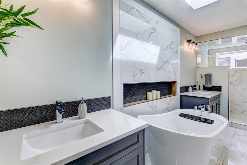 Open house Sunday November 28th, 12:30-3:00. Welcome to this Elite Jewel in the sought after family community of Charleswood! Do not miss the warranty list (contact the listing agent or the homes website for details). The main level of this luxury bungalow features an open concept that is perfect for entertaining or family time. The gourmet kitchen has high end stainless steel JennAir appliances including a 5 burner gas cooktop, wall oven and microwave combo, large refrigerator, dishwasher and a modern range hood. The custom white kitchen has a huge waterfall island (nearly 10'!) with extra storage space. There are tons of cabinets as well as a wall pantry. Open onto the kitchen is the living room/dining room combination with vaulted ceilings and large windows looking out onto the green space. The beautiful master bedroom has huge floor to ceiling triple pane windows looking out onto the park, a spa like 5 piece ensuite with a separate tub and steam shower, heated floors, skylight and two vanities. The balance of the master bedroom is a spacious walk-in closet. There are two more bedrooms above grade as well as 4 piece bathroom. The laundry room is conveniently located on the main level as well as a mudroom with lockers at the side entrance. The fully finished basement has a large recreation room with a wet bar, good sized bedroom with a walk in closet as well as a 4 piece ensuite and plenty of storage space. The huge backyard is great for kids or summer BBQ season. The large lot (over 50' frontage) boasts an oversized double garage. Located on a quiet street within walking distance of the Calgary Winter Club and schools (all grades) and a short drive to the University of Calgary, Confederation Park, Nose Hill Park and easy access out of Calgary. Call for your own private viewing. (id:22211)