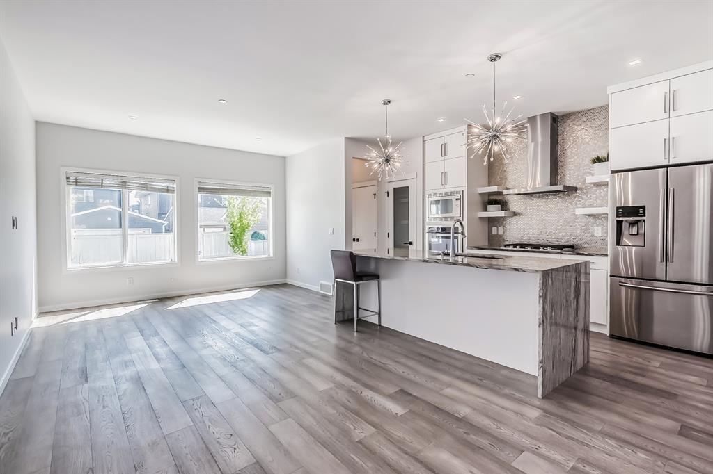 4 beds| 3 full bath | 1747.8 sq. ft. | 9 ft main floor ceiling | Modern Finishings | Unfinished Basement | Loaded with many Upgrades - The beautiful Morrison-built house in the Livingston area is a stunning example of modern elegance and comfort. It features nearly 1,747.8 square feet above grade with four bedrooms, three bathrooms, and two living rooms. Step inside and be greeted by the timeless beauty of granite counters and stainless-steel appliances in the stylish kitchen. The main level has resilient, laminate flooring, a 9 ft ceiling throughout the kitchen, and great & dining rooms. At the same time, attractive tile areas in the foyer with an open concept make the perfect space for relaxation and entertainment. A bedroom and full-standing shower bathroom on the main floor provide ample space and comfort for guests or family members. Unwind in the primary suite, complete with an ensuite bathroom adorned with granite counters and a walk-in closet, offering elegance and tranquility. The second and third bedrooms on the upper floor provide ample space and comfort for guests or family members. A second full bathroom offers family members and guests easy access and a comfortable room for their business—a significantly large-sized bonus welcomes guests and family members for entertainment and spending quality time together. An unfinished basement awaits you to design and develop your dream basement for your family’s home theatre. A paved back alley provides homeowners hassle-free access to their garage pad to avoid running off of the melted snow or in the rain.Convenience is a key highlight of this house. Imagine being just minutes away from Tim Hortons, groceries, a gas station, a medical office, and a bus stop, ensuring effortless access to daily essentials. Schools, a C-future train station, and many other amenities are within a comfortable distance, enhancing your quality of life. The homeowner will have steps away access to the large playground, walkway, and ho meowner association centre. The homeowner association offers a farmer's market, several programs and events, along with the rental of the party hall and kitchen. (id:22211)