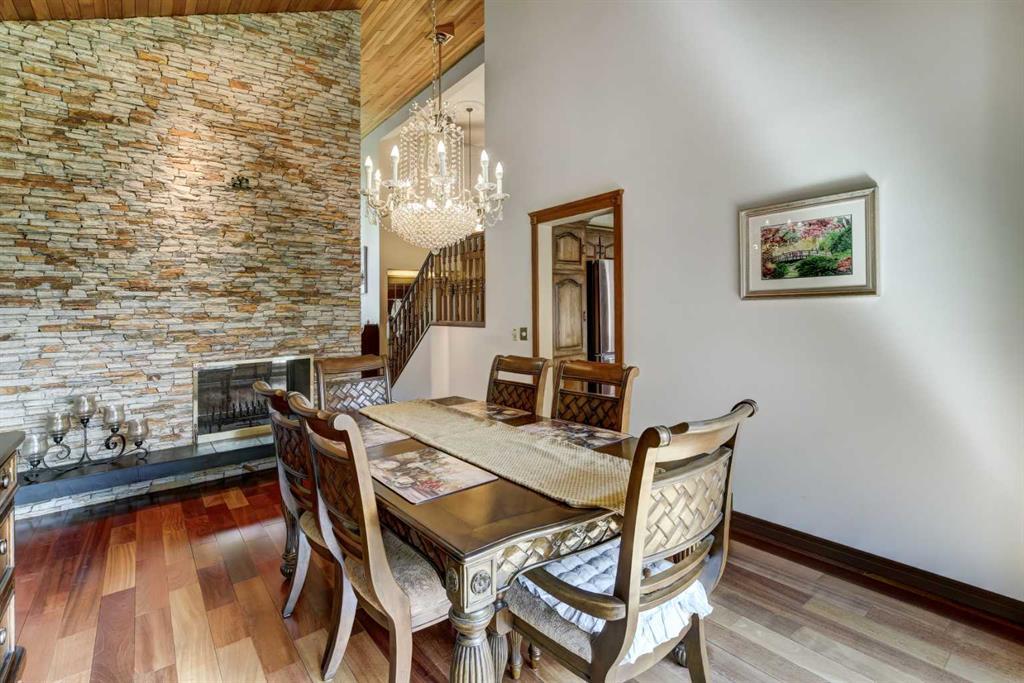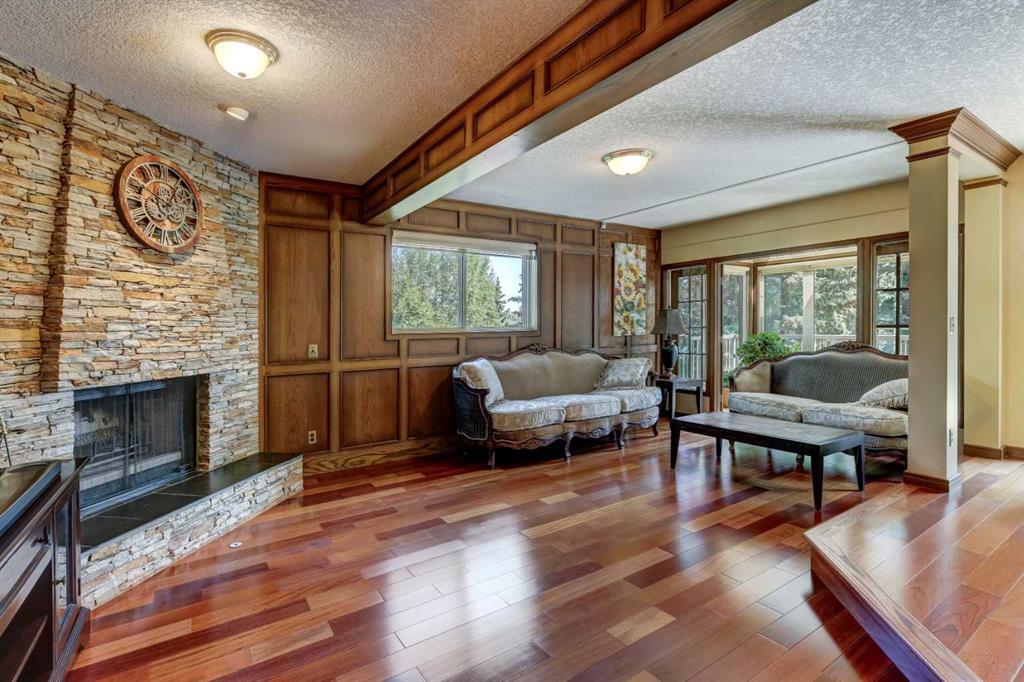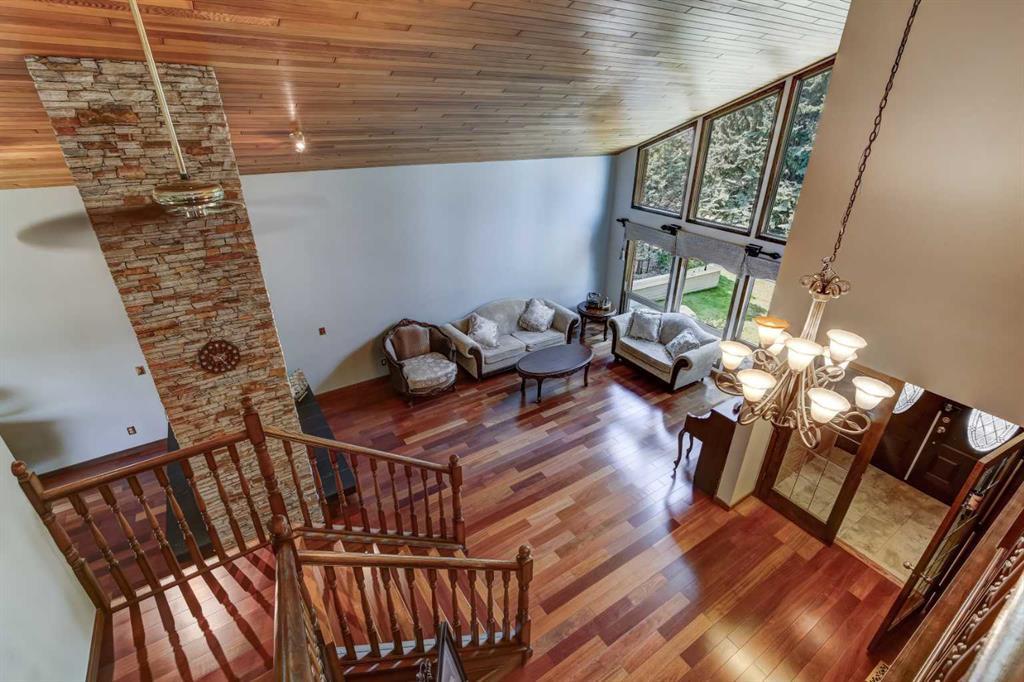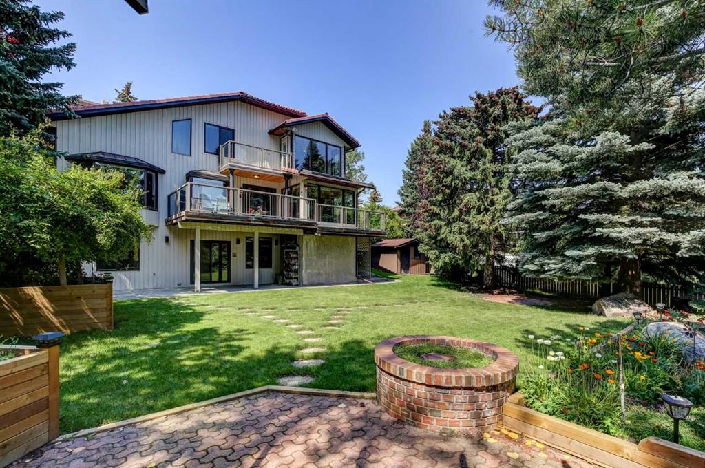 Discover a meticulously maintained two-story split home in the sought-after neighborhood of Edgemont in NW Calgary! This coveted location offers stunning views and a spacious lot, making it one of the most desirable properties in the area. Step inside and be greeted by the elegance of the stacked stone fireplace and the vaulted high ceiling in the living room, creating a warm and inviting ambiance. This incredibly well-built and stylish fireplace extends its charm, providing an inviting atmosphere throughout the house, perfect for cozy family gatherings or entertaining guests. Enjoy your morning coffee in the sunny atrium or host gatherings in the family room/dining area, where a beautiful chandelier and another eye-catching stacked stone fireplace add to the allure. The master suite offers a walk-in closet, a full bathroom with a jetted tub, and captivating views of the surrounding mature trees, adding a touch of serenity to your private oasis. A bonus feature is the office, complete with built-in custom shelves, a fireplace, and a wet bar. The fully developed walk-out basement includes an additional bedroom and a hobby room, a full bath, and a summer kitchen. Located close to all amenities, including the U of C, Foothill Hospital, and the LRT station, this home offers the perfect blend of elegance, convenience, and comfort. Don't miss the opportunity to make this Edgemont gem your new home! (id:22211)