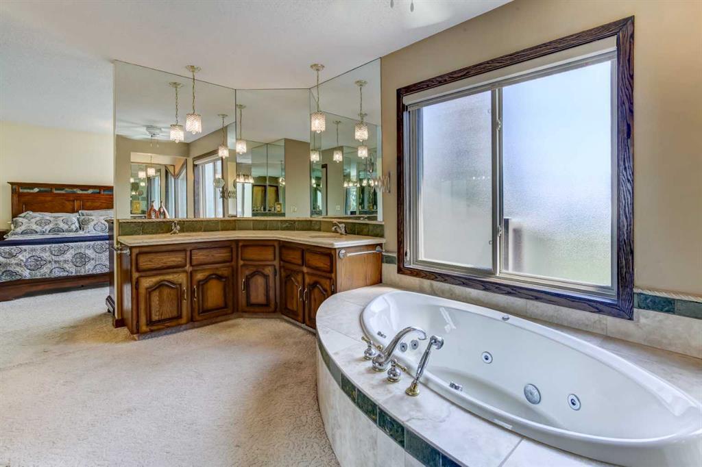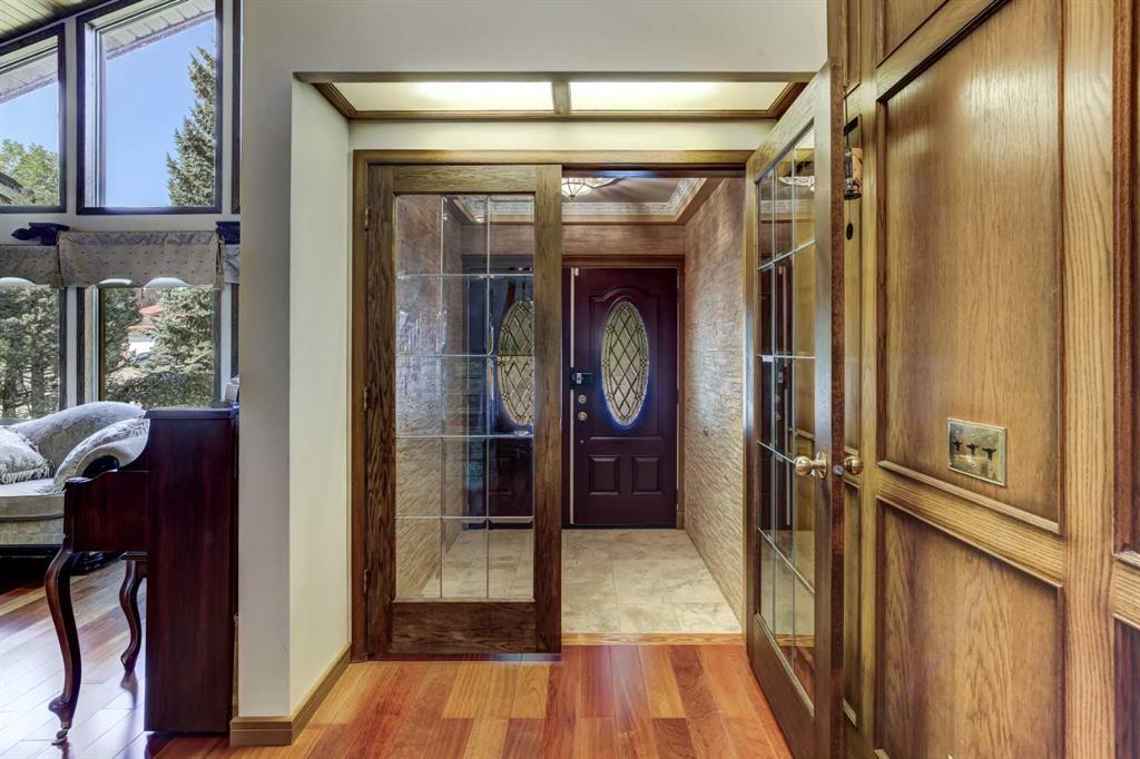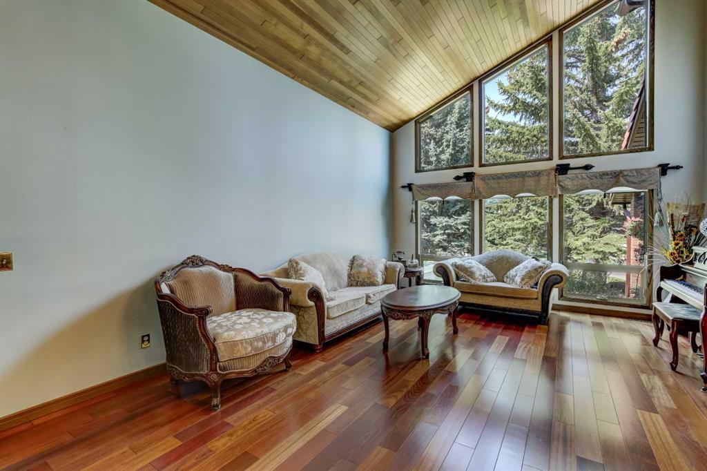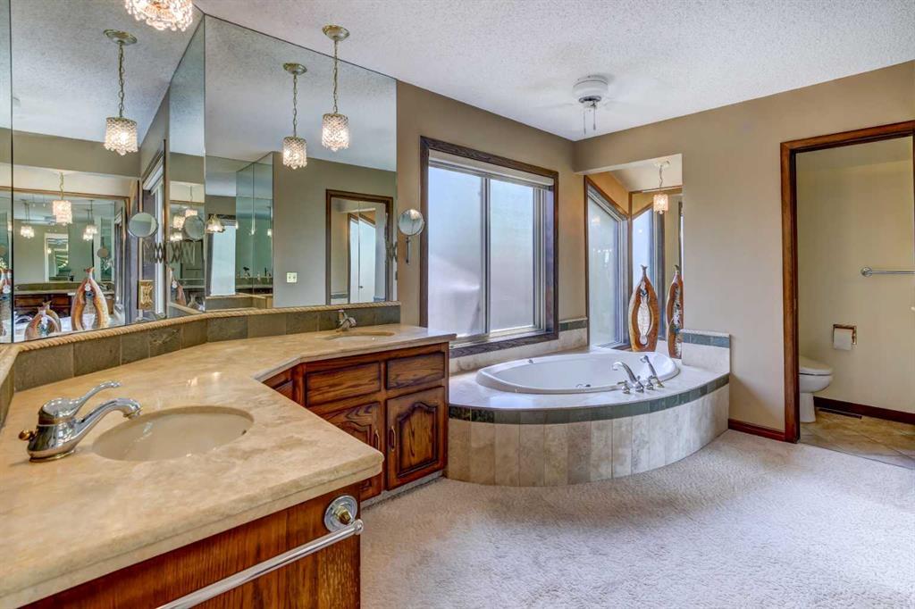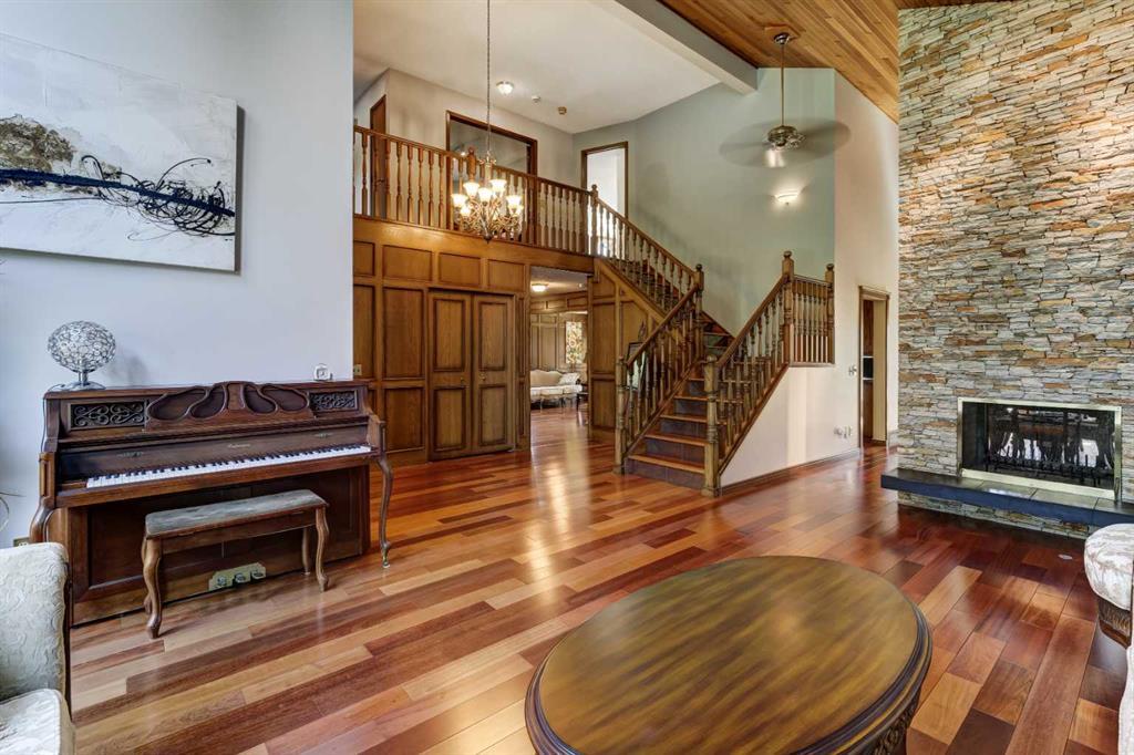 Discover a meticulously maintained two-story split home in the sought-after neighborhood of Edgemont in NW Calgary! This coveted location offers stunning views and a spacious lot, making it one of the most desirable properties in the area. Step inside and be greeted by the elegance of the stacked stone fireplace and the vaulted high ceiling in the living room, creating a warm and inviting ambiance. This incredibly well-built and stylish fireplace extends its charm, providing an inviting atmosphere throughout the house, perfect for cozy family gatherings or entertaining guests. Enjoy your morning coffee in the sunny atrium or host gatherings in the family room/dining area, where a beautiful chandelier and another eye-catching stacked stone fireplace add to the allure. The master suite offers a walk-in closet, a full bathroom with a jetted tub, and captivating views of the surrounding mature trees, adding a touch of serenity to your private oasis. A bonus feature is the office, complete with built-in custom shelves, a fireplace, and a wet bar. The fully developed walk-out basement includes an additional bedroom and a hobby room, a full bath, and a summer kitchen. Located close to all amenities, including the U of C, Foothill Hospital, and the LRT station, this home offers the perfect blend of elegance, convenience, and comfort. Don't miss the opportunity to make this Edgemont gem your new home! (id:22211)