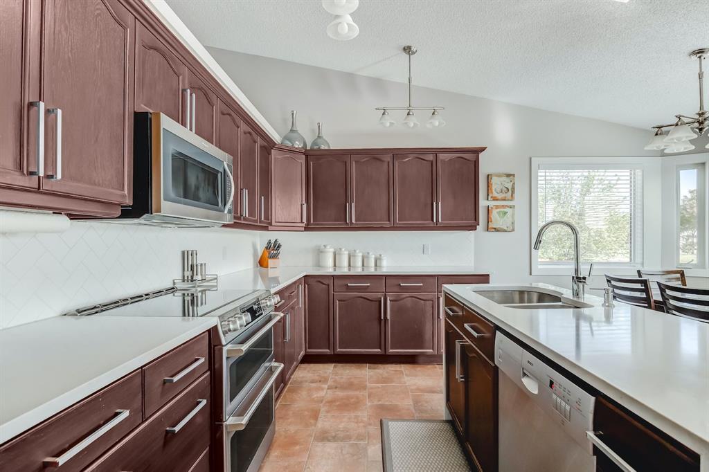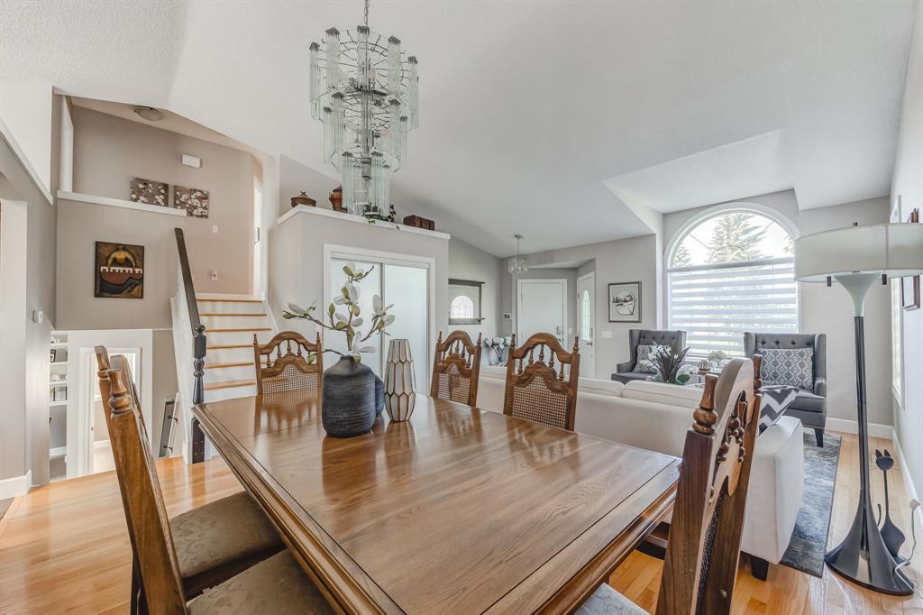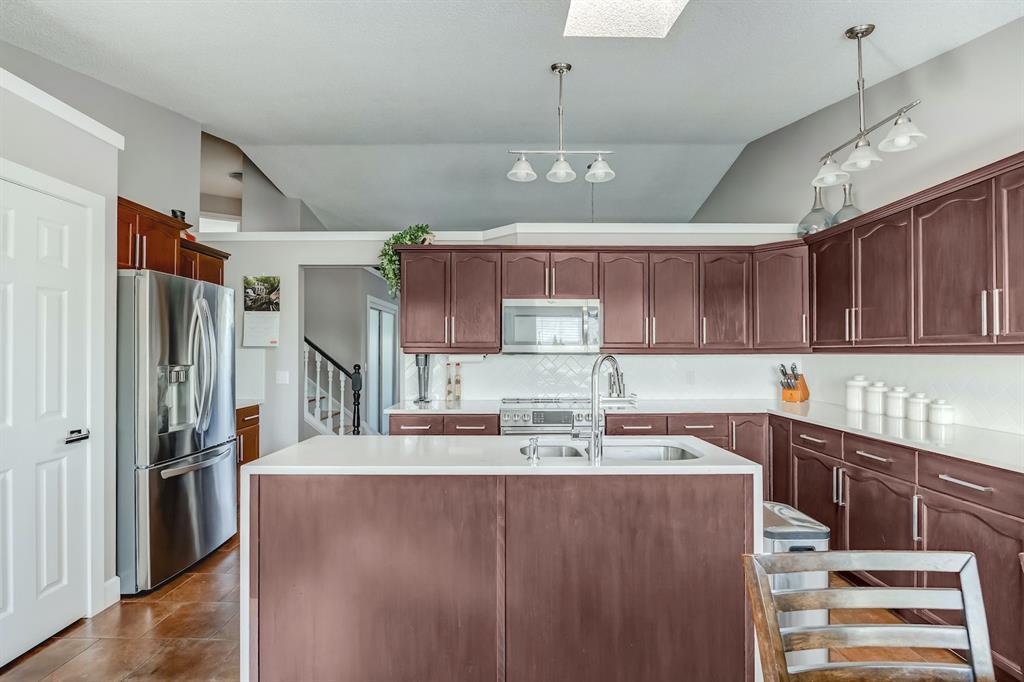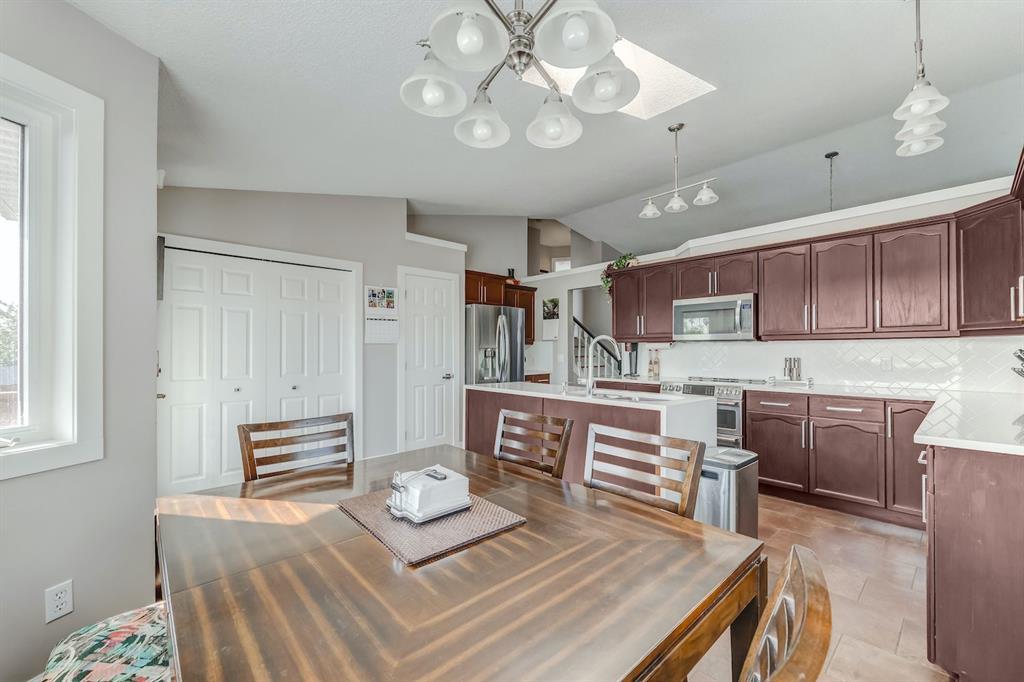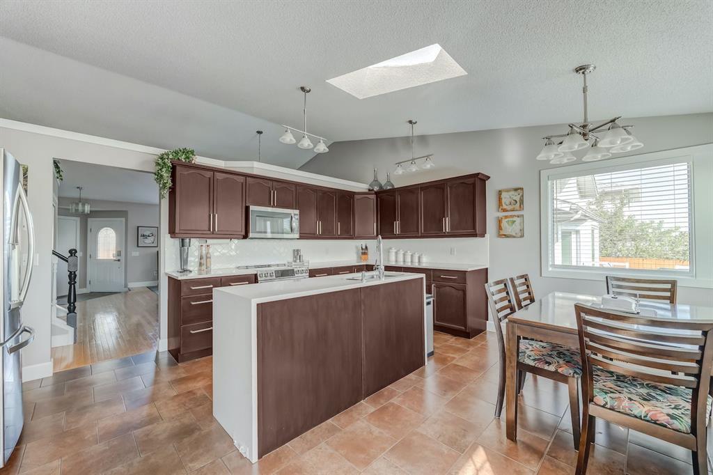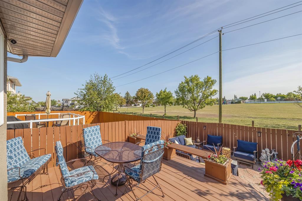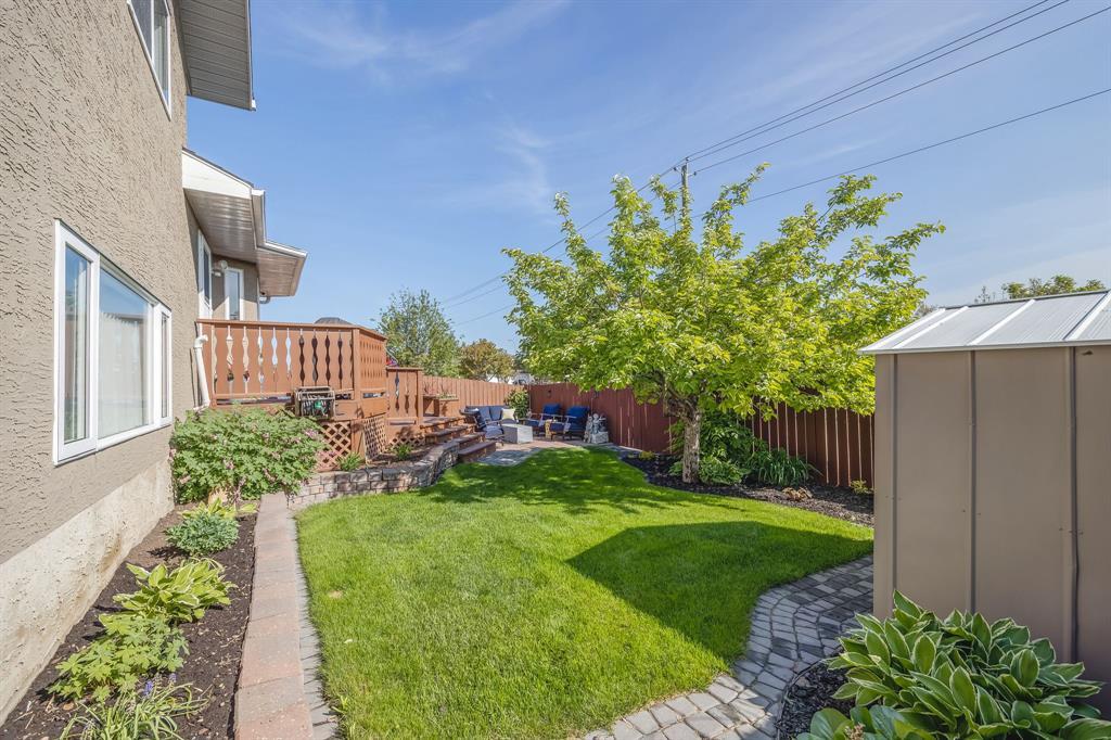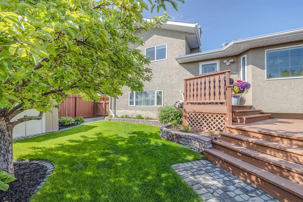 Nestled on one of the best streets in the bright and beautiful community of Applewood Park, this 4 level split style home features over 2500 square feet of total living space. Well-maintained and move-in ready this home is minutes from a plethora of amenities located in East Hills Shopping Centre as well as access to many transportation routes including Stoney Trail. With a total of 5 bedrooms, 3 baths, attached front drive double garage and a welcoming front entry, this beautiful home has all the spaces you need. Whether you are looking to entertain or have cozy nights by the fire, this home showcases the best of all worlds with a mix of original charm and modern updates. The main level includes a bright and open living room with high vaulted ceilings and skylights maximizing the natural light. Formal dining area as well as a beautiful large kitchen with stainless steel appliances, large quarts island and countertops and sunny breakfast nook. The upper floor hosts the primary suite complete with 4 piece ensuite and walk in closet, 2 additional bedrooms and 4 piece bath. The lower level is ideal for families with an extra large family room, office/den, bedroom and newly renovated 3 piece bathroom. Finally, the basement has an additional bedroom, flex/rec room, a nice sized laundry, storage room, as well as a hidden gem for the kids…a crawl space! The yard makes this incredible property stand out not only for its beautiful garden and immaculate landscaping, but also for the location facing a large green space with numerous activities including a playground, tennis/pickleball courts, ice rink and basketball court. 2 different deck/patios to fully utilize the entirety on the property. Perfect family home with lots of space to grow. Don’t miss out! (id:22211)