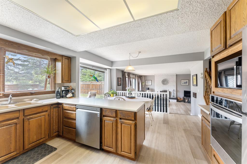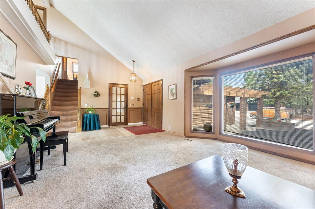 This 4 bedroom 3 bathroom family home located in Canyon Meadows Estates boasts a large lot with a sunny South facing backyard, perfect for enjoying the outdoors. You are greeted by large vaulted ceiling that opens to your family room that is a great space for relaxing with family and friends. walk though to your formal dining room step off your kitchen. The bright kitchen is open to the breakfast nook and living room, making it perfect for entertaining. Enjoy the sounds and ambience of your wood burning fire while cozying up to your favorite show. The double attached garage provides convenient parking, and the unfinished basement offers potential for additional living space. The primary ensuite with loft attached is a spectacular feature that adds to the overall appeal of the home. The location is ideal, with a short walk to Fish Creek Park and Canyon Meadows Golf Course, as well as many other great amenities. Make this space your own and call Canyon Meadows home today! (id:22211)