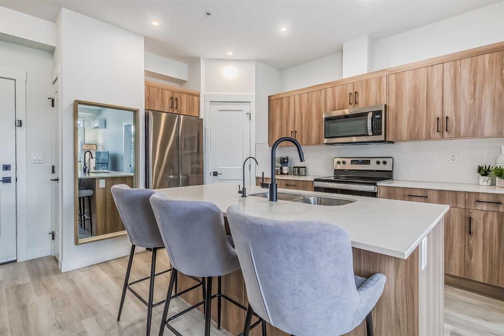 Welcome to this stunning 2 BEDROOM CONDO UNIT in the beautiful & bustling community of Seton! Open floorplan with a perfectly designed & efficient use of space. Open concept kitchen to living room & dining areas which offers a bright space for entertaining. The kitchen boasts updated stainless steel appliances, gleaming granite countertops, rich shaker style cabinets and a large pantry/storage area. Spacious living room with large windows and a door to your private covered balcony. 2 large bedrooms including the primary bedroom with 4 pc ensuite. This particular unit has an additional 4 piece bathroom with a soaker tub & shower. One titled underground parking stall is included with the purchase of this unit. Close proximity to parks, shopping, and easy access to Deerfoot Trail & Stoney Trail. Close to all amenities including South Health Campus and restaurants. Enjoy all the perks of low maintenance urban living and don’t miss out on this opportunity to own a pretty much beautiful & brand new 2 bedroom, 2 bathroom unit in the friendly community of Seton! (id:22211)