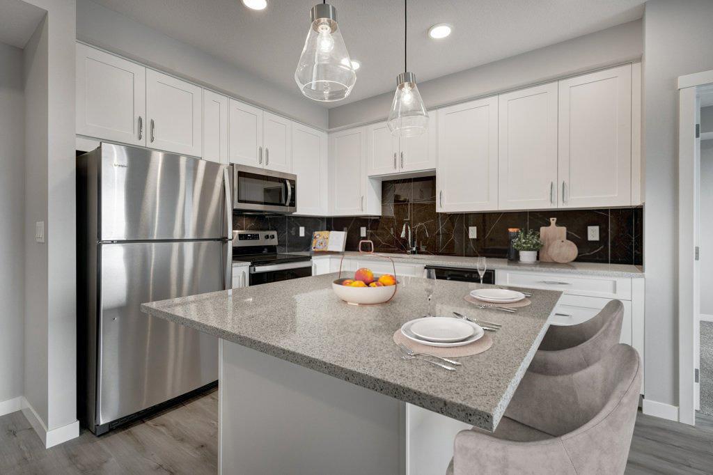 This brand new 2 bed, 2 3-piece bathrooms condo is located in the heart of Shawnee Slopes. With 780 sqft of living space, it is the perfect place to call home. The condo offers an open concept design with luxury vinyl planking throughout and a beautiful black and white kitchen complete with a stainless-steel appliance package. It also boasts an in-unit laundry and plenty of room for entertaining. This condo overlooks the future commercial plaza and is steps away from the breathtaking Fish Creek Park. You're also just minutes away from the transit and LRT line taking you into downtown. The condo also comes with a titled underground parking stall, titled storage unit, and bike storage, making life a breeze. This is an established neighborhood with many schools nearby, it's the perfect spot for families. *Be sure to check out the virtual tour!* (id:22211)