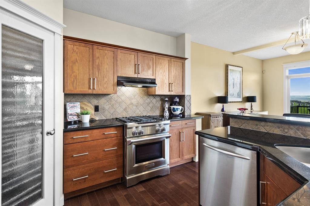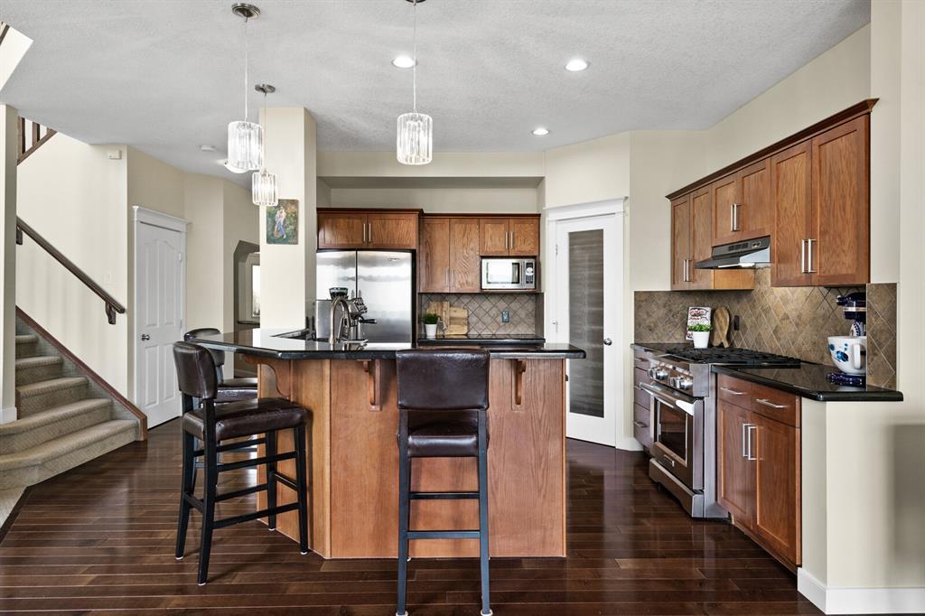 Welcome to this amazing family home in the vibrant community of Crestmont. Nestled on one of the most desirable lots backing onto walking paths, park and green-space, this house brings together the comfort of indoors and the freedom of outdoor living, making it a fantastic choice for families with children.As you walk in, there's a formal dining room but this versatile space would also make a wonderful home office. As you move towards the back, the house opens up into a spacious family room. The room's two-storey vaulted ceiling adds to its charm, while the fireplace offers warmth. The big, beautiful floor-to-ceiling windows bring in plenty of natural light and showcase the lush green park out back.Next, you’ll find a fully equipped kitchen. Dark oak cabinets, granite counters, a multitiered breakfast bar, and professional-grade Kitchen Aid stainless steel appliances (including a newer gas stove) make it a dream space for home cooks. The dining nook is just right for family meals, and it opens onto a deck with views of the landscaped backyard and the serene greenspace.The walk-through pantry connects to a handy laundry area within a mudroom. Upstairs, the landing gives you a bird's eye view of the family room. This floor has three bedrooms, including the main suite that offers stunning views, a walk-in closet, and an ensuite bathroom with dual sinks, a soaker tub, and a separate shower.Downstairs, the walkout basement is ready for you to make it your own, and it opens out onto a beautifully tiered backyard. Enjoy the patio and firepit, surrounded by shrubs and trees. A gate leads you to pathways and the park, complete with a playground, basketball hoop, and picnic area.The house is located in Crestmont, a neighborhood known for being family-friendly. There's a community center with a playground and splash pool water park. The new Farmers Market, climbing center, COP and Winsport complex are all a short drive away. Plus, it’s easy to get to Stoney Trail, do wntown, or head west to the mountains. This is a place where comfortable living and outdoor fun meet. Welcome to your new home! (id:22211)
