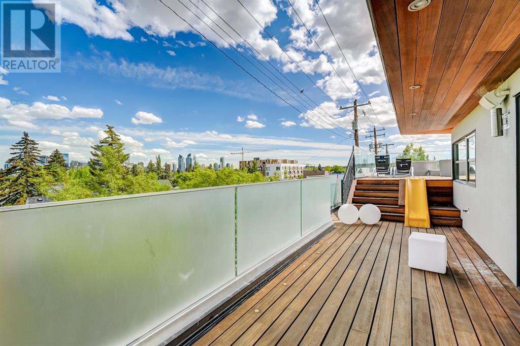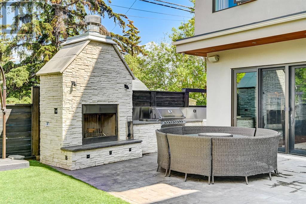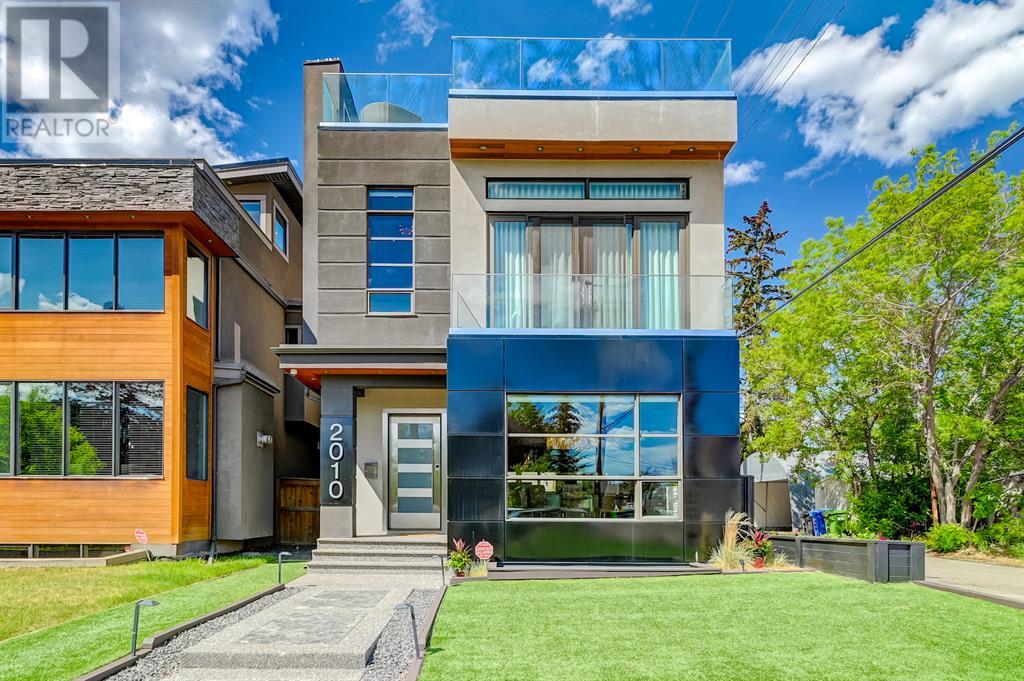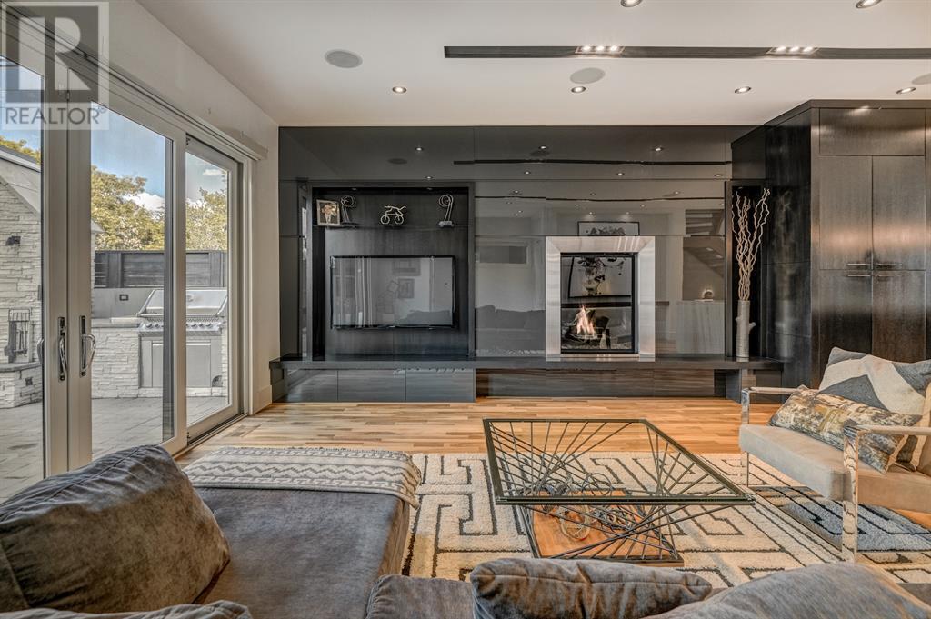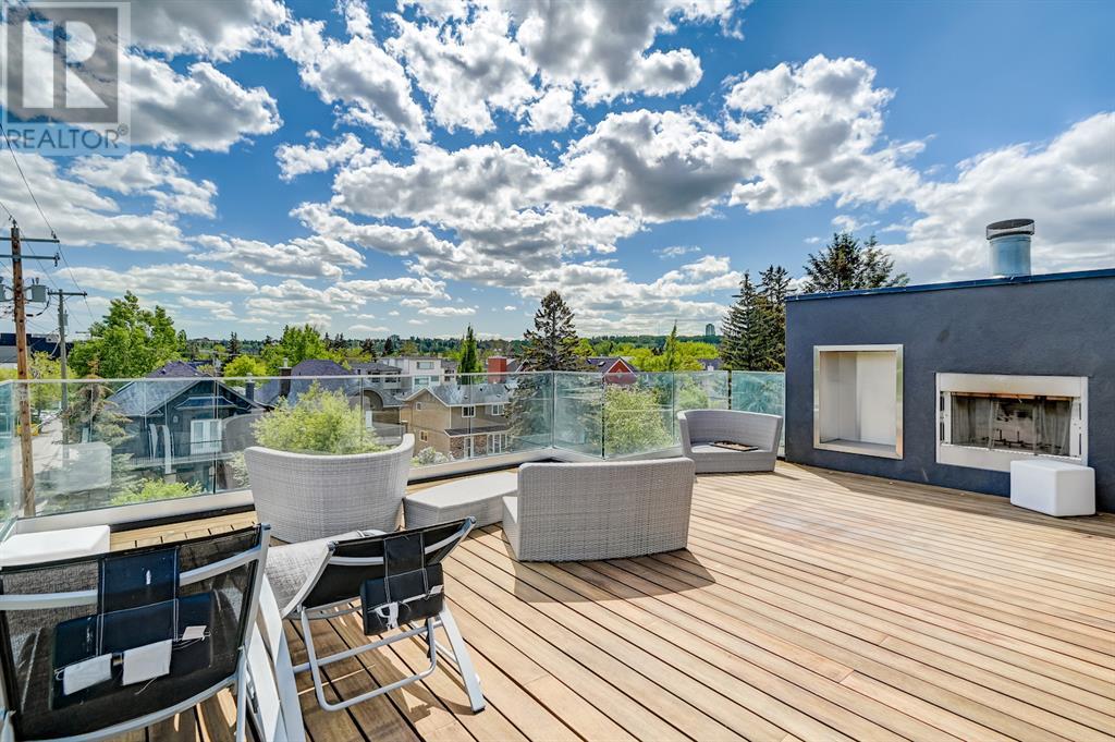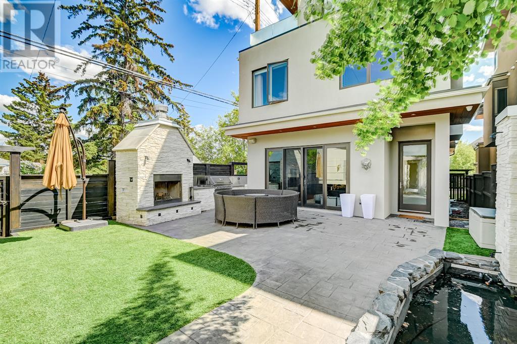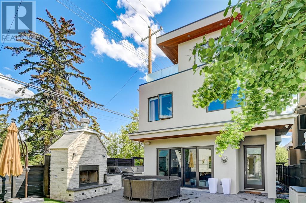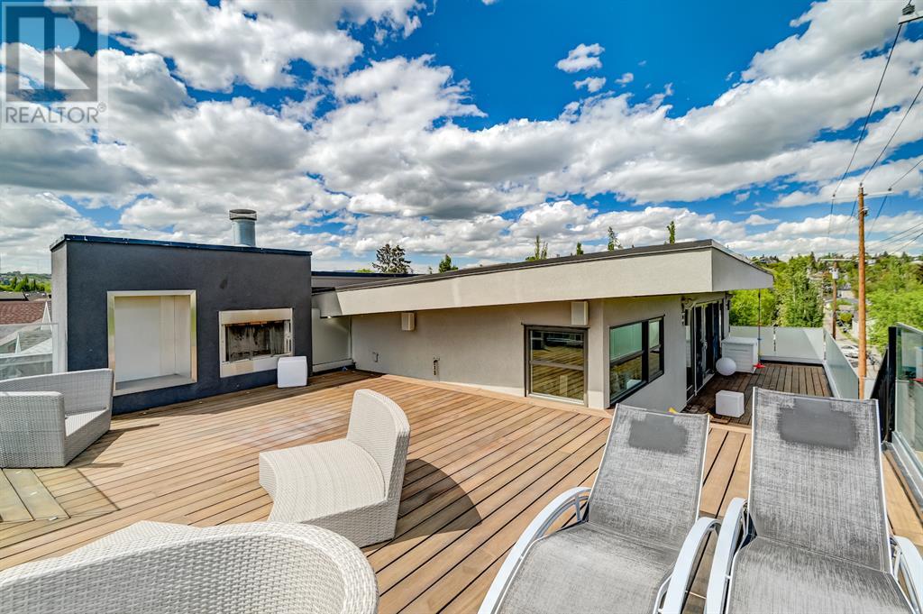 A tech lovers dream home! Showcasing over 4,370 sq ft of living space, this modern custom build by Urban Image Fine Homes presents this state of the art smart home with an Elan System that powers the homes lights, alarm/cameras, media, heating, fireplaces, and blinds. Inside you'll find soaring ceilings, heated tile flooring throughout, on site finished walnut floors, and an abundance of natural light. Centrally located and prime for entertaining is a dream kitchen with quartzite sone counters, ample cupboard space, high-end appliances including SubZero refrigerator, two Miele dishwashers, and Wolf Stove with double ovens, and an expansive 18' eat-up island. Flanking each side is the dining room with a concrete focal wall with gas fireplace and the living room with custom storage, media centre, and a second large gas fireplace. Glass rails and open riser stairs lead up to the second level where you are greeted with a stunning Swarovski Crystal light-up feature wall, laundry room, full bath and three generous bedrooms. The master bedroom is a sophisticated retreat with a phenomenal walk-in closet boasting motorized top cabinetry. A 7pc luxurious ensuite will take your breath away with a deep soaker tub that fills from the ceiling, his/her sinks, and an oversized glass enclosed steam shower with dual rainfall shower heads and body sprays. Venturing up to the third level loft you'll be in awe of all the skylights, bright open family room and wet bar with a custom wine bottle rack. Access the multi-tiered rooftop deck where you can unwind with a glass of wine by the wood burning fireplace as your take in the captivating downtown skyline. Fully developed lower with in-floor heat offers a fourth bedroom with cheater 3pc ensuite and a home gym space with mirrored walls. Step down into a sunken media room where you can enjoy family movies on the 3D projector. Your South exposed backyard is a serene oasis with a large patio space where you can entertain friends/family with y our built-in outdoor BBQ, or relax by the wood burning fireplace with a book while you're lulled by the outdoor feature waterfall. The front and back offer maintenance-free turf and raised garden beds. This one of a kind home was spared no expense and is located close to the trendy shops/eating of 19th street and trendy Kensington, and just a few minutes to the Bow River pathway system. Come see how exquisite this house truly is. (id:22211)