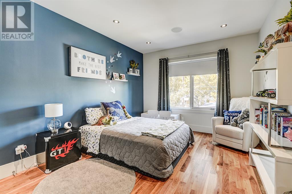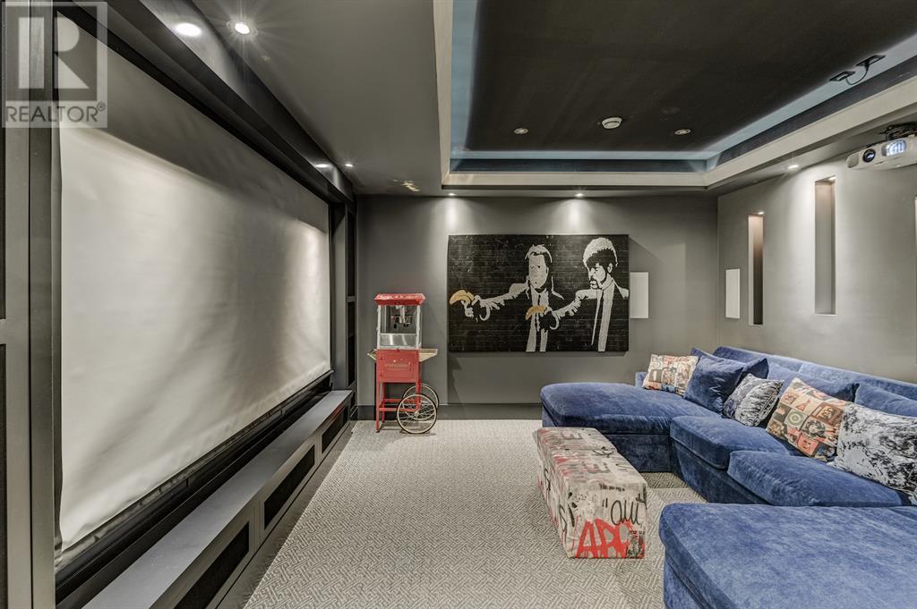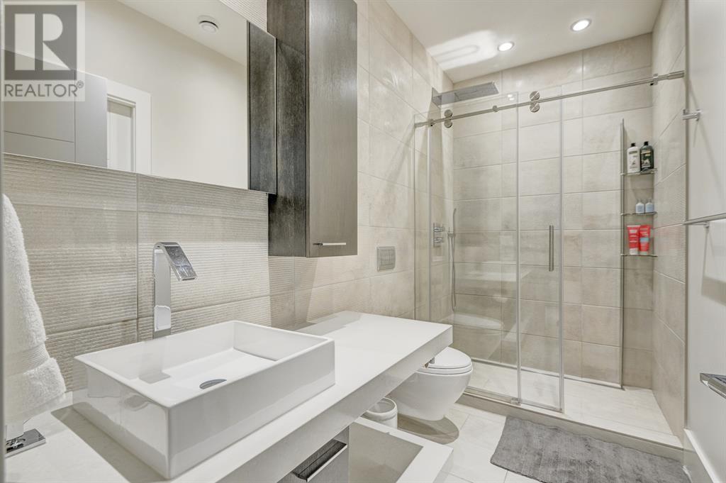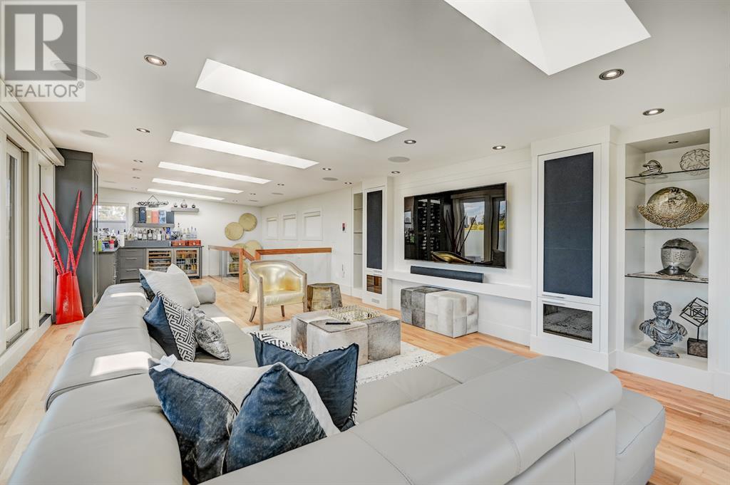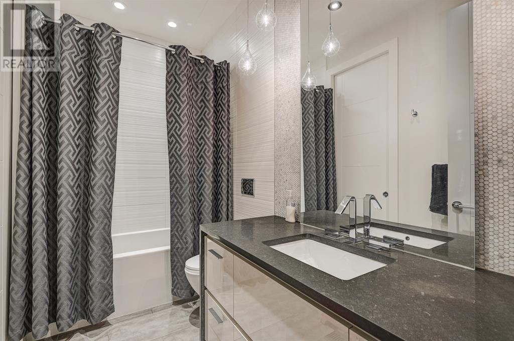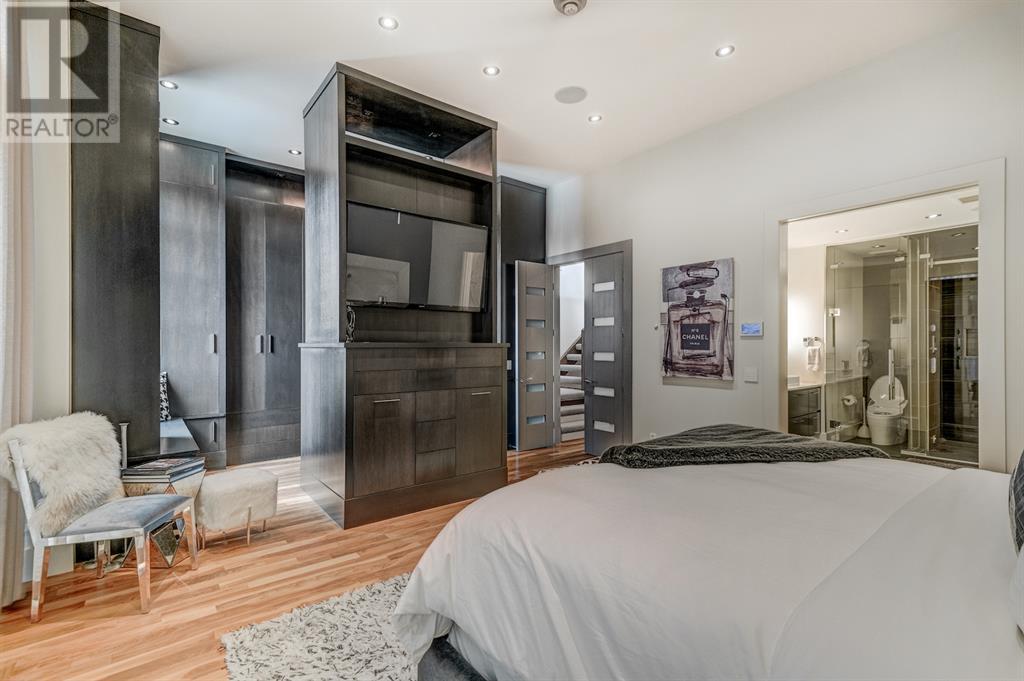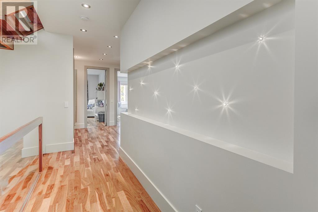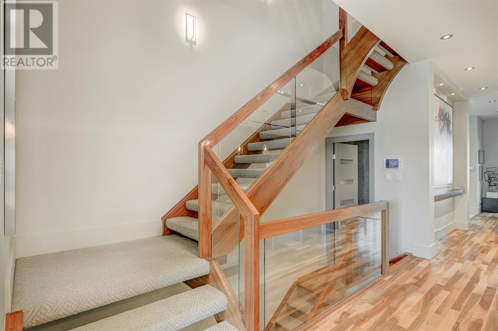 A tech lovers dream home! Showcasing over 4,370 sq ft of living space, this modern custom build by Urban Image Fine Homes presents this state of the art smart home with an Elan System that powers the homes lights, alarm/cameras, media, heating, fireplaces, and blinds. Inside you'll find soaring ceilings, heated tile flooring throughout, on site finished walnut floors, and an abundance of natural light. Centrally located and prime for entertaining is a dream kitchen with quartzite sone counters, ample cupboard space, high-end appliances including SubZero refrigerator, two Miele dishwashers, and Wolf Stove with double ovens, and an expansive 18' eat-up island. Flanking each side is the dining room with a concrete focal wall with gas fireplace and the living room with custom storage, media centre, and a second large gas fireplace. Glass rails and open riser stairs lead up to the second level where you are greeted with a stunning Swarovski Crystal light-up feature wall, laundry room, full bath and three generous bedrooms. The master bedroom is a sophisticated retreat with a phenomenal walk-in closet boasting motorized top cabinetry. A 7pc luxurious ensuite will take your breath away with a deep soaker tub that fills from the ceiling, his/her sinks, and an oversized glass enclosed steam shower with dual rainfall shower heads and body sprays. Venturing up to the third level loft you'll be in awe of all the skylights, bright open family room and wet bar with a custom wine bottle rack. Access the multi-tiered rooftop deck where you can unwind with a glass of wine by the wood burning fireplace as your take in the captivating downtown skyline. Fully developed lower with in-floor heat offers a fourth bedroom with cheater 3pc ensuite and a home gym space with mirrored walls. Step down into a sunken media room where you can enjoy family movies on the 3D projector. Your South exposed backyard is a serene oasis with a large patio space where you can entertain friends/family with y our built-in outdoor BBQ, or relax by the wood burning fireplace with a book while you're lulled by the outdoor feature waterfall. The front and back offer maintenance-free turf and raised garden beds. This one of a kind home was spared no expense and is located close to the trendy shops/eating of 19th street and trendy Kensington, and just a few minutes to the Bow River pathway system. Come see how exquisite this house truly is. (id:22211)