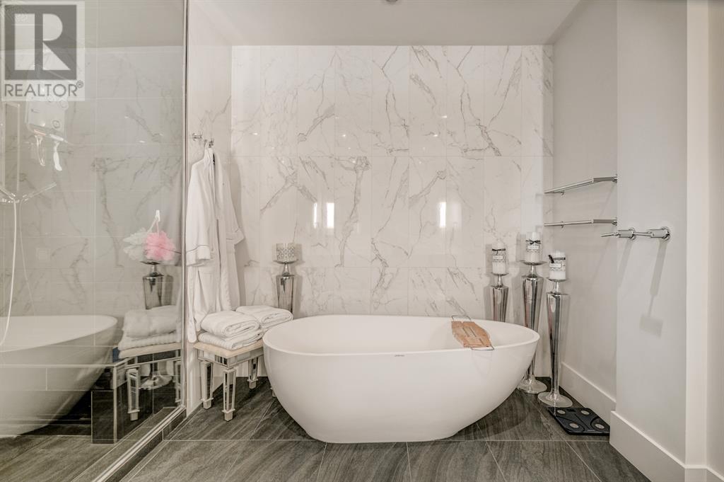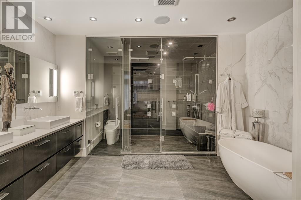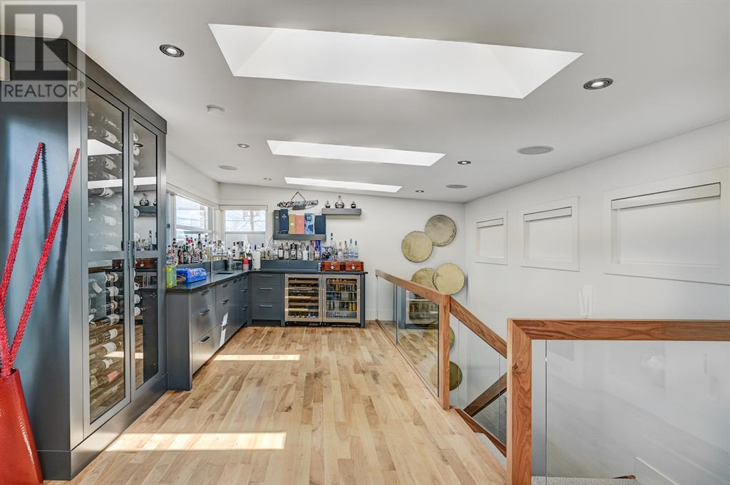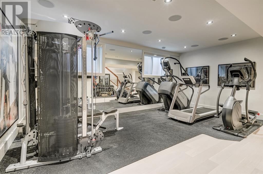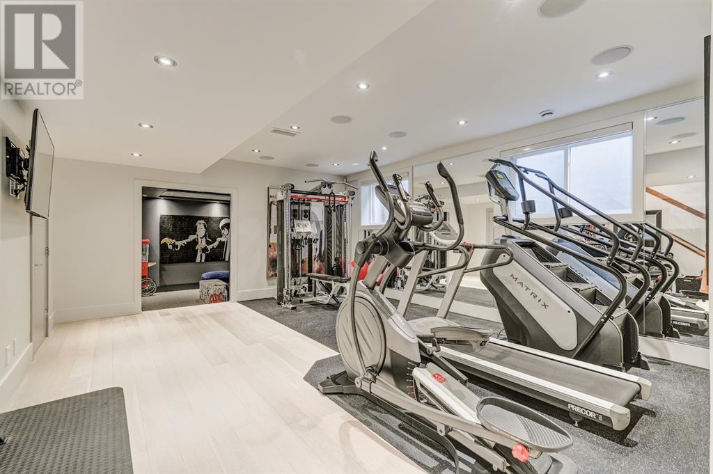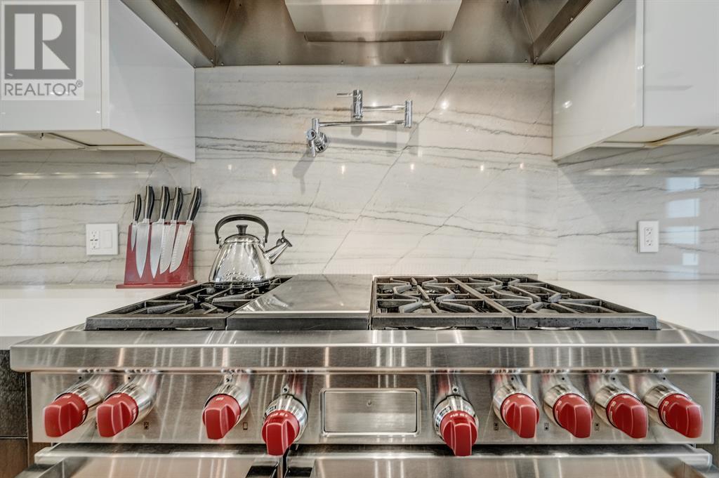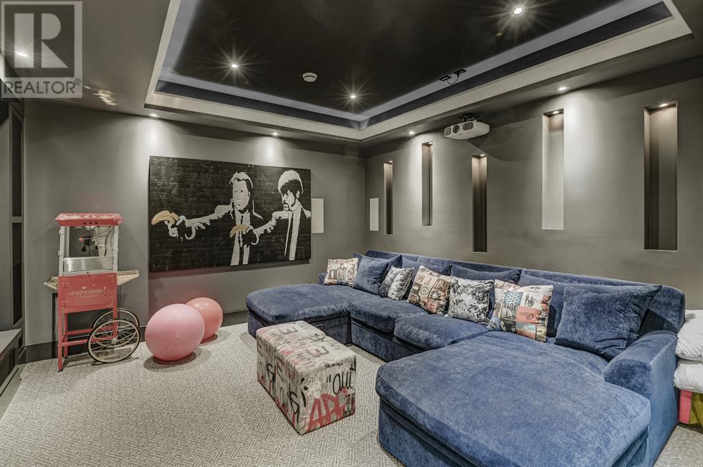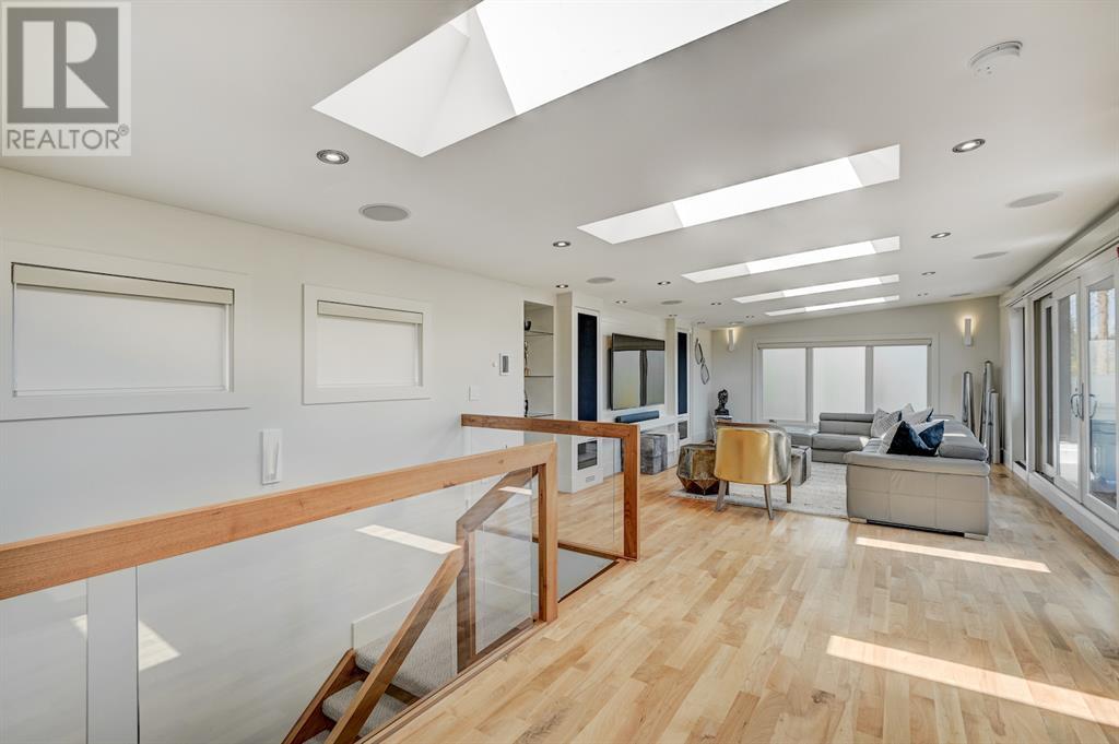 A tech lovers dream home! Showcasing over 4,370 sq ft of living space, this modern custom build by Urban Image Fine Homes presents this state of the art smart home with an Elan System that powers the homes lights, alarm/cameras, media, heating, fireplaces, and blinds. Inside you'll find soaring ceilings, heated tile flooring throughout, on site finished walnut floors, and an abundance of natural light. Centrally located and prime for entertaining is a dream kitchen with quartzite sone counters, ample cupboard space, high-end appliances including SubZero refrigerator, two Miele dishwashers, and Wolf Stove with double ovens, and an expansive 18' eat-up island. Flanking each side is the dining room with a concrete focal wall with gas fireplace and the living room with custom storage, media centre, and a second large gas fireplace. Glass rails and open riser stairs lead up to the second level where you are greeted with a stunning Swarovski Crystal light-up feature wall, laundry room, full bath and three generous bedrooms. The master bedroom is a sophisticated retreat with a phenomenal walk-in closet boasting motorized top cabinetry. A 7pc luxurious ensuite will take your breath away with a deep soaker tub that fills from the ceiling, his/her sinks, and an oversized glass enclosed steam shower with dual rainfall shower heads and body sprays. Venturing up to the third level loft you'll be in awe of all the skylights, bright open family room and wet bar with a custom wine bottle rack. Access the multi-tiered rooftop deck where you can unwind with a glass of wine by the wood burning fireplace as your take in the captivating downtown skyline. Fully developed lower with in-floor heat offers a fourth bedroom with cheater 3pc ensuite and a home gym space with mirrored walls. Step down into a sunken media room where you can enjoy family movies on the 3D projector. Your South exposed backyard is a serene oasis with a large patio space where you can entertain friends/family with y our built-in outdoor BBQ, or relax by the wood burning fireplace with a book while you're lulled by the outdoor feature waterfall. The front and back offer maintenance-free turf and raised garden beds. This one of a kind home was spared no expense and is located close to the trendy shops/eating of 19th street and trendy Kensington, and just a few minutes to the Bow River pathway system. Come see how exquisite this house truly is. (id:22211)