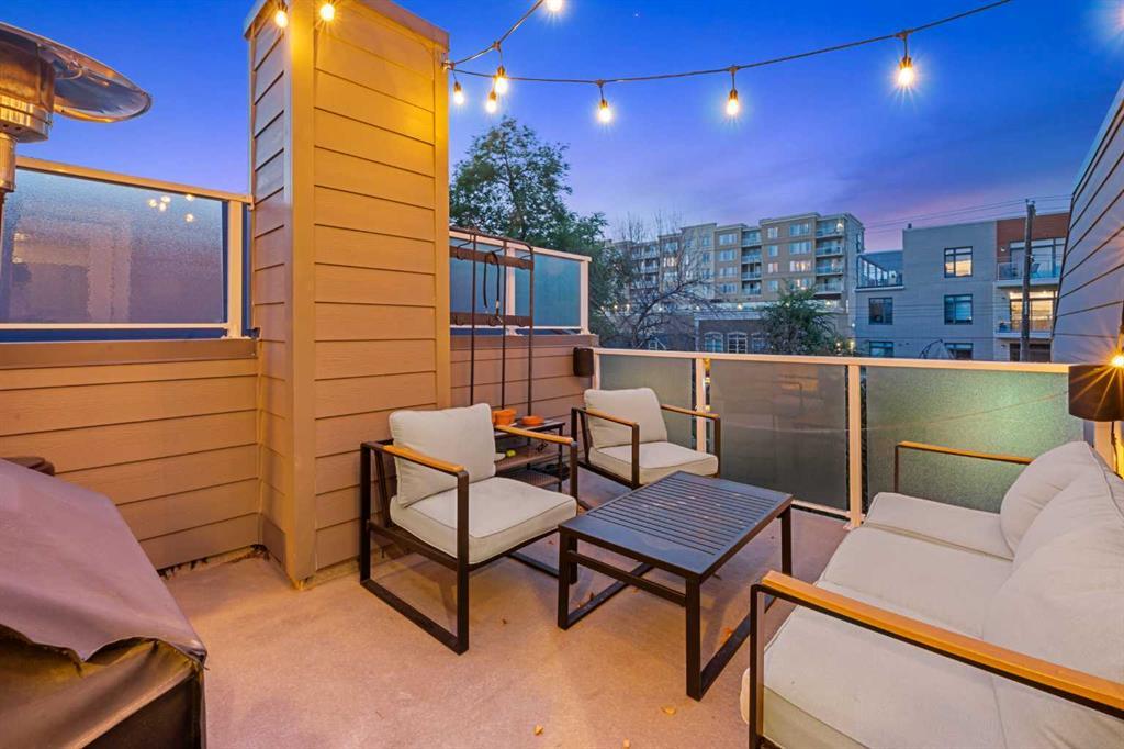 TOP LEVEL MARDA LOOP TOWNHOUSE || 2-BED || 2 FULL BATHS || 1101 SQFT || ROOFTOP PATIO || OFF-STREET PARKING || FIREPLACE || LOTS OF STORAGE || QUICK POSSESSION AVAILABLE|| Make a lifestyle move into this 2-bed/2 full bath townhouse into the heartbeat of Marda Loop! Top level, corner unit – nobody living above you. 1100+ sqft above grade plus an unfinished basement for extra storage and future development. Quick possession available – move in before winter hits! Massive primary bedroom on 1st level with ensuite and south facing balcony. Lots of natural light and charm on the top level – an entertainer’s dream with dining area, living room, wood-burning fireplace with gas assist, kitchen, 2nd bedroom (or great office setup), 4-pc bath, and two large patios with different exposures – SW balcony for BBQ and watching the game, and the NW rooftop patio which is a great setup for outdoor movie night!! Assigned stall for off-street parking. Condo fees include heat/sewer/water, very rare for a townhouse. Unbeatable value in an incredible location, walk to explore everything Marda Loop has to offer. 3D Tour available in the links! (id:22211)