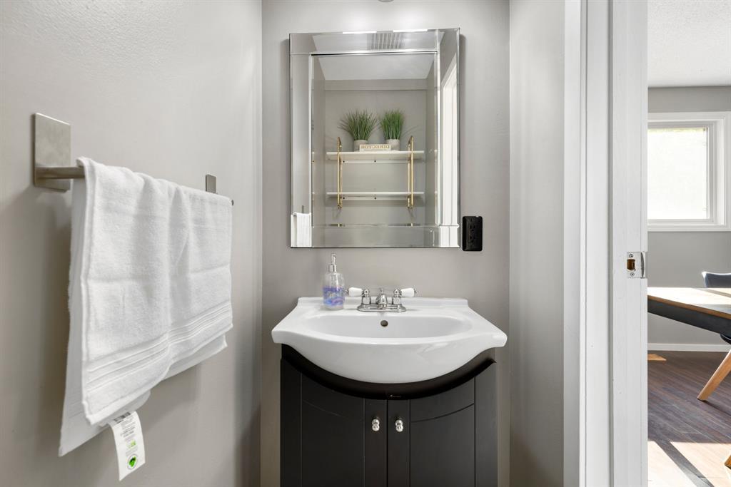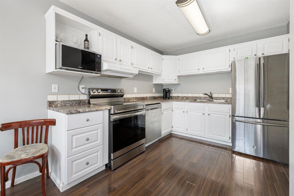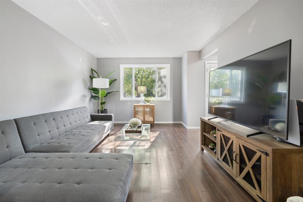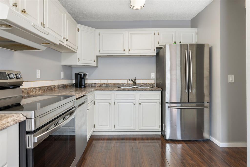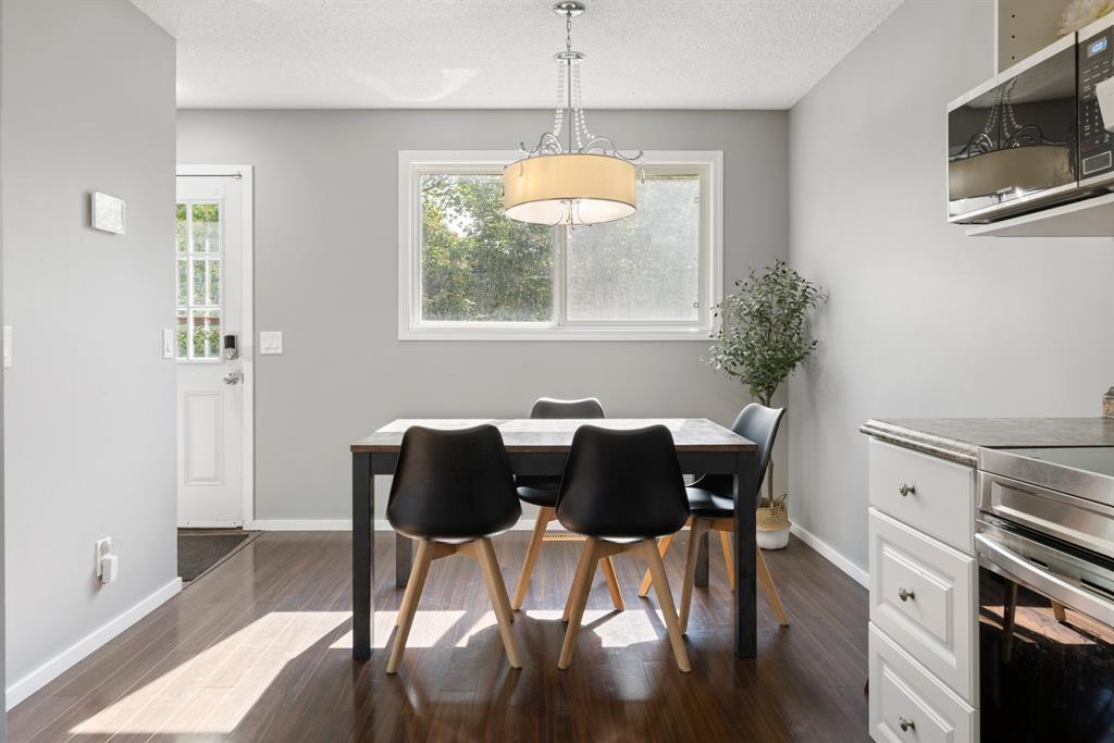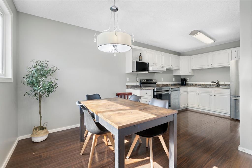 Welcome to this stylish townhome located in desirable Lynnview Ridge. Nestled close to schools and ridge walking paths, this charming 2-storey townhome offers the perfect blend of convenience and natural beauty right at your doorstep.As you step inside, you'll immediately notice the practical front closet, providing a convenient space for storing coats and shoes. To your right, a spacious living room awaits, adorned with warm laminate floors that exude a cozy ambiance. The oversized front window floods the room with natural light, creating a welcoming and inviting atmosphere.On the left side of the front door, you'll discover the heart of the home - the kitchen and dining areas. The kitchen boasts classic white cabinets and ample storage space, complemented by newer laminate countertops. The recent addition of new stainless steel appliances enhances both functionality and style. Above the dining room table, a new light fixture adds a touch of modern elegance. Another good-sized window brightens the space, making family meals and entertaining a joyous affair. Additionally, a conveniently tucked-away 2-piece bathroom adds practicality to the main floor.The home's windows have been thoughtfully updated within the last 10 years, ensuring both energy efficiency and aesthetic appeal. Moving upstairs, you'll find three inviting bedrooms. The large primary bedroom features a Pax IKEA closet, replacing the original sliding door closet. A new light fixture adds a stylish touch to the room, creating a serene retreat to unwind in.The two additional bedrooms offer ample space for relaxation or study. At the end of the hall, a tastefully renovated 4-piece bathroom awaits, showcasing new tile, a new vanity, and a new light fixture, infusing a touch of modern.The fully finished basement is a versatile space, featuring a large recreational room that offers endless possibilities. Whether you envision a cozy media room, a children's play area, or something else entirely, thi s area will cater to your desires. The mechanical room houses the laundry facilities and provides ample storage space, ensuring a clutter-free living environment.Location is key, and this townhome is ideally situated just around the corner from Beaver Dam Flats. With easy access to Glenmore and Deerfoot Trails, you'll enjoy swift commuting and convenient travel to any destination.Don't miss out on the opportunity to own this exceptional townhome in Lynnview Ridge. With its unbeatable location, delightful features, and endless potential for customization, it stands ready to embrace you in a vibrant and comfortable lifestyle. Schedule a viewing today! (id:22211)