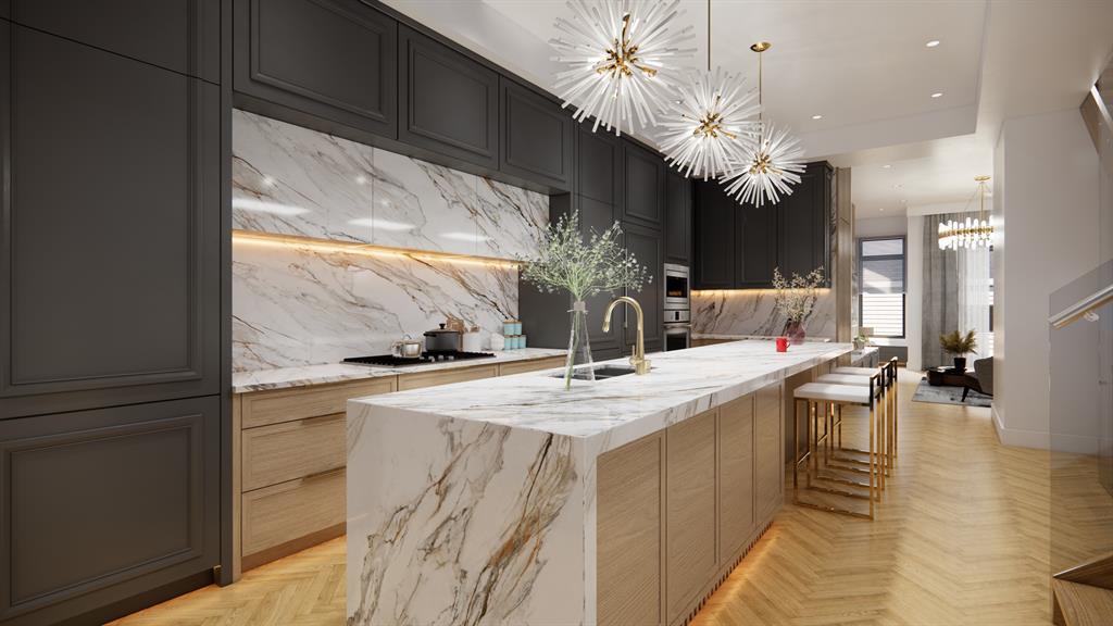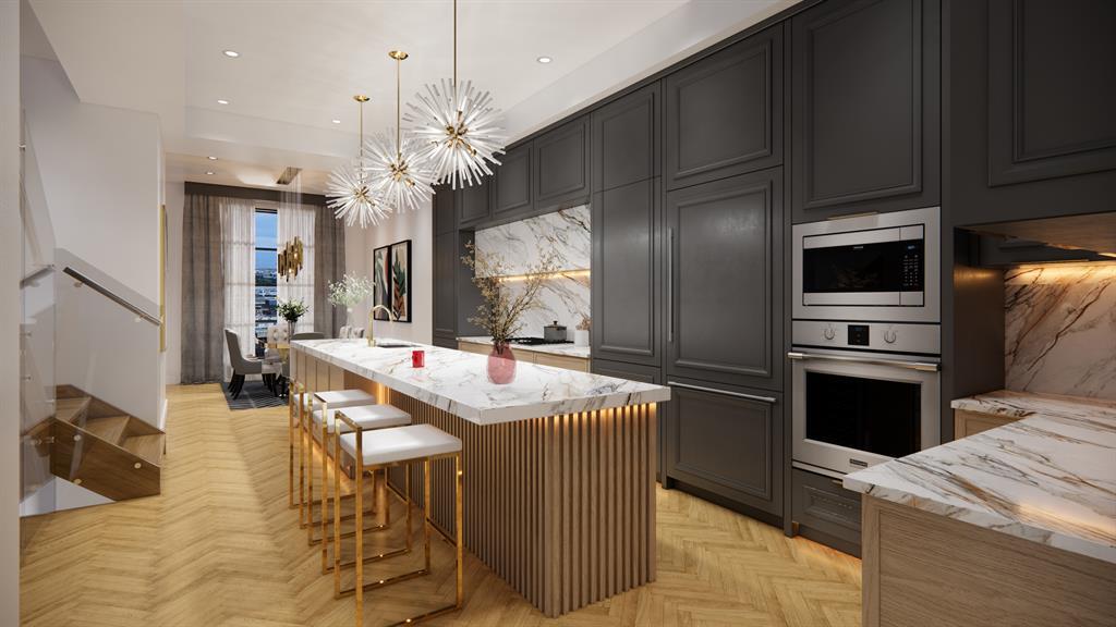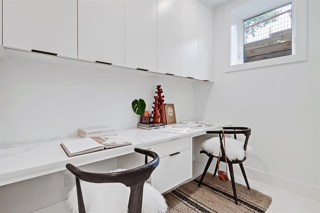 OWN A PIECE OF MODERN HISTORY, DON’T MISS THIS RARE OPPORTUNITY! An incredible, ultra-luxurious modern old-world style detached home with over 2,800 total sq ft, extensive CUSTOM MILLWORK, plus other DESIGNER UPGRADES! And it all starts with the design. Detailed architectural features with arches, steep peaks, and oversized windows the height of the exterior create a stunning curb appeal masterfully crafted by John Trinh & Associates (JTA Design). As the go-to new-home design specialist, JTA Design offers the highest standard in design, providing unparalleled quality, creativity, and ingenuity to your development. Located in sought-after Inglewood, this home is steps to the Bow River and its pathways, the Inglewood Wildlands, and within a walkable distance to trendy shops, restaurants, live music, and breweries. Stylish and functional, discover luxurious finishings on the main floor, starting with soaring 11-ft ceilings and chevron-style wide-plank oak hardwood flooring. The kitchen features custom LED skirt lighting, quartz countertops with matching full-height quartz backsplash, custom cabinetry with soft-close hardware, and a hidden walk-in pantry. The oversized 12-ft island features a waterfall quartz counter with contemporary cedar vertical panel accents with bar seating and a built-in Silhouette beverage fridge. The premium S/S Thermador appliance package includes a gas cooktop, a double built-in wall oven, a smart refrigerator, a built-in drawer microwave, and a dishwasher. The elegant dining room sits under an ultra-modern chandelier while the living room overlooks the backyard and features an impressive media wall with an inset gas fireplace with ceiling-height quartz surround and a cedar wood panel feature wall and hearth. A wood-wrapped staircase leads to more chevron hardwood flooring under 9-ft ceilings, a fully equipped laundry room with tile backsplash, and 2 secondary bedrooms with private ensuites. The primary suite features a soaring vaulted ceilin g, a trendy hanging light, dual walk-in closets with extensive built-ins, motion-activated lighting, heated ensuite floors, a fully tiled walk-in shower with bench and LED lighting, a floating vanity with dual undermount sinks and quartz counter, and a freestanding soaker tub with tile surround. 9-ft ceilings in the fully developed basement create a spacious rec area with a built-in media centre, a pocket office with a built-in desk for two, and a home gym with roughed-in ceiling speakers. Other upgrades include smart home lighting, R/I for a swim spa, a rear deck, low-maintenance landscaping and windows, and metal-clad doors with glass. It’s easy to see why the community of Inglewood is continually voted as Calgary’s Best Neighbourhood and tops the list of Calgary’s Coolest and Most Liveable Neighbourhoods. No matter where in the community you are, a locally-owned boutique or award-winning restaurant is a short walk away. Not to mention the grande river pathway and endless summer festivities to enjoy. (id:22211)