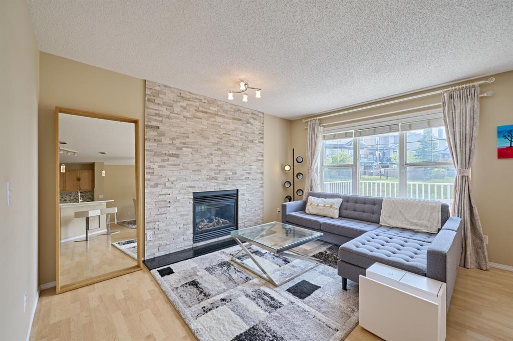 Located within the popular community of Evanston, this fabulous fully developed two story walkout home can be found at the end of a cul-de-sac on a lot that borders & backs onto a gorgeous green space.The modern open concept main floor offers a large office, laundry and walk through pantry to the kitchen. The kitchen has been equipped with stainless steel appliances, quartz countertops, and maple cabinetries. A newly resurfaced fireplace is located in the living room, and the large windows in the living room and dining area bring plenty of sunlight with a full view of the green space. The slider patio door opens onto a huge vinyl deck that can comfortably seat a large crowd. Upstairs features newer carpet, a spacious bonus room, two additional bedrooms, a full bathroom, and a master suite with open unobstructed views. The walk out basement has been beautifully developed with a 4-piece bathroom, a wine room, a wet bar and a bright recreation room with a second fireplace. The southeast facing backyard is professionally landscaped and is just steps away from a walking/biking path. The house is centrally located within walking distance to the Creekside Commercial Center, public transit and an elementary school. A gorgeous home like this is a rare find, don't miss this opportunity to make it yours. Call and book your showings today! (id:22211)