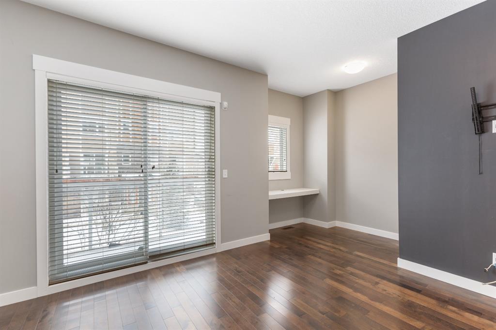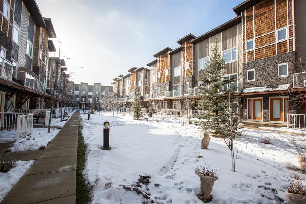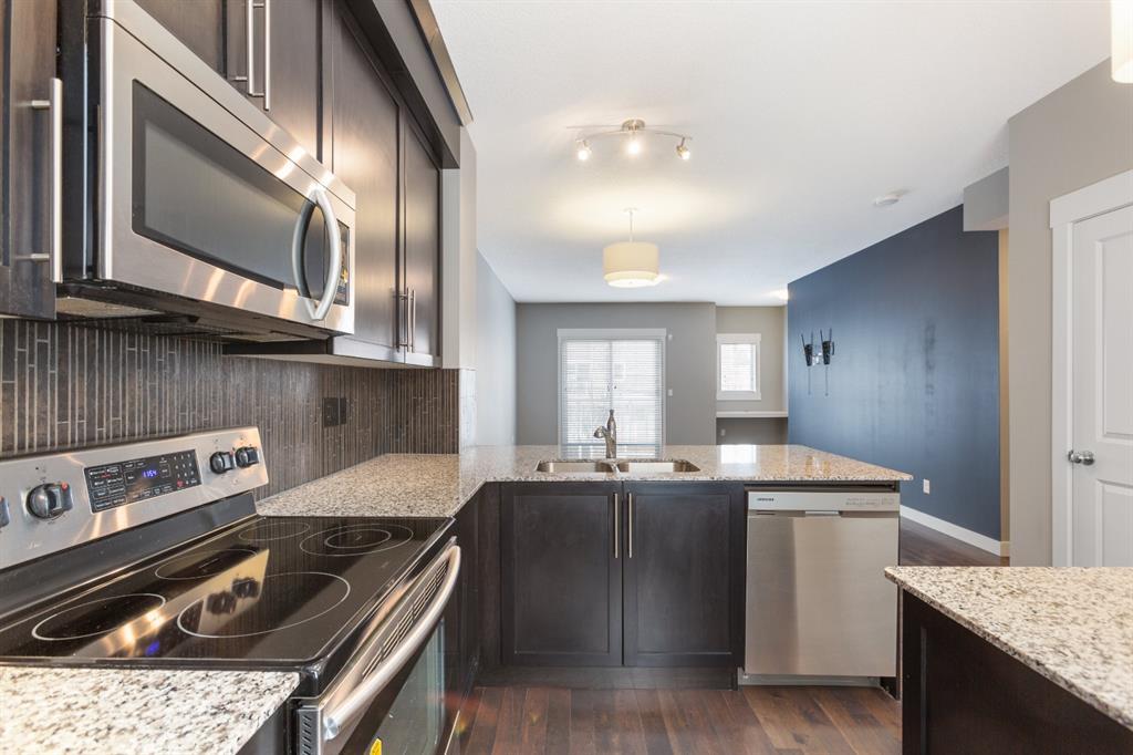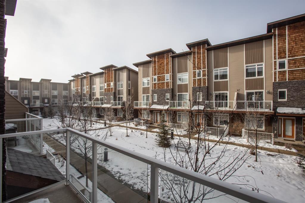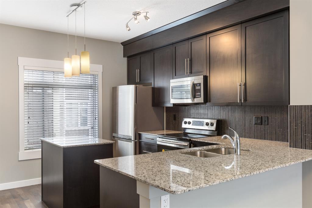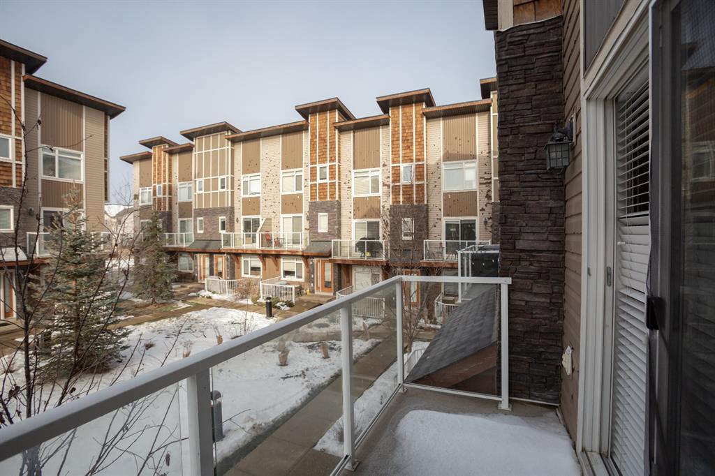 Welcome to Evolve - townhouse living at its finest! This 3Br & Den, 2.5 Bath townhome is featuring modern, open concept interior design and décor. Working from home? -The entrance level Den is perfect for your home office! Create your favourite dishes in the generous kitchen with maple cabinetry, granite countertops, island and s/s appliances. Entertain with distancing or virtually in the open floor plan, and extend your living space out onto the large West facing open air balcony with sliding glass doors overlooking the beautifully landscaped yard. Built in computer desk on the main floor for your home workstation, or to keep an eye on your kids during their homework / online classes. Quality finishes. Smart Home Wiring. Hardwood flooring on main. Bedroom level laundry. Double Attached Garage. Close to all amenities, schools and shopping, easy highway access to airport and Cross Iron Mills. (id:22211)