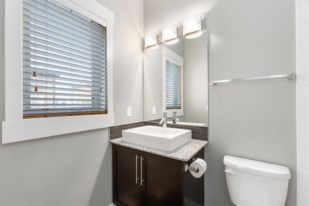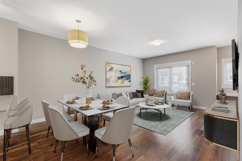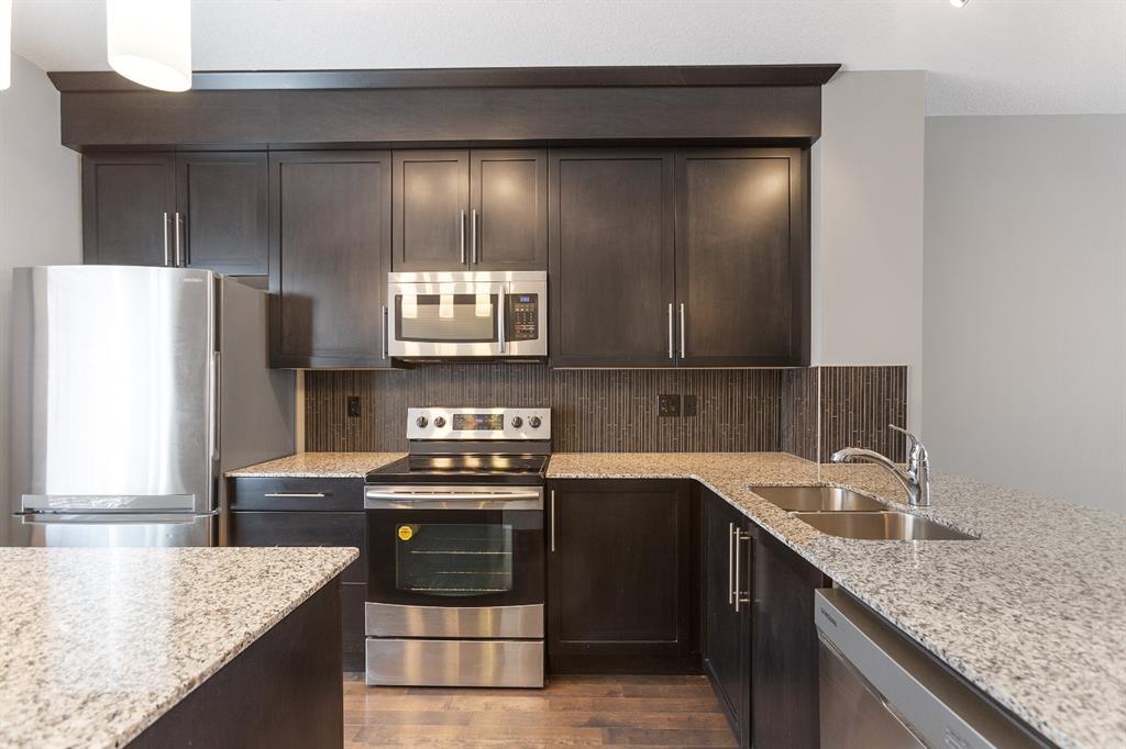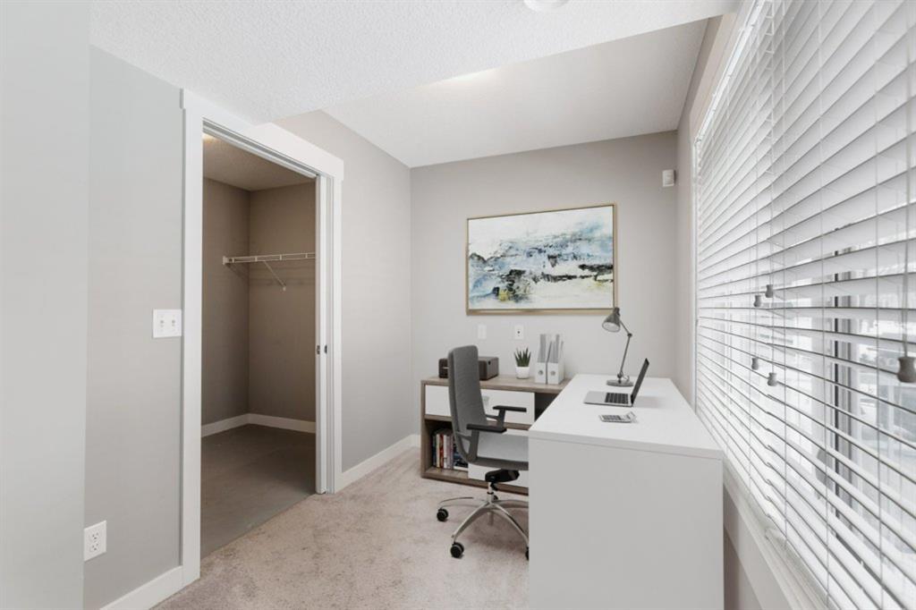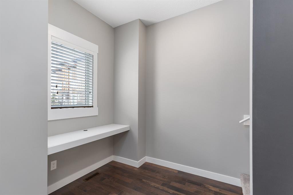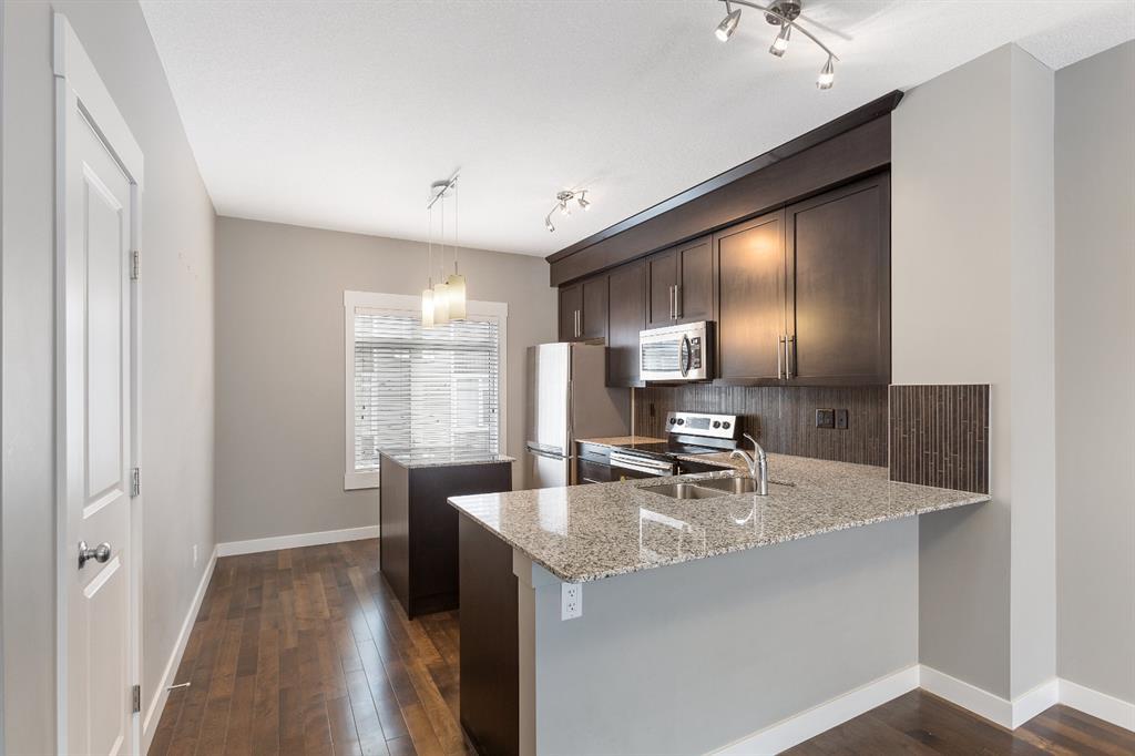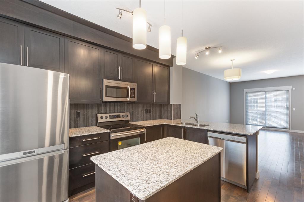 Welcome to Evolve - townhouse living at its finest! This 3Br & Den, 2.5 Bath townhome is featuring modern, open concept interior design and décor. Working from home? -The entrance level Den is perfect for your home office! Create your favourite dishes in the generous kitchen with maple cabinetry, granite countertops, island and s/s appliances. Entertain with distancing or virtually in the open floor plan, and extend your living space out onto the large West facing open air balcony with sliding glass doors overlooking the beautifully landscaped yard. Built in computer desk on the main floor for your home workstation, or to keep an eye on your kids during their homework / online classes. Quality finishes. Smart Home Wiring. Hardwood flooring on main. Bedroom level laundry. Double Attached Garage. Close to all amenities, schools and shopping, easy highway access to airport and Cross Iron Mills. (id:22211)