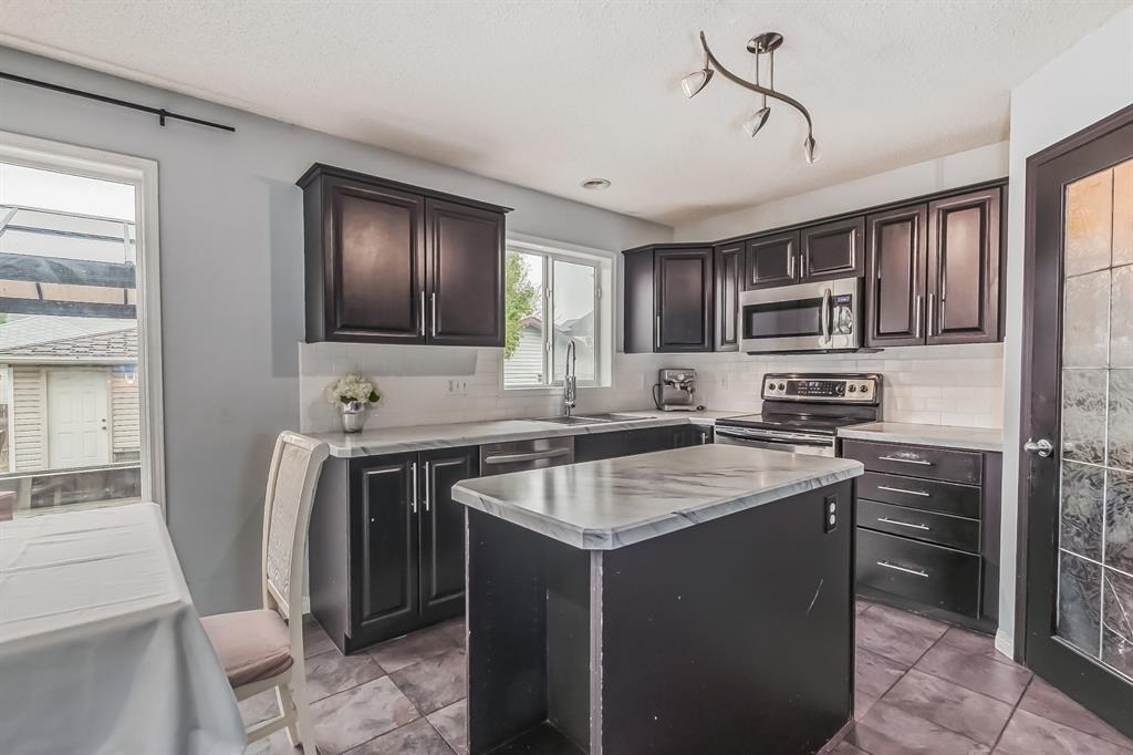 Outstanding home in the Heart of McKenzie Towne.Dark Stain Kitchen Cabinets accented with Stainless Steel Appliances, Calcutta Counter Tops, corner pantry, Island, Stainless Steel Double Sink, and Tile flooring.Large Dining/eating area and Large window with a view to the yard.Living room with natural quartzite stone feature wall and fireplace surround, wide plank Laminate Hardwood Flooring, and many large windows with a ton of natural light.Large Master Bedroom with Full 4 Pce. En-Suite bathroom and His & Her Closet, also two other good size bedrooms with many Large windows. Basement Developed with Den and entertainment room. Laundry room, and lots of Storage Space.Private Fenced backyard with Large Deck, built-in planter boxes. Heated Double Garage Insulated and Wired. Walk to Schools, (2) Parks, Including a Water Park. Pride of Ownership inside and out. Don't miss out on this opportunity !! (id:22211)