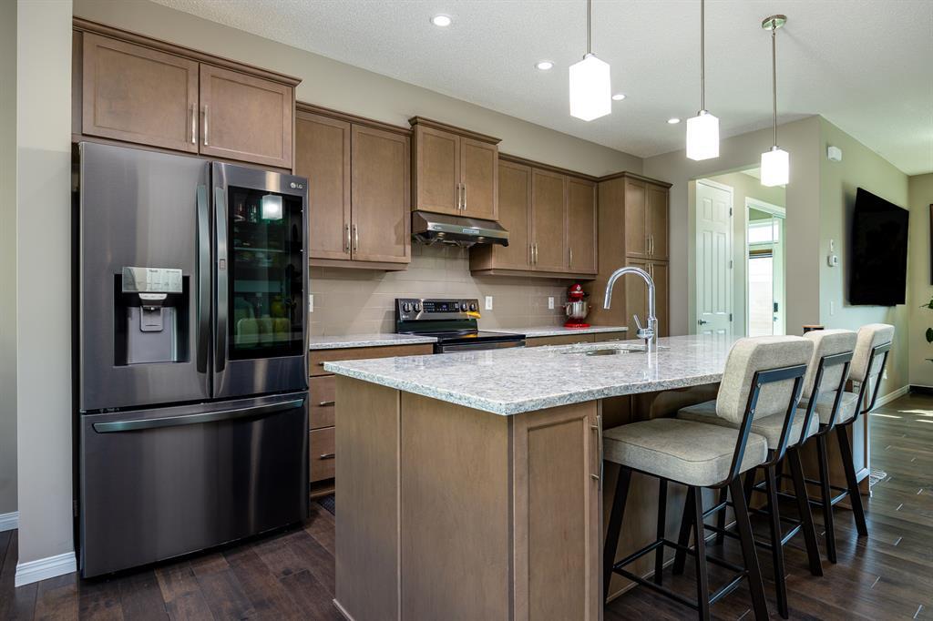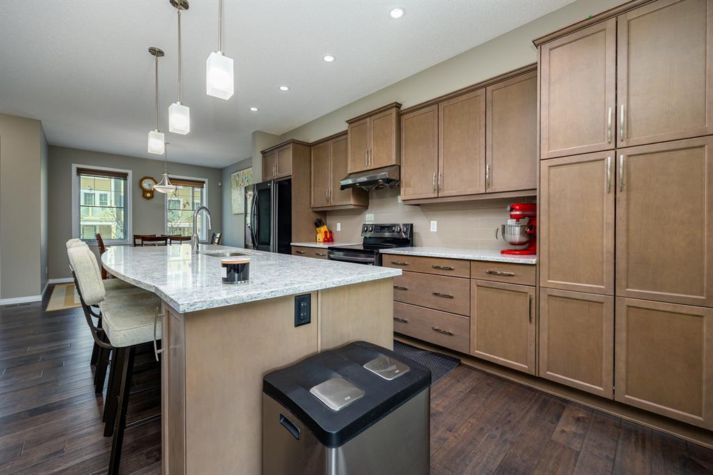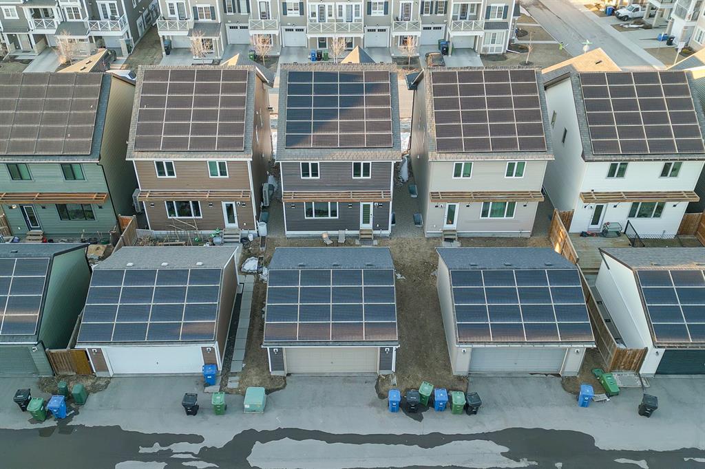 Welcome to this Gorgeous Move in Ready SHOW STOPPER!!! Two-storey Mattamy Homes built with NET-ZERO ENERGY SOLAR PANELS I 3 Large Size Bedrooms I 3.5 Bathrooms I Double Detached Garage with plenty of storage space I Fully Finished Basement I REC ROOM with HOME THEATRE SPACE I DEN/HOME Office I Architectural Measurement 1704 Sq.Ft. Located in the highly SOUGHT-AFTER community of Cityscape. Just 8 min away to the Airport, close to serene walking and biking paths, so convenient to the Cityscape Square, Bus stops, quick access to Metis and Stoney Trail and amenities. This STUNNING Mattamy Home built (Iris A model) is a remarkable Net Zero Home, showcasing the latest in energy efficiency, ECO-FRIENDLY TECHNOLOGY, monthly savings on your Utility Bills and a commitment to healthy living. This Beautiful Dream home features an open floor plan with ABUNDANT OF NATURAL LIGHT, soaring HIGH 9-ft CEILINGS, Elegant engineered hardwood flooring, Custom-made Window Coverings, POT lighting throughout, Space Cooling/Heating system and SOLAR-VOLTAIC PANELS on both the roofs of the HOME and GARAGE, SOUNDPROOF Walls, Upgraded Wider Staircase & 8ft Doors, BUILT- IN PANTRY as well as Double DETACHED GARAGE. At the heart of the main level, the GOURMET KITCHEN boasts an abundance of cabinetry with built-in Led lights, an Oversized KITCHEN ISLAND with seating, gleaming QUARTZ countertops, and a tasteful blend of POT and PENDANT lighting. Upgraded STAINLESS STEEL APPLIANCES. Step inside through the front porch to the main foyer, you'll find a welcoming living room and a vibrant dining room perfect for entertaining guests or enjoying family meals. The MAIN level also features a convenient 2-PIECE HALF BATH and a MUDROOM leading to the BACK YARD. The UPPER level features luxurious PRIMARY BEDROOM with PRIVATE BALCONY to enjoy your morning Coffee with City View, Walk-in closet and a Spa-like 4-piece ENSUITE. Two GENEROUS sized BEDROOMS, another 4-piece bathroom, and a conveniently located LAUND RY ROOM complete this floor. The FULLY DEVELOPED BASEMENT offers a spacious REC/LIVING room, DEN/Home Office with theatre space & Built-In SPEAKERS, a fitness area, WET BAR with Granite Counter-top/Backsplash, and Full 4-piece bathroom, 2 LARGE WINDOWS, Plenty of Storage, Utility Room and ready for future development idea with great potential of a SEPARATE ENTRANCE, space for a 4th bedroom and a family room. So convenient to all the amenities. Don’t miss out on this amazing opportunity to call this your Dream home! (id:22211)