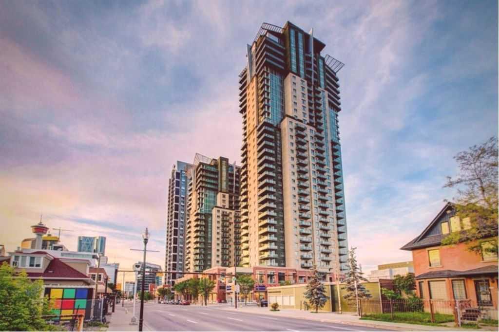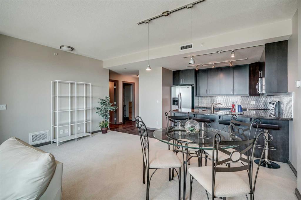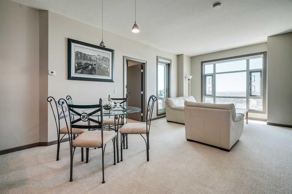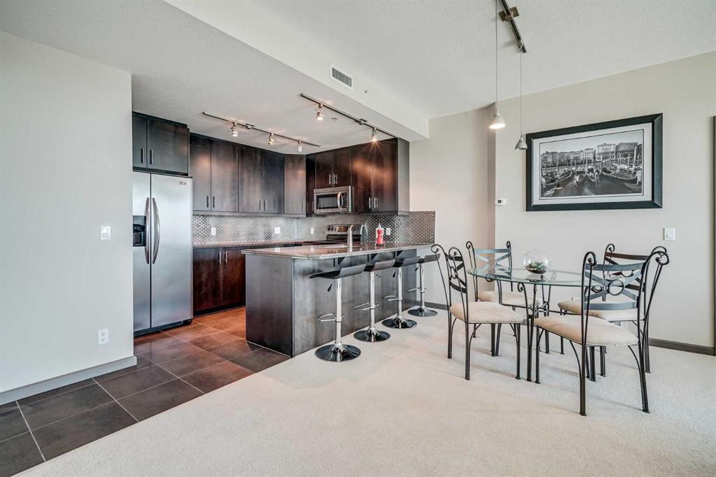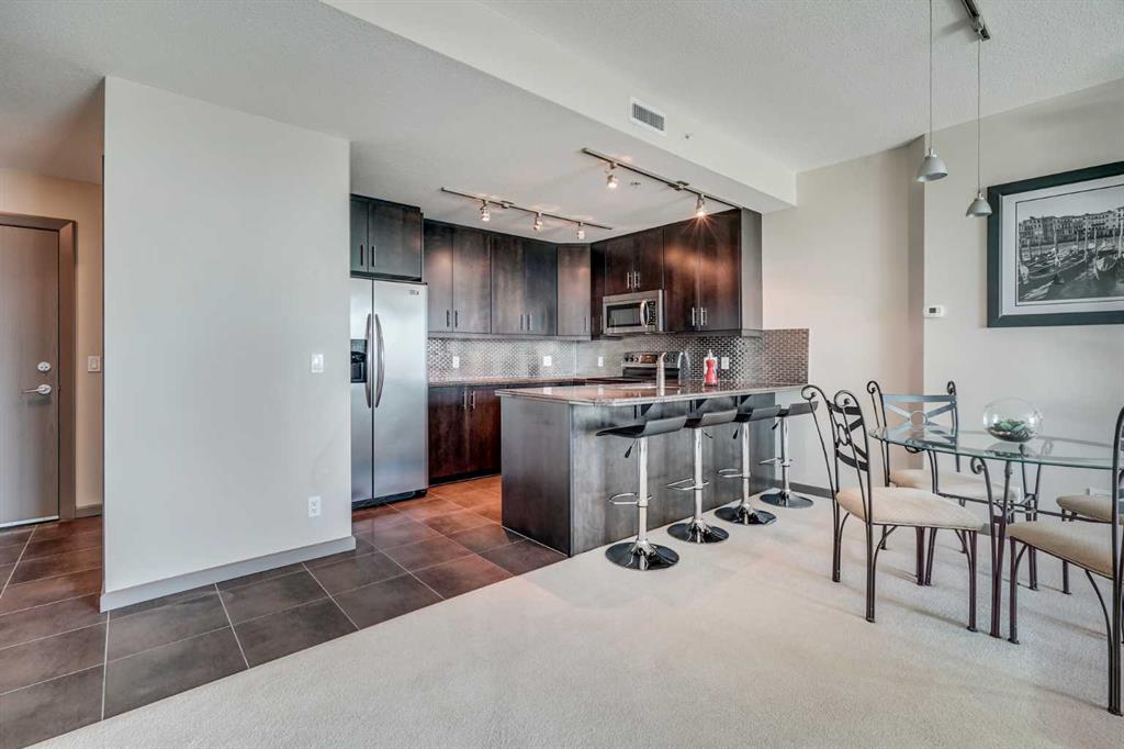 Welcome to your beautiful new home at Vetro. This spacious 25th floor condo is the perfect home for someone moving into the city or looking to buy their first home. The two-bedroom, two-bathroom condo comes with central A/C and heated underground parking. The south facing balcony gives you breathtaking views as far as the mountains, and also makes for an amazing location to watch the fireworks. The large kitchen has a wraparound island with granite countertops which gives you a bit of separation into the dining room. Paired with the living room, this gives you plenty of space to relax or entertain. The sizable primary bedroom includes a walk-in closet which leads to the ensuite bathroom. The second bedroom is big enough to double as a guest bedroom as well as an office. The ideal location of this building is a quick walk to Stephen Avenue, 17th Avenue, Mission, the Bow River and Elbow River. For those who love to spend time outdoors, you are steps away from parks, the pathway system, and a short walk to plenty of restaurants, cafes and shopping nearby. The building also consists of numerous amenities including a hot tub, pool table/games room, recreational room, theatre and fitness centre. The condo would be a great starter home for a first-time home buyer or an incredible investment opportunity for someone looking to add to their investment portfolio. At a price point under 450K and just $432.85/sqft, this is one of the best values in the building. (id:22211)