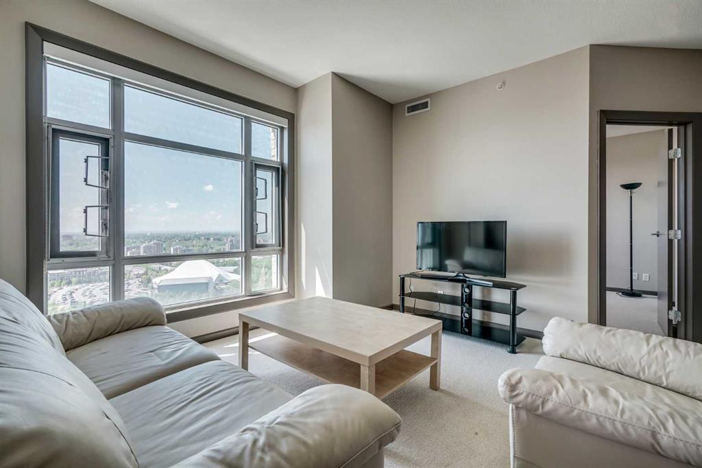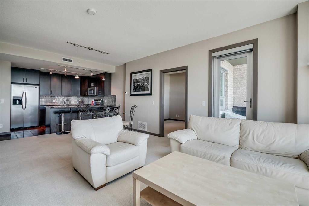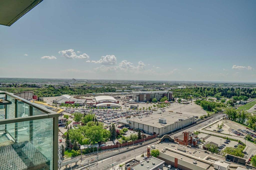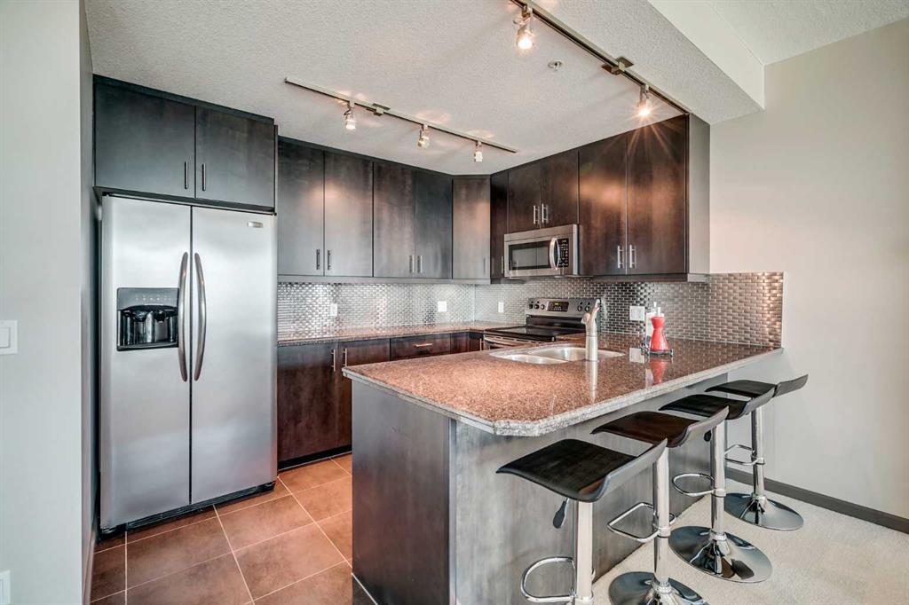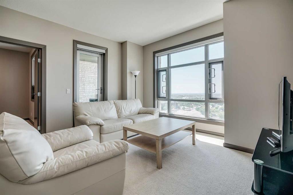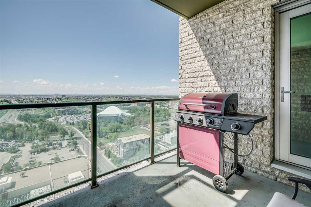 Welcome to your beautiful new home at Vetro. This spacious 25th floor condo is the perfect home for someone moving into the city or looking to buy their first home. The two-bedroom, two-bathroom condo comes with central A/C and heated underground parking. The south facing balcony gives you breathtaking views as far as the mountains, and also makes for an amazing location to watch the fireworks. The large kitchen has a wraparound island with granite countertops which gives you a bit of separation into the dining room. Paired with the living room, this gives you plenty of space to relax or entertain. The sizable primary bedroom includes a walk-in closet which leads to the ensuite bathroom. The second bedroom is big enough to double as a guest bedroom as well as an office. The ideal location of this building is a quick walk to Stephen Avenue, 17th Avenue, Mission, the Bow River and Elbow River. For those who love to spend time outdoors, you are steps away from parks, the pathway system, and a short walk to plenty of restaurants, cafes and shopping nearby. The building also consists of numerous amenities including a hot tub, pool table/games room, recreational room, theatre and fitness centre. The condo would be a great starter home for a first-time home buyer or an incredible investment opportunity for someone looking to add to their investment portfolio. At a price point under 450K and just $432.85/sqft, this is one of the best values in the building. (id:22211)