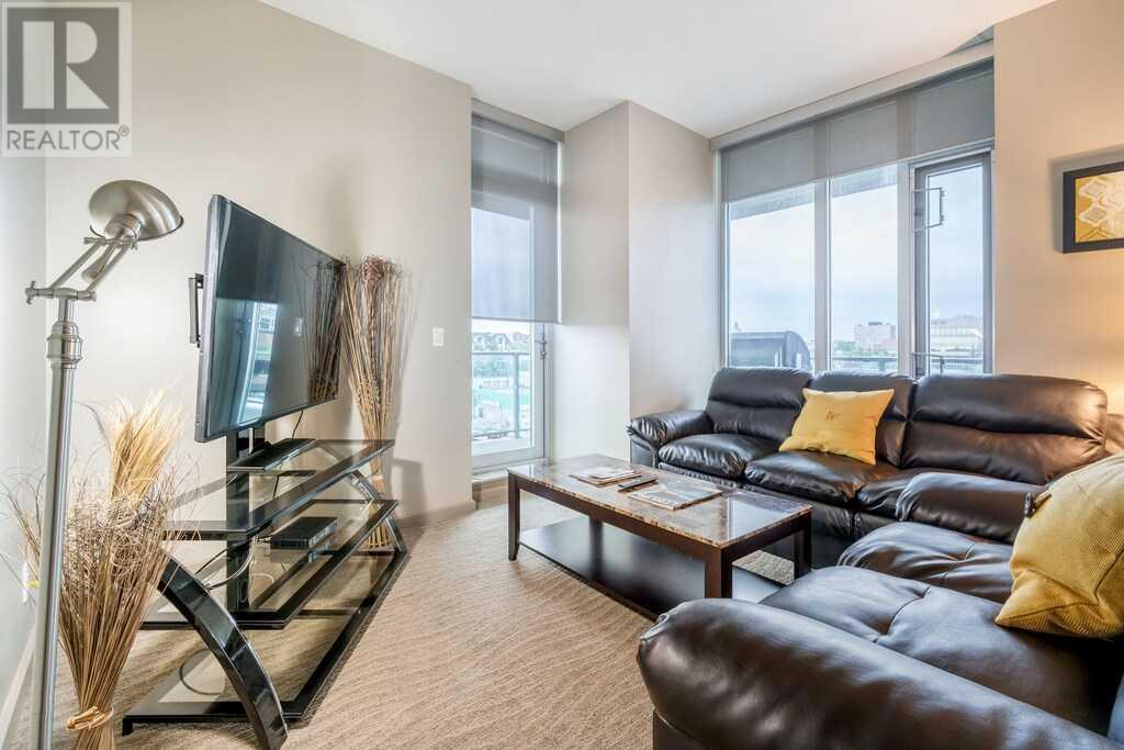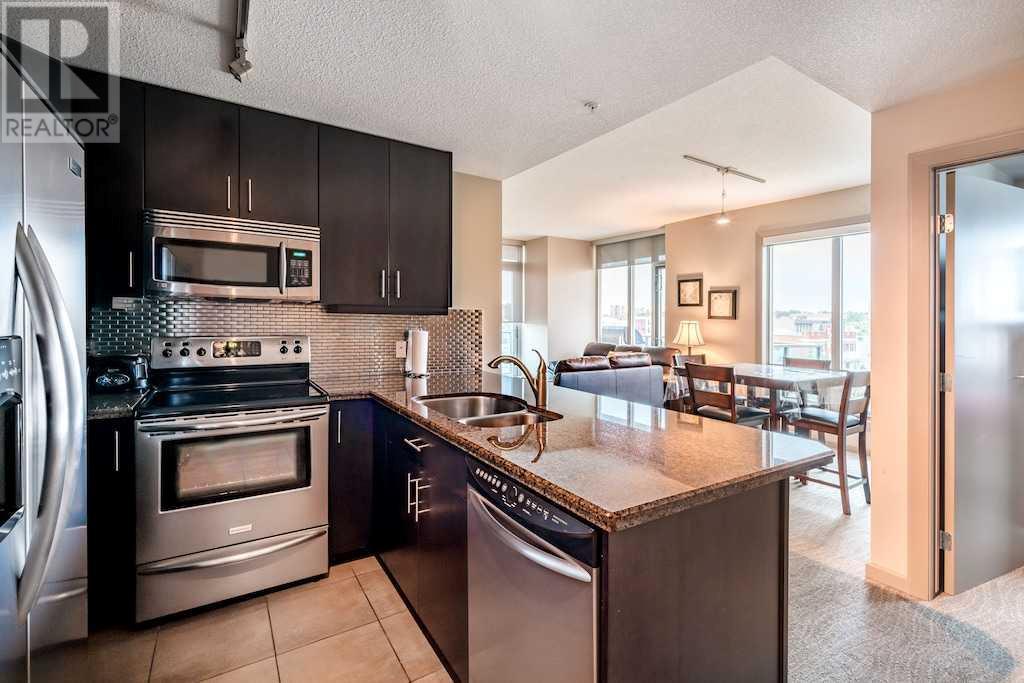 Discover urban living at its finest with this captivating 2-bedroom, 2-bathroom condo nestled in the vibrant Beltline district of downtown Calgary. Ideally positioned near the iconic Stampede grounds and the convenient C-Train line, this residence offers both a prime location and an exquisite living experience. Immerse yourself in the thriving culinary scene with an array of restaurants just steps away. Step inside to find a well-designed space featuring high ceilings that amplify the sense of openness. The kitchen showcases stainless steel appliances that cater to your culinary aspirations, while the open concept layout seamlessly connects the dining and living areas. With in-suite laundry facilities, the condo ensures practicality without compromise. Indulge in sweeping city views from your private SW facing corner patio, a perfect setting to unwind or entertain guests. The condo boasts not only an epic view but also a titled parking space and an assigned storage unit, offering both convenience and security. With a flawless condition that speaks of meticulous upkeep, this condo is ready to become your new urban haven. Experience downtown living at its best, make this exceptional condo your new address in the heart of Calgary's bustling downtown. (id:22211)
