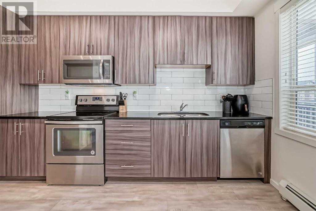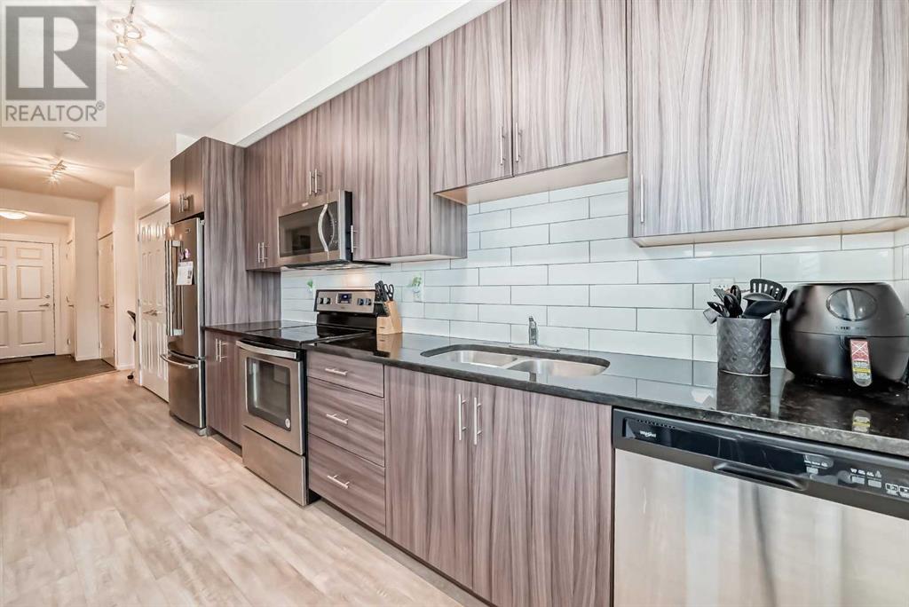 EXPERIENCE a LUXURIOUS yet AFFORDABLE LIFESTYLE in this DESIGNER-STYLE 3rd-floor Condo, built by renowned builder Brad Remington. Ideally located in the BEAUTIFUL COMMUNITY of LEGACY, this 1-bedroom, 1-bathroom condo comes with " 1 TITLED UNDERGROUND PARKING SPOT ", ASSIGNED STORAGE, and LOW CONDO FEES. It's PERFECTLY SITUATED Across from a POND, WALKING PATH, PLAYGROUND, Public Transportation, and within WALKING DISTANCE to SCHOOLS and RETAIL SHOPS. This fully loaded unit will Truly IMPRESS YOU from the moment you walk in. It features an OPEN-CONCEPT KITCHEN, 9-FT KNOCKDOWN CEILINGS, GRANITE COUNTERTOPS, STAINLESS STEEL KITCHEN APPLIANCES, a FRONT-LOAD Washer and Dryer, a Tiled Entrance, and laminate flooring throughout. The spacious living and dining rooms are combined into one LARGE SPACE, where you can RELAX and UNWIND after a long day. The large sliding door leads to the North-facing balcony, which offers an AWESOME VIEW and is PERFECT for BBQs this summer. The unit INCLUDES in-unit ~~~ AIR CONDITIONING ~~~ for the warm summer months is a BiG BONUS, a BUILT-IN CLOSET ORGANIZER in the master bedroom, and convenient access to the South Health Campus, 4 golf courses, McLeod Trail, Stoney Trail, Deerfoot Trail, South Calgary Hospital, and Fish Creek Park. This is the PERFECT PROPERTY YOU HAVE BEEN WAITING FOR, offering the lifestyle you deserve. CALL NOW and SCHEDULE your private SHOWING before it's gone !!! (id:22211)