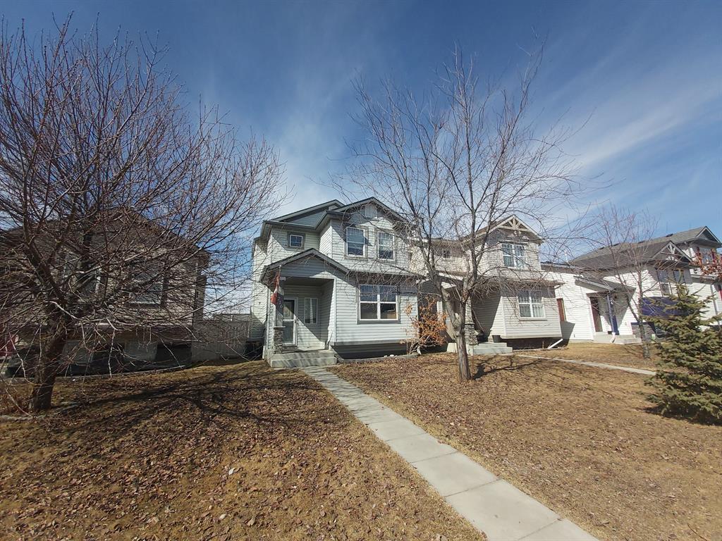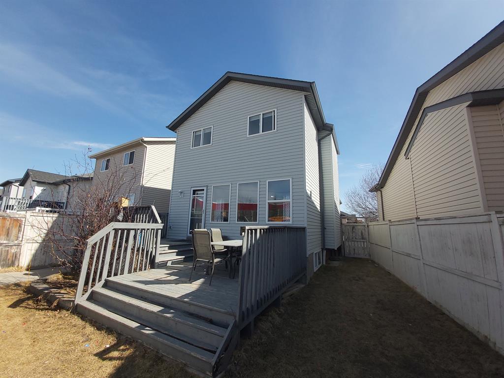 Welcome to Coventry Hills!! This Wonderful Home with great curb appeal is situated on a Larger PIE LOT with a concrete parking pad for two. Enjoy the BBQ in your west facing backyard with Plenty of room for entertaining/children, toys, swing set and more. The main Level begins with a large foyer to the open concept main floor Living room, dining area, island with raised breakfast bar, two piece bath and rear access to the deck / yard. The upper level provides a cozy Master bedroom with walk-in closet, shared double access bathroom, two bedrooms and laundry room. The basement has been professionally developed with two bedrooms plus a 4pc bathroom. Fully landscaped. Very close to schools, parks & transit. Don't delay make your appointment today!! (id:22211)