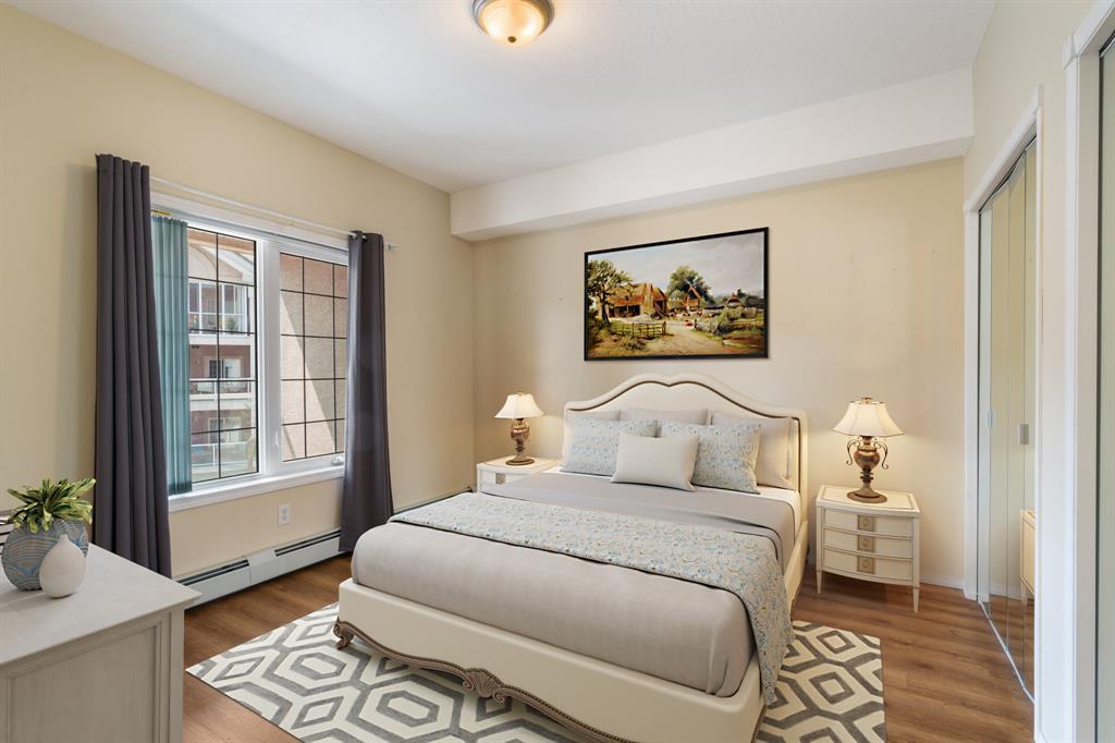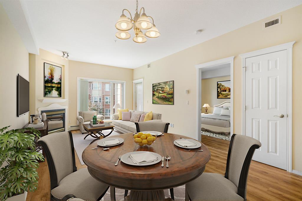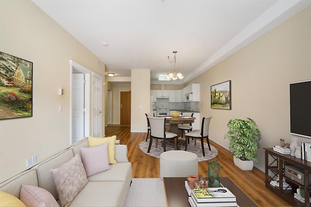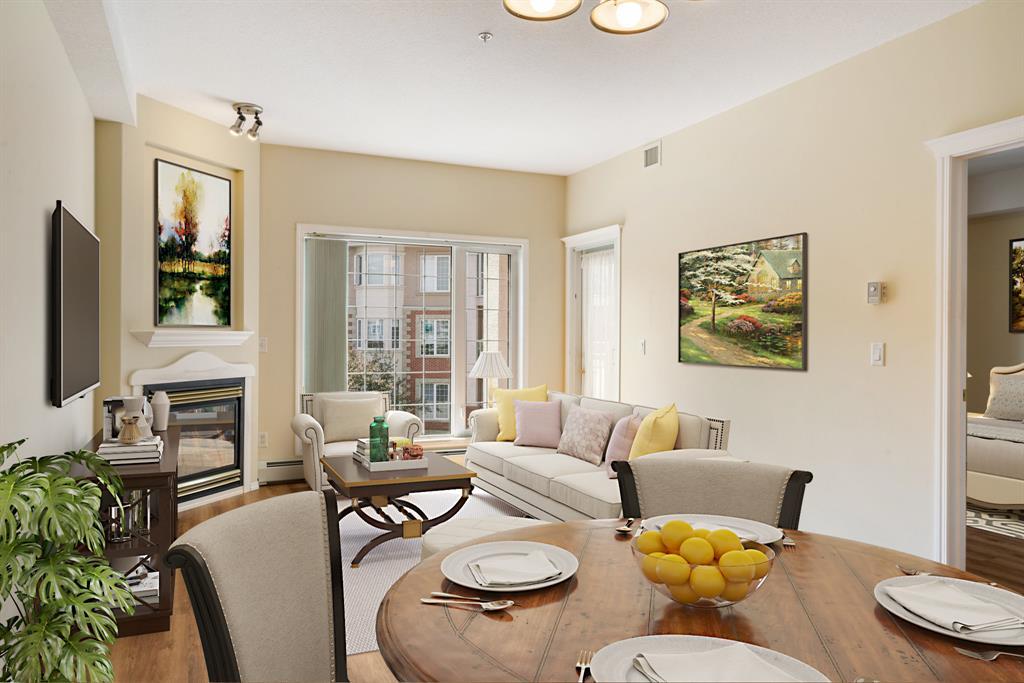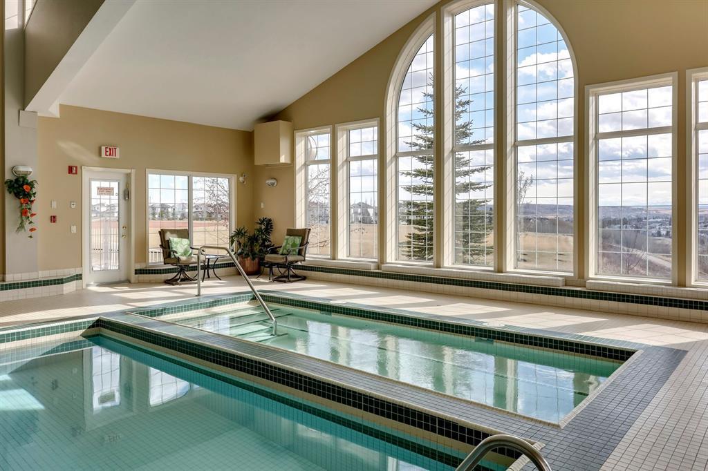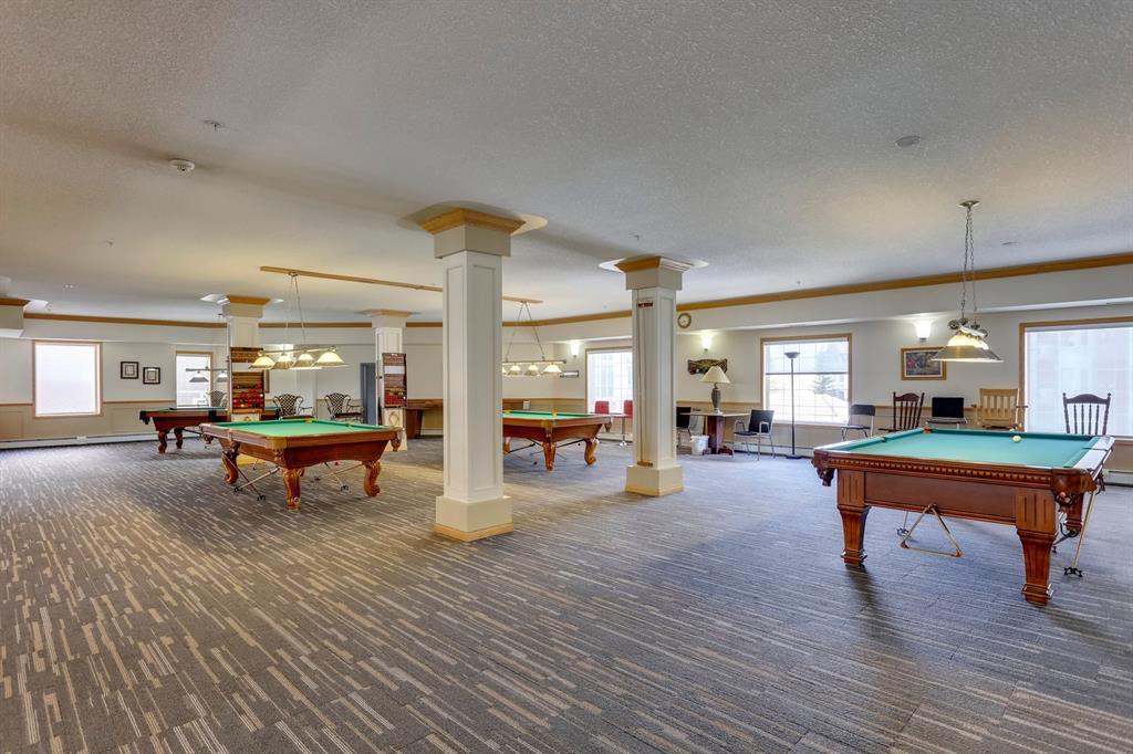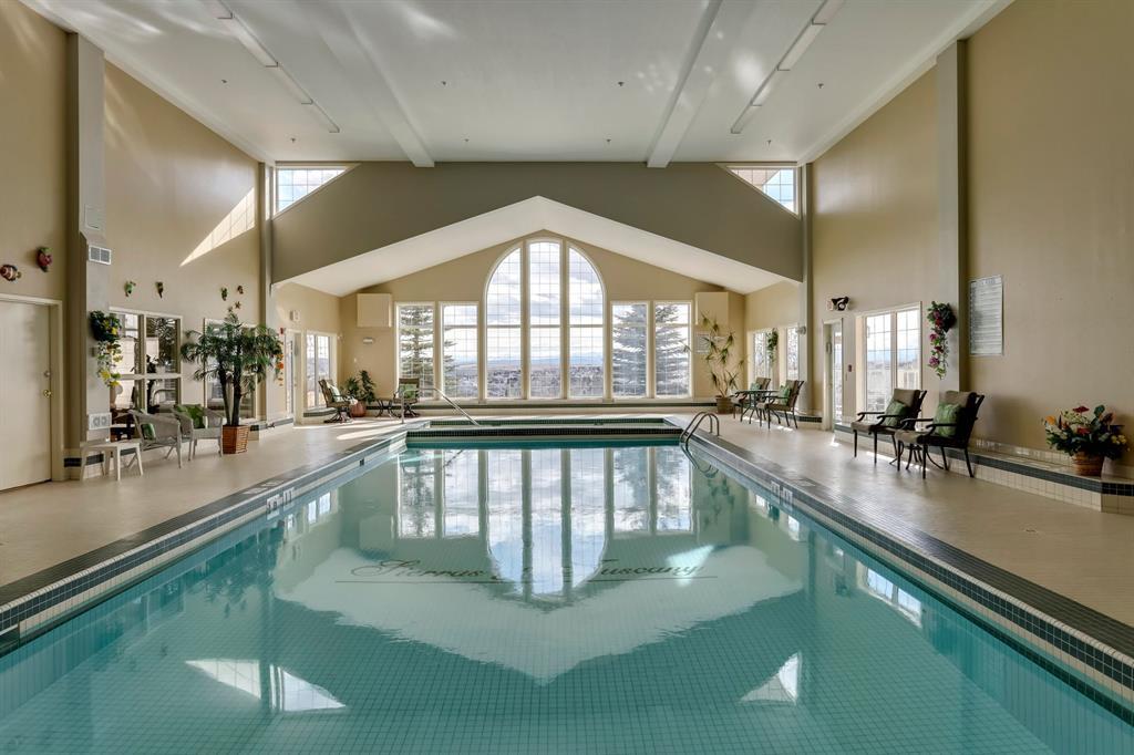 Welcome to The Sierras of Tuscany, where luxury and a maintenance-free lifestyle await you. As a distinguished 40+ Adult Community, this complex takes pride in offering extensive amenities that cater to your every need. Immerse yourself in the ultimate relaxation with the expansive indoor pool, soothing hot tub and fitness center. Host memorable gatherings in the spacious party room or engage in friendly competition in the billiards room and two-lane bowling alley. For those seeking quieter pursuits, the library offers a tranquil haven, while the craft room, winemaking room and workshop provide creative outlets. Indulge in movie nights in the 40-seat theatre or savor the outdoors with the delightful BBQ area. To top it off there’s also an indoor car wash, guest suites & ballroom! This unit boasts spaciousness and radiates brightness. Step into an inviting space featuring a bright kitchen with plenty of storage, that seamlessly flows into the open concept living and dining area, where a cozy fireplace awaits. Immaculately maintained and air-conditioned, with updated laminate flooring throughout, this unit also presents a fabulous covered west facing balcony that allows you to relish every season of the year. Retreat to your generous primary bedroom, complete with double closets. The main 4-piece bathroom is centrally located convenient to guests and owner alike, and a spacious laundry room with included storage that is appx 4 x 9 feet and provides ample space for all your belongings. Conveniently situated across from the LRT, this complex offers seamless access to transportation. Explore the surrounding biking and walking pathways, nearby parks, and conveniently shop at Sobey's or indulge in a cup of Starbucks coffee. The area is brimming with diverse amenities, catering to every taste. For additional shopping needs, quick access to Stoney Trail leads you to the bustling Crowfoot Crossing Centre and Beacon Hill. Rest assured, your condo fees cover all utilities, incl uding electricity, heat, and water, providing a hassle-free living experience. Embrace the convenience of underground parking accompanied by an attached private storage unit. Come and experience The Sierras of Tuscany for yourself! (id:22211)