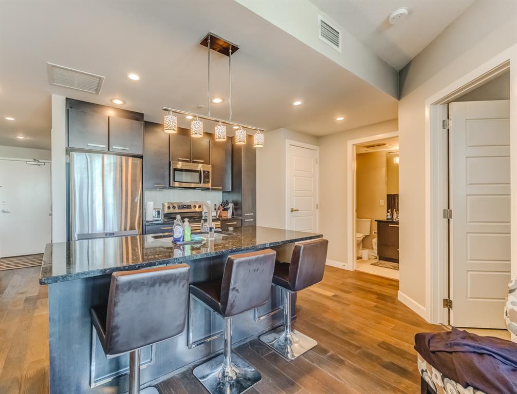 Looking for a stylish, high-end living space in the heart of Calgary? Look no further than this modern one bedroom condo unit in the Keynote 2 condo tower. Located in the heart of downtown Calgary, this location combines a bustling urban lifestyle with convenient access to a range of amenities and services. This unit features stunning city views, high-end finishes, and an open-concept design that maximizes space and natural light. The kitchen is outfitted with stainless steel appliances, granite countertops, and plenty of storage space. The living area is spacious and features large windows that provide plenty of natural light throughout the day. The bedroom is equally impressive, with plenty of closet space and large windows that offer stunning views of the city. The bathroom features sleek and modern finishes. Building amenities include a fitness center, underground parking, and an on-site concierge for added convenience.Whether you're a young professional, a small family or a couple, this stunning condo has everything you need to live in style and comfort in the heart of Calgary. Don't miss out on the opportunity to experience the best of city living in this gorgeous Keynote 2 condo unit. (id:22211)