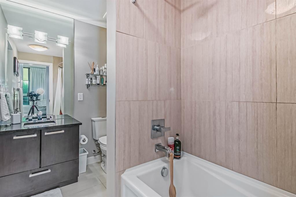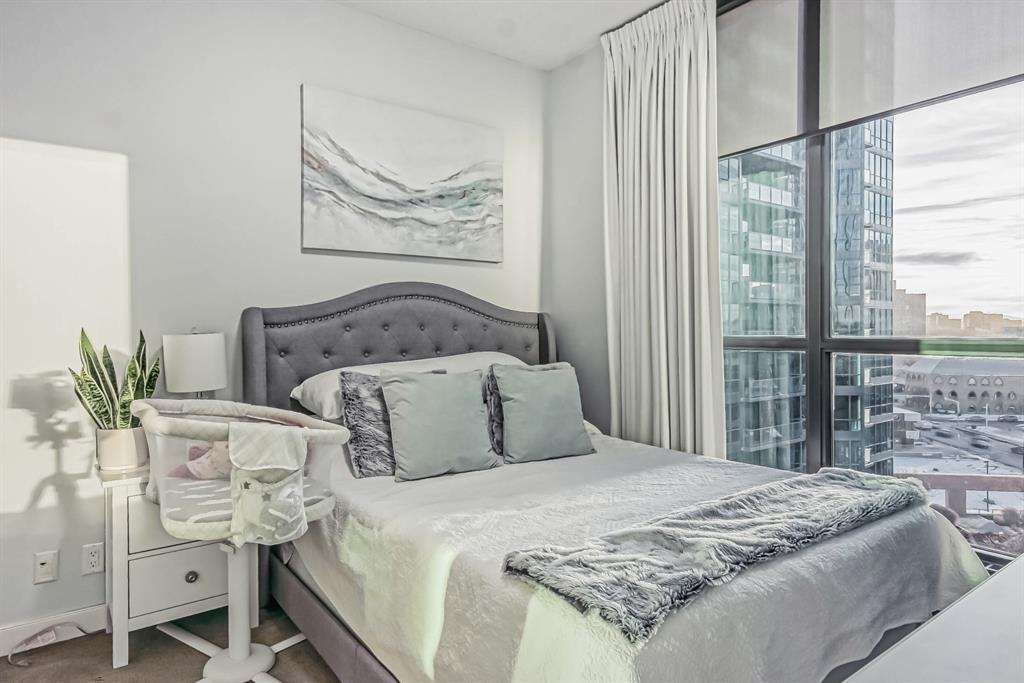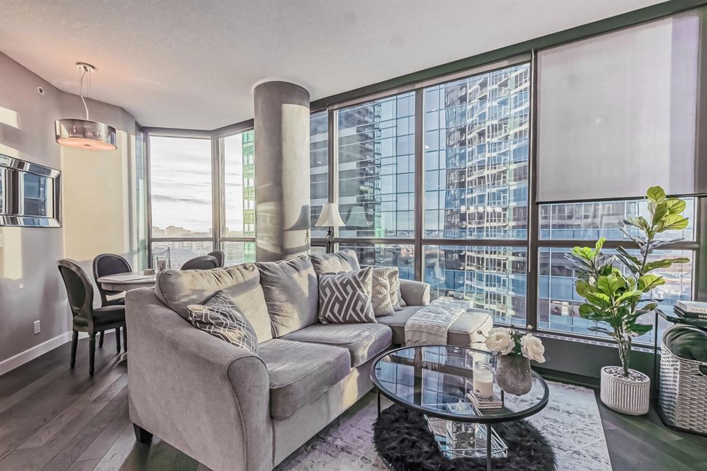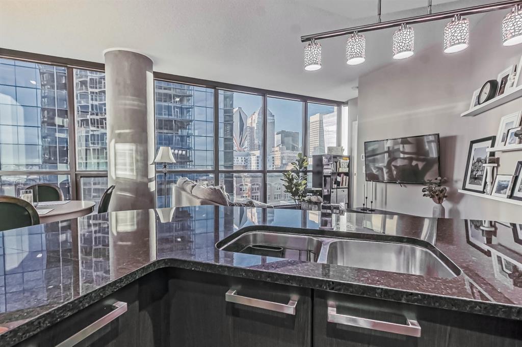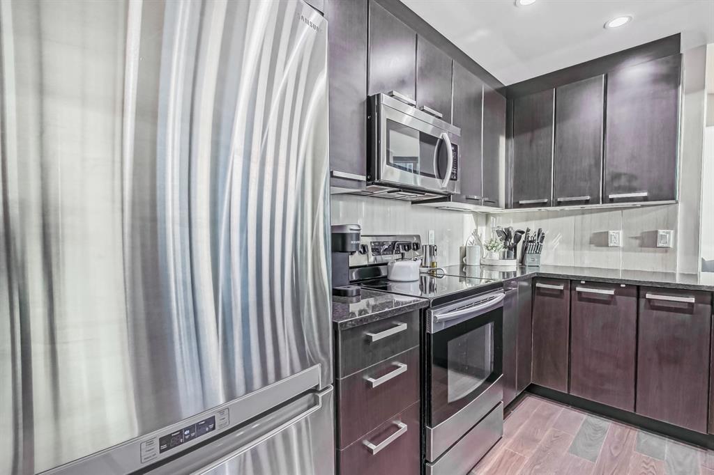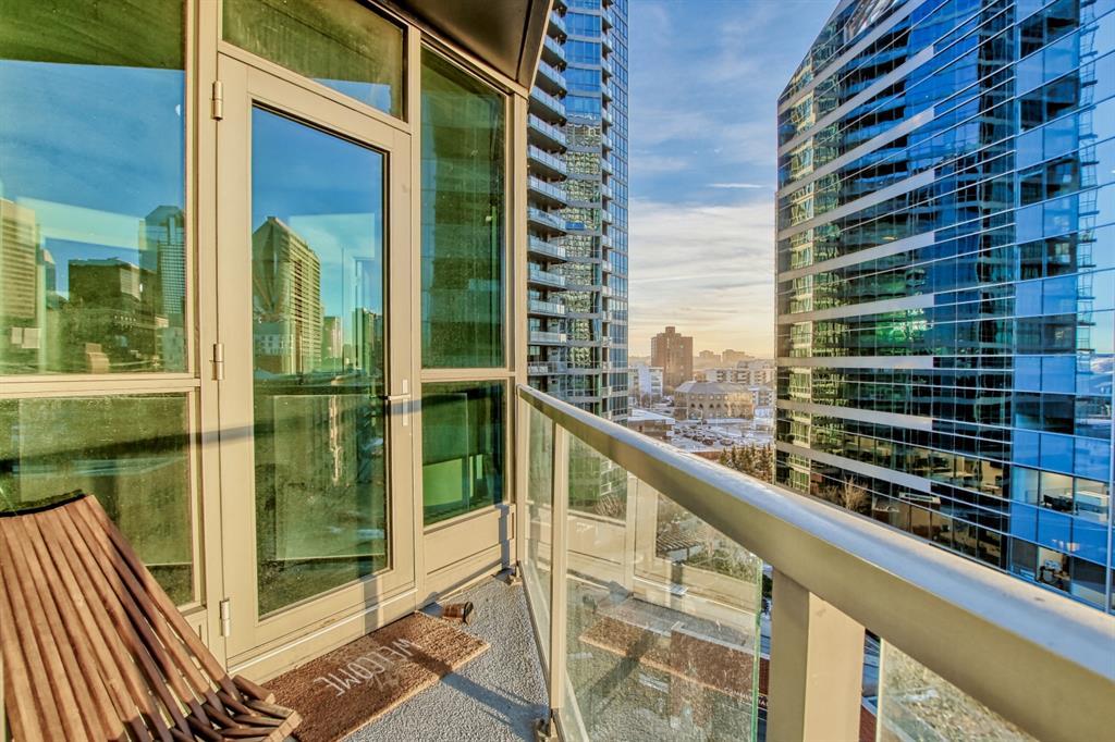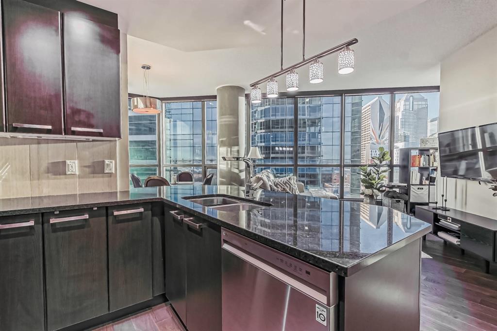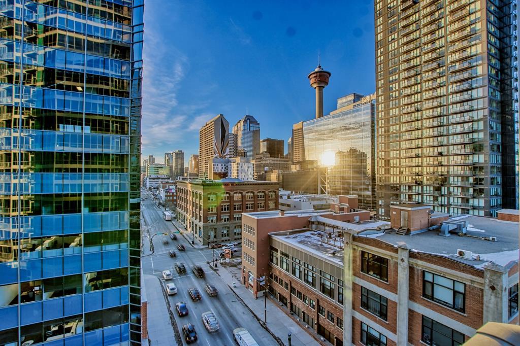 Welcome to Keynote II, a highly sought after, amenity rich lifestyle building in the heart of Calgary's Beltline. This two bedroom, two bathroom, 768 Sqft 8th floor unit showcases a 180 degree view of downtown skyline and East Village. This immaculate home has floor to ceiling windows, modern finishings, engineered hardwood & 9’ ceilings. A stunning kitchen with granite counters, quality stainless steel appliances and gorgeous tile backsplash. The kitchen opens well sized living room and dining area. There is a spacious primary room with a WIC including built-ins, plus a 4pc ensuite with granite counter tops and soaker tub. 2nd bedroom includes a luxurious 3-pc bath ensuite with tiled shower and private balcony. TITLED SECURE PARKING ON P2 is included in along with the Other features include full sized stacked laundry, Air Conditioning, Titled Parking Stall (secured), along with many top of the line amenities: State of the art gym, Hot Tub, Outdoor Oasis/Courtyard with BBQs, Owners Lounge including TV'S, pool table and kitchen, 2 Guest Suites, Concierge Service, Secure Bike Storage, and access to the +15. Walking distance from Calgary's downtown Business District, 17th Ave, Stephen Ave, Saddledome, LRT, Stampede Grounds and the Bow River path system. Book your private showing today! (id:22211)