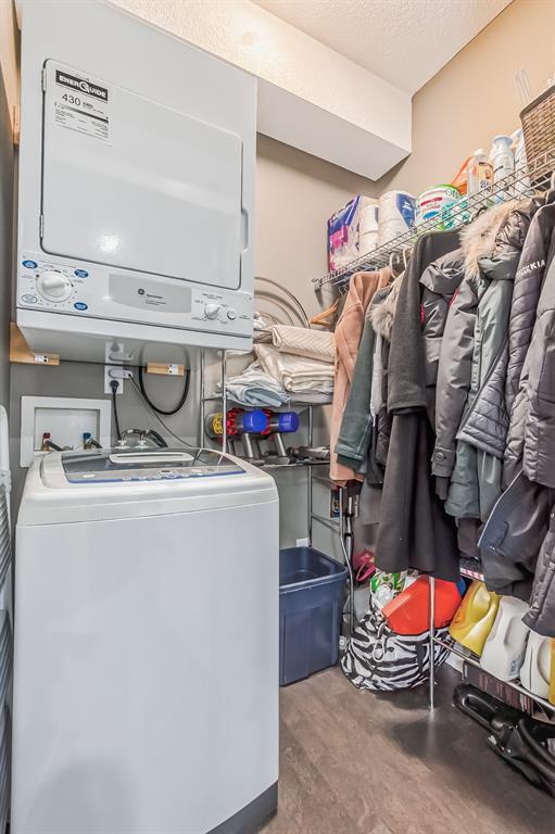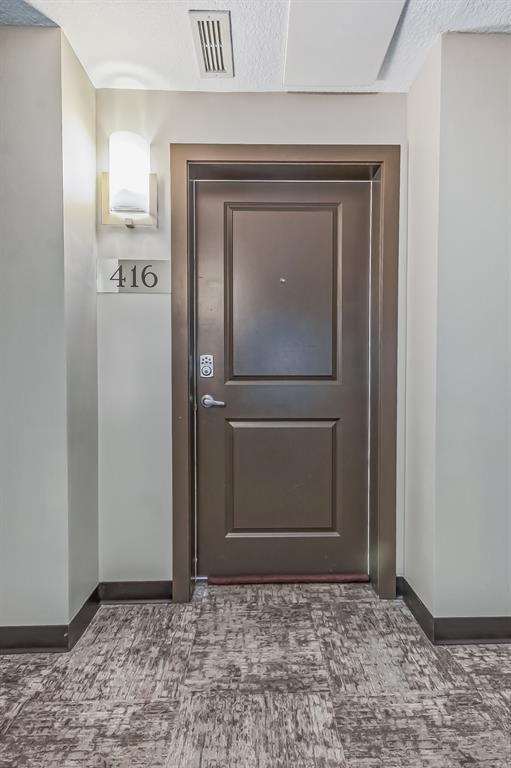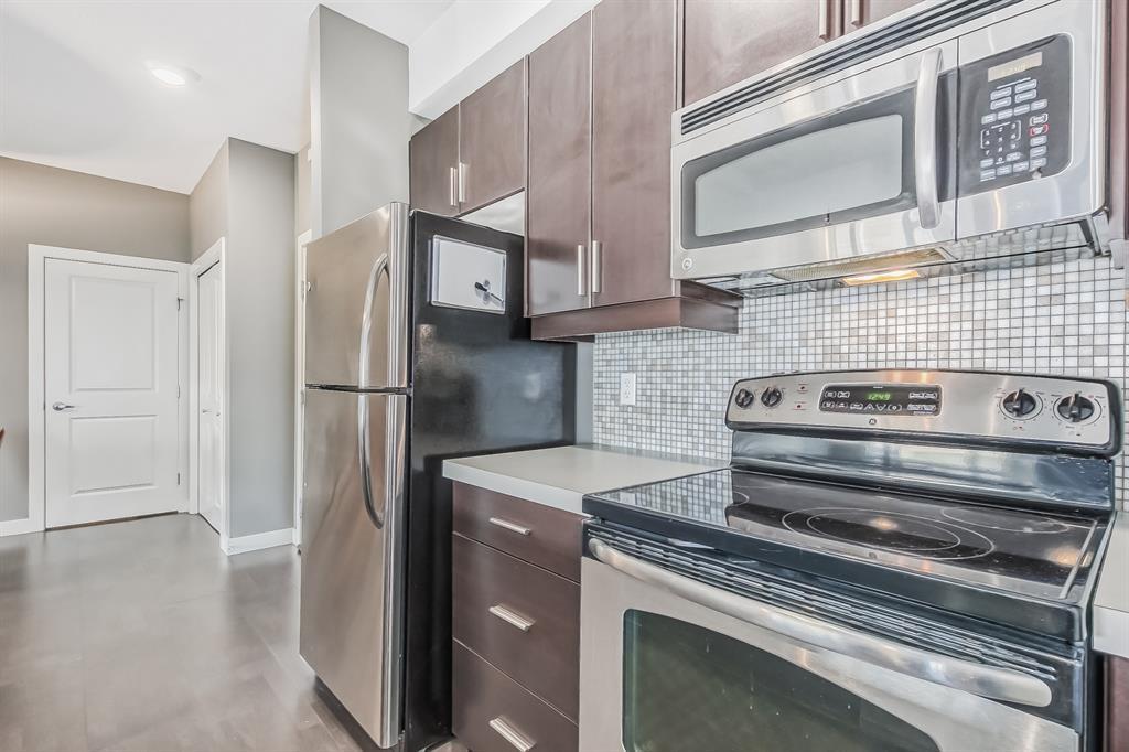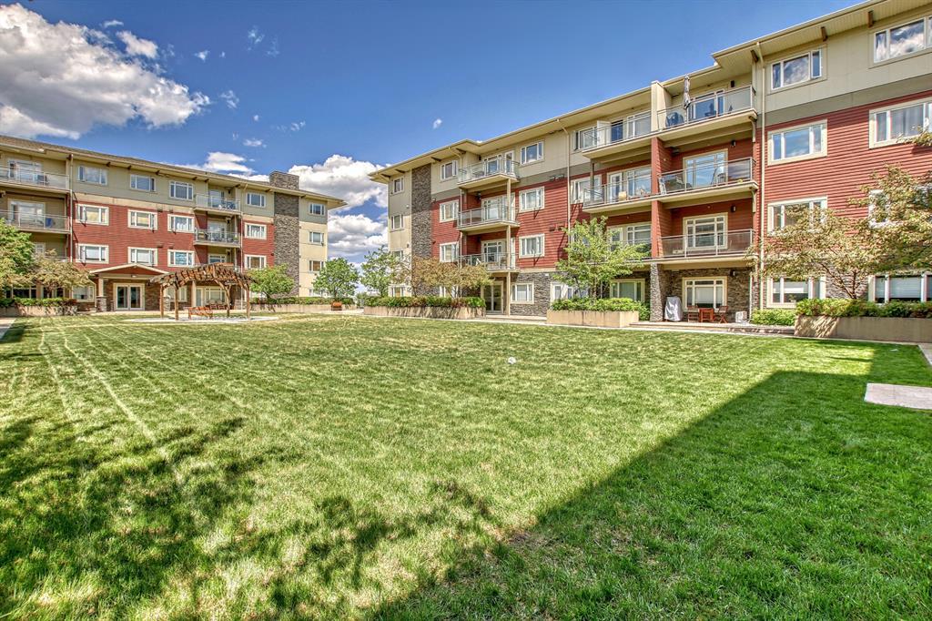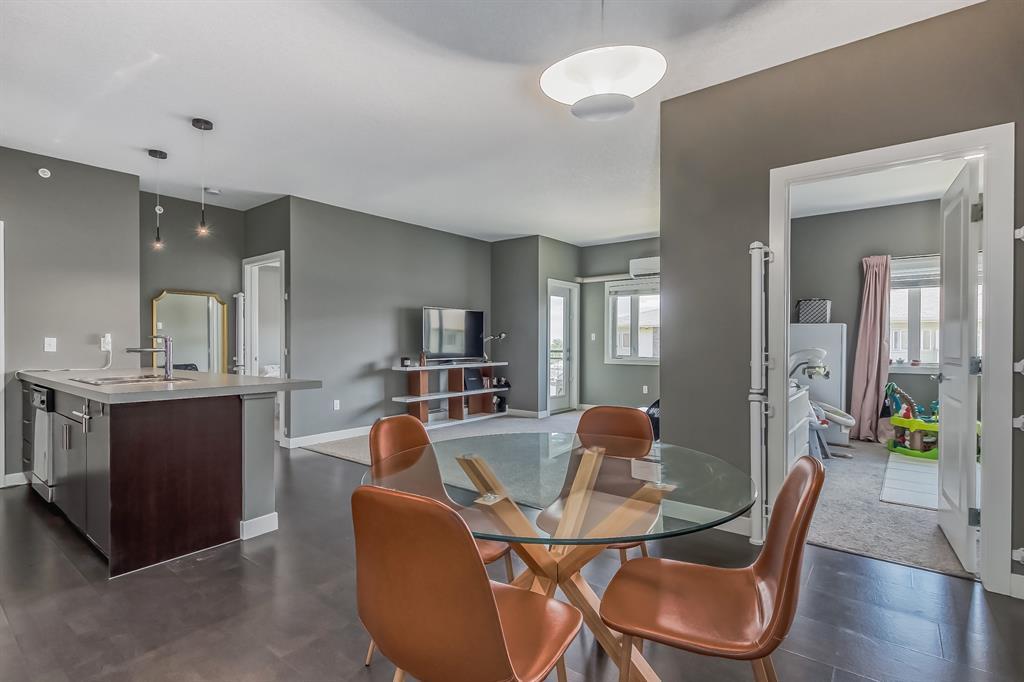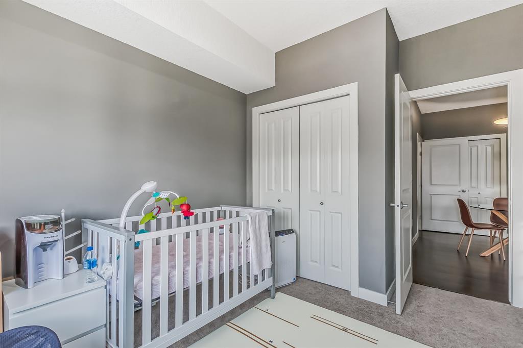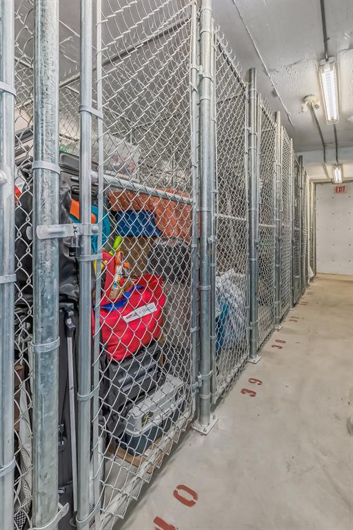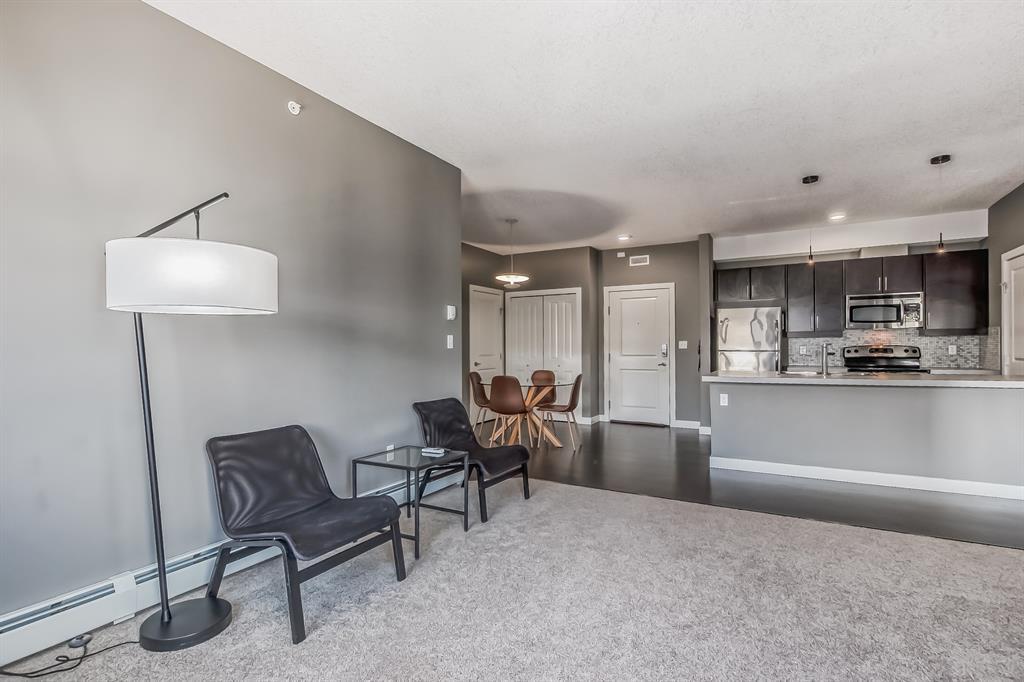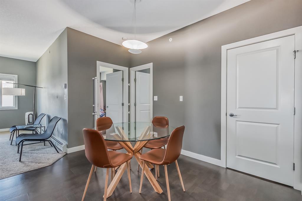 Top Floor 2 Bedroom 2 Bathroom condo with 9 foot ceilings! Enjoy a morning coffee from your east facing balcony that over looks the courtyard, and there is a natural gas hook up for your BBQ. Fantastic floor plan with the two bedrooms on either side of the spacious living room with 4pc bathroom(NEW TILES!). Kitchen has a large pantry and island with eating area that opens up into the main living area with NEWLY INSTALLED AIR CONDITIONER(2021). Master bedroom has a 4 piece en-suite bathroom and walk-in closet, the second bedroom is a good size, and for your convenience there is huge in suite laundry room with storage. Carpet has been professionally cleaned ready for the new owner. The condo comes with a heated underground Titled Parking stall and an additional storage space. The amenities are many which include elevators, Indoor and outdoor Visitor Parking, Social room that can be booked for private functions, Steam Room, Fitness Center. Amazing location just a short walk to C-Train, Grocery Store, Pharmacy, Coffee Shop, Restaurants, Pub. Very Reasonable condo fees which include Heat, Water, Sewer, and Electricity. (id:22211)