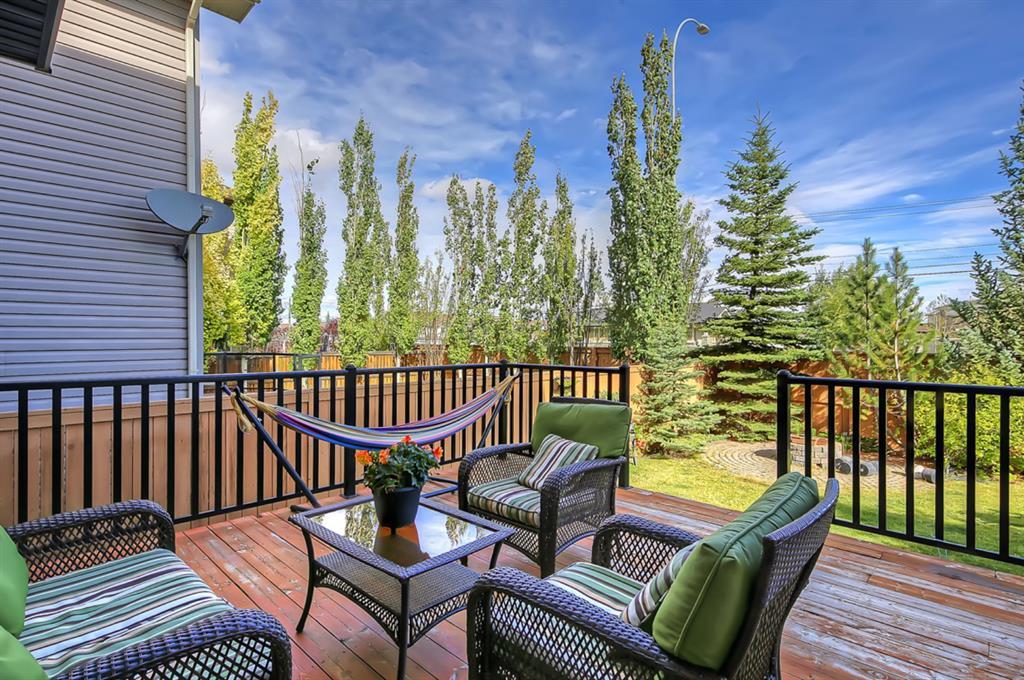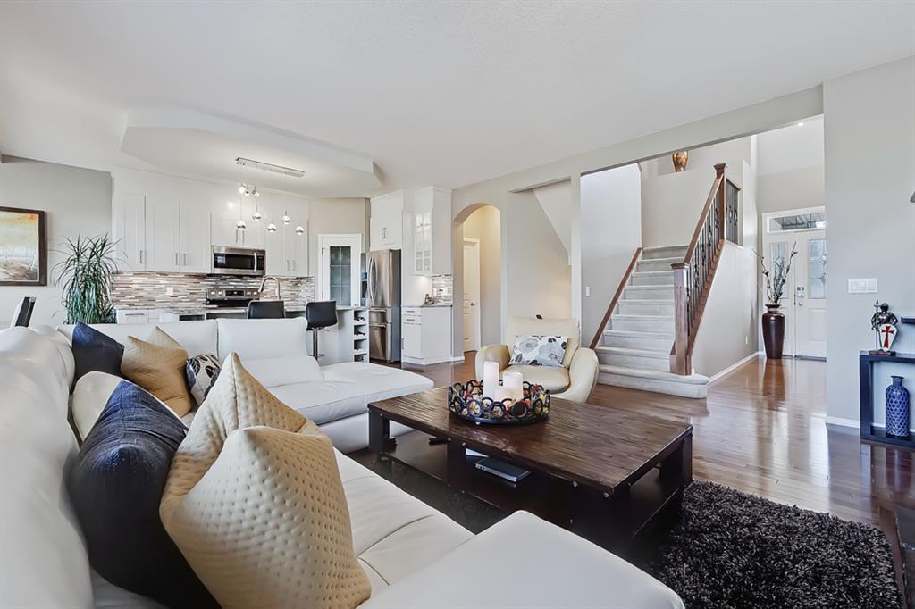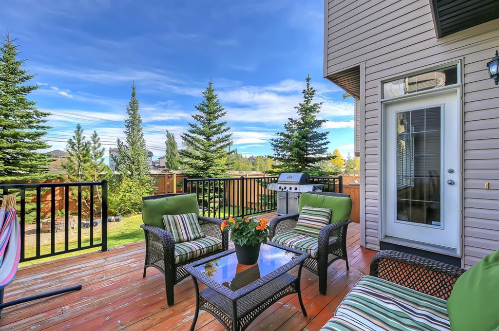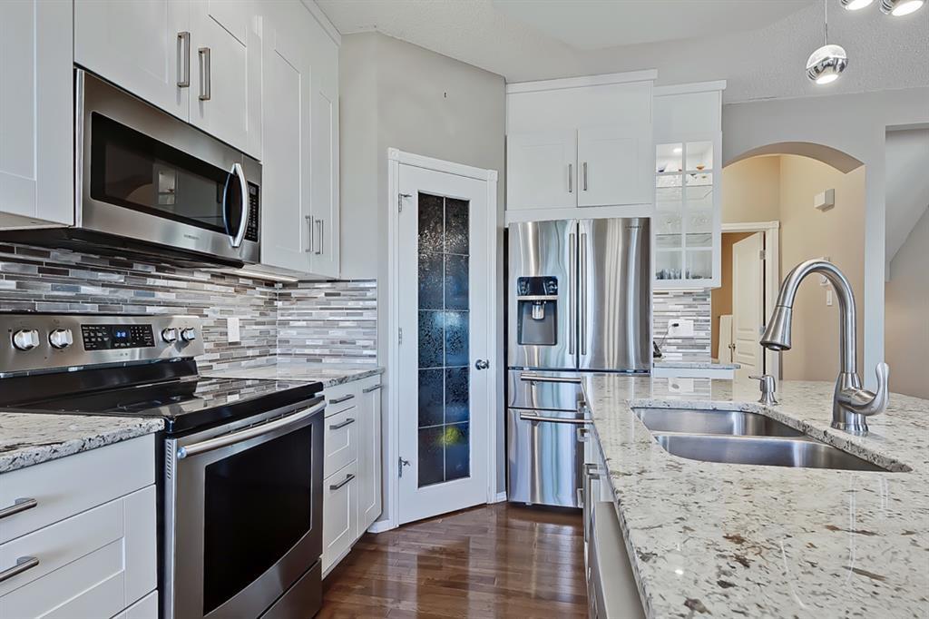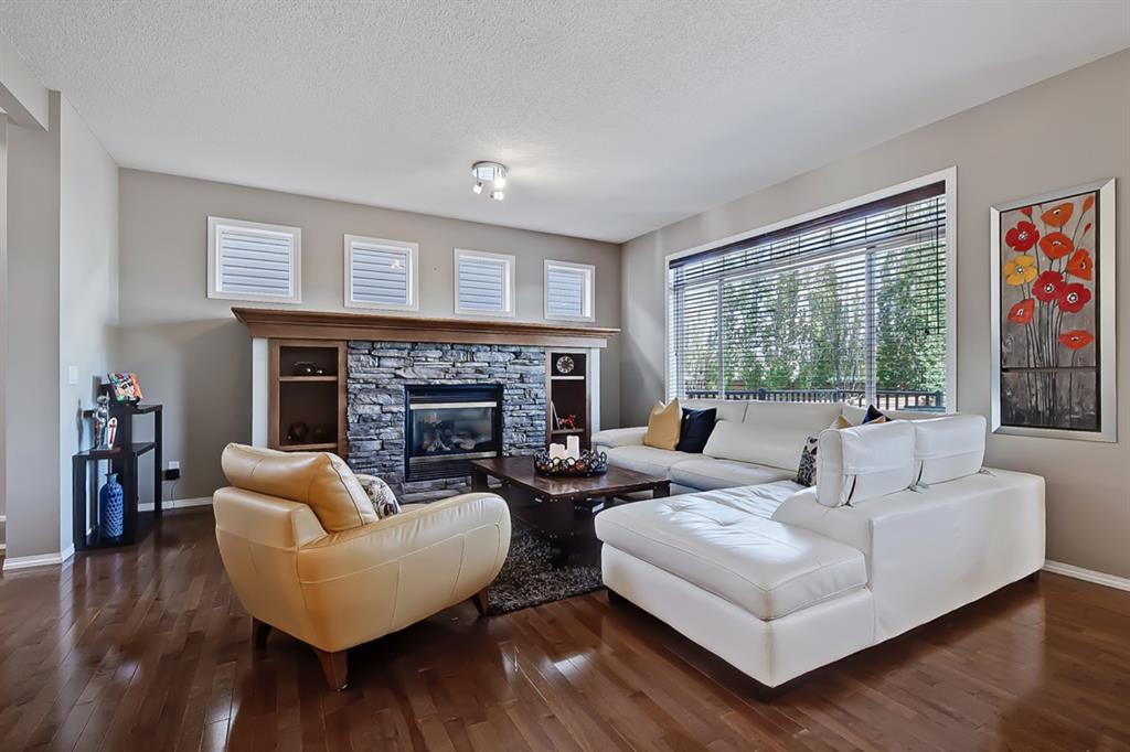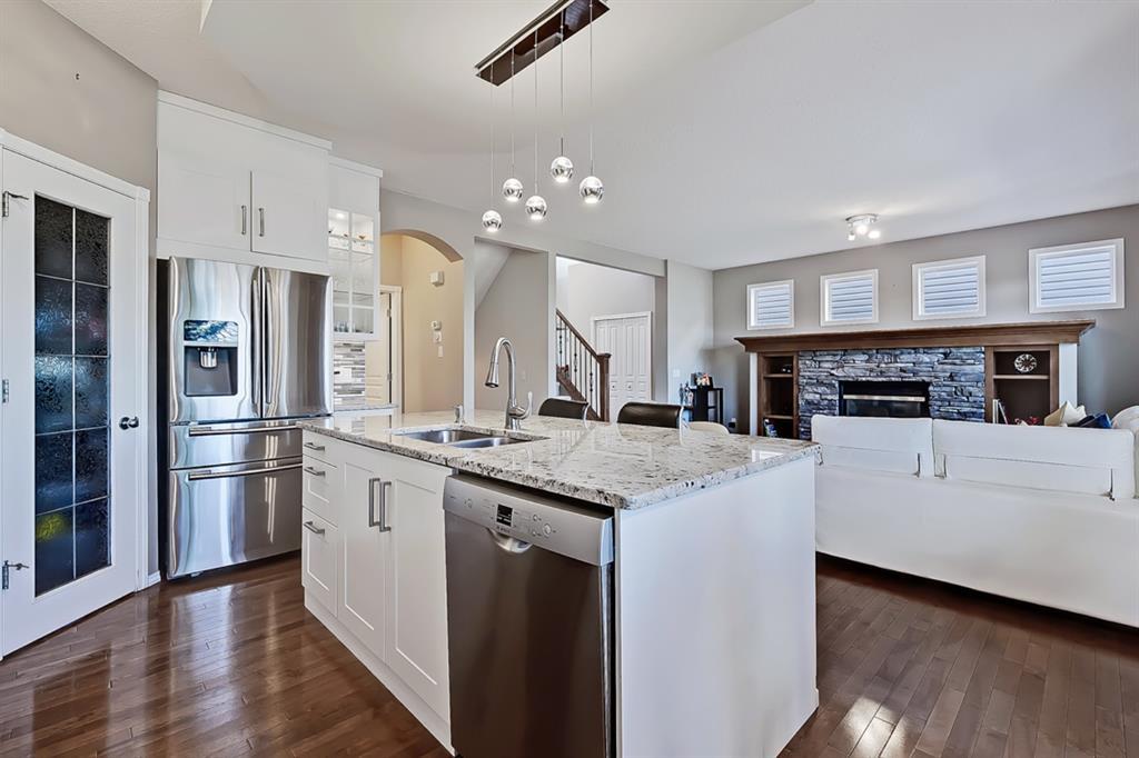 Gorgeous design by Crossley Custom Homes located in a CUL-DE SAC. Loads of upgrades done over the last 2 years including: NEW ROOF (8 month's ago), totally renovated stunning kitchen, NEW cabinets, pantry, premium GRANITE counter tops, glass back splash, huge island with eating bar, STAINLESS STEAL appliances, all of the main floor has HIGH end LIGHTING fixtures, WOOD window coverings, new SUMP PUMP, GARAGE DOOR, just installed. The spacious two- storey foyer and the wide contemporary open design - this home has some beautiful "estate" finishing. The main floor has gleaming hardwood floors. As a custom home, there's designed archways and art niches around. 9' foot ceilings, the main floor great room has a phenomenal fireplace feature detailed with stone and a custom built book case around it with windows above to allow for maximum natural light. Large dining area has a garden door leading to a fabulous large sunny deck with NEW METAL RAILING, overlooking a patio & beautiful yard with fire pit and enclosed dog run. On the second storey there are THREE generous sized bedrooms with a master bedroom and a 5 piece ensuite with large soaker tub and stand up shower. The basement is also finished with NEW Carpet and renovated 3 piece Bathroom, family room and a 4th bedroom, also a convenient DEN in a quiet corner, ideally for working from home. Ready to move in and enjoy knowing the large maintenance items have already been taken care of. Steps away from the C-TRain, walking paths the huge YMCA, shoppings, restaurants and a REC facility offering tennis courts, splash park, lake access and more. Check out the 3D walk-through, and book your private tour today. (id:22211)