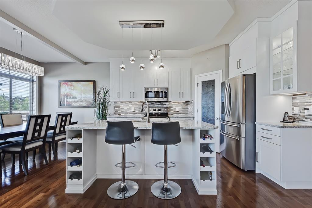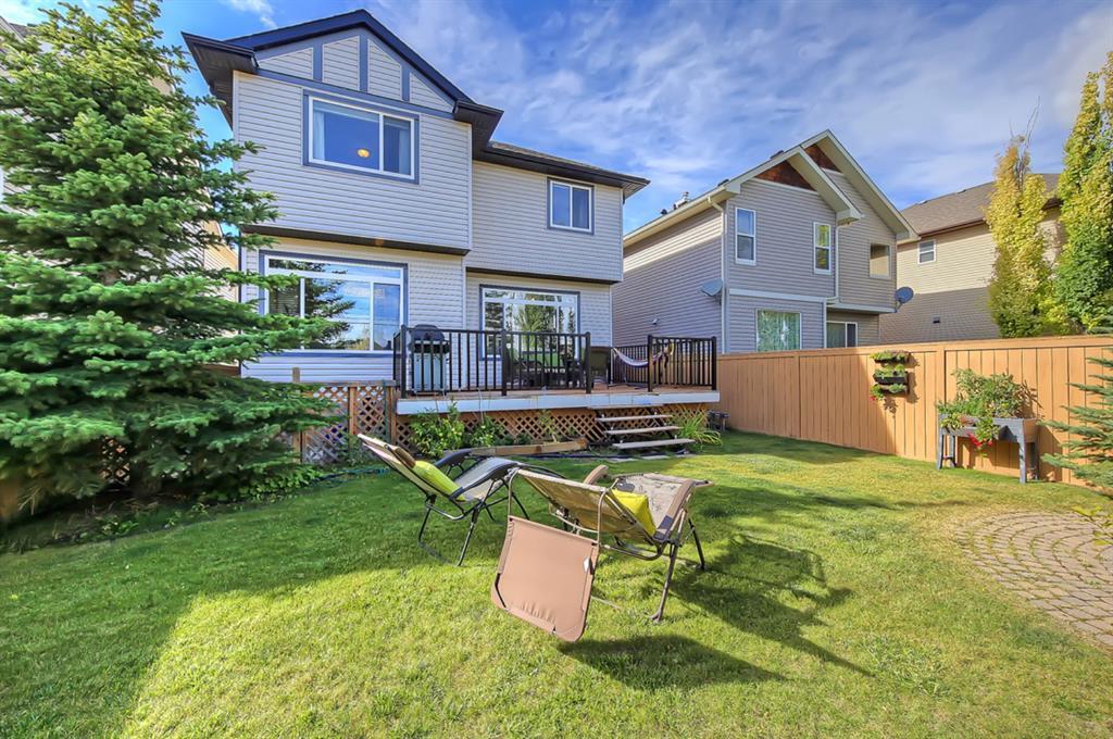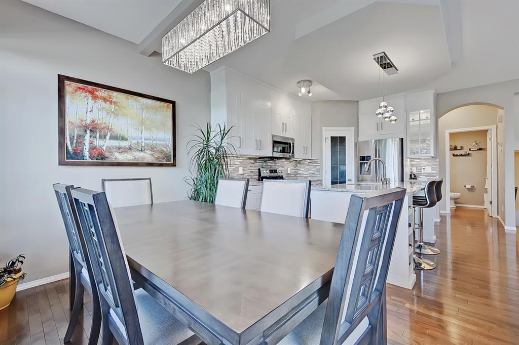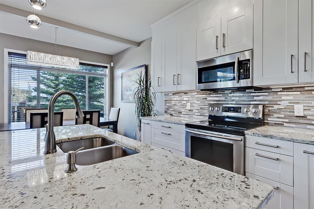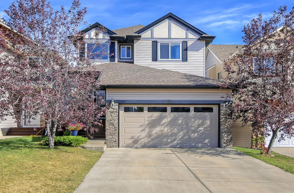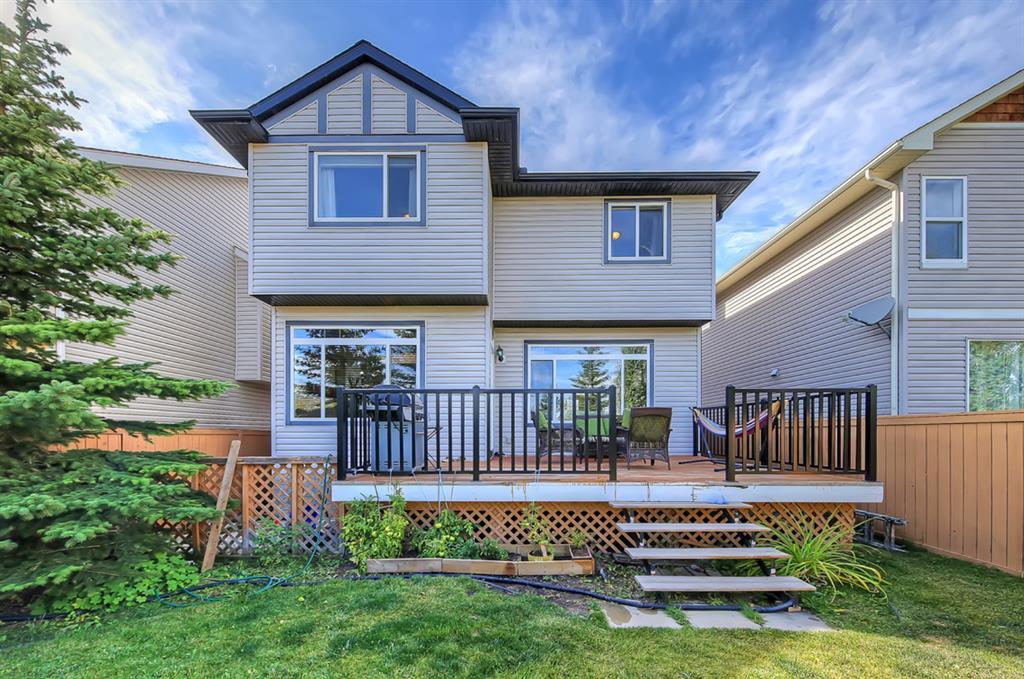 Gorgeous design by Crossley Custom Homes located in a CUL-DE SAC. Loads of upgrades done over the last 2 years including: NEW ROOF (8 month's ago), totally renovated stunning kitchen, NEW cabinets, pantry, premium GRANITE counter tops, glass back splash, huge island with eating bar, STAINLESS STEAL appliances, all of the main floor has HIGH end LIGHTING fixtures, WOOD window coverings, new SUMP PUMP, GARAGE DOOR, just installed. The spacious two- storey foyer and the wide contemporary open design - this home has some beautiful "estate" finishing. The main floor has gleaming hardwood floors. As a custom home, there's designed archways and art niches around. 9' foot ceilings, the main floor great room has a phenomenal fireplace feature detailed with stone and a custom built book case around it with windows above to allow for maximum natural light. Large dining area has a garden door leading to a fabulous large sunny deck with NEW METAL RAILING, overlooking a patio & beautiful yard with fire pit and enclosed dog run. On the second storey there are THREE generous sized bedrooms with a master bedroom and a 5 piece ensuite with large soaker tub and stand up shower. The basement is also finished with NEW Carpet and renovated 3 piece Bathroom, family room and a 4th bedroom, also a convenient DEN in a quiet corner, ideally for working from home. Ready to move in and enjoy knowing the large maintenance items have already been taken care of. Steps away from the C-TRain, walking paths the huge YMCA, shoppings, restaurants and a REC facility offering tennis courts, splash park, lake access and more. Check out the 3D walk-through, and book your private tour today. (id:22211)